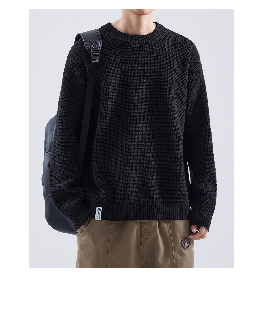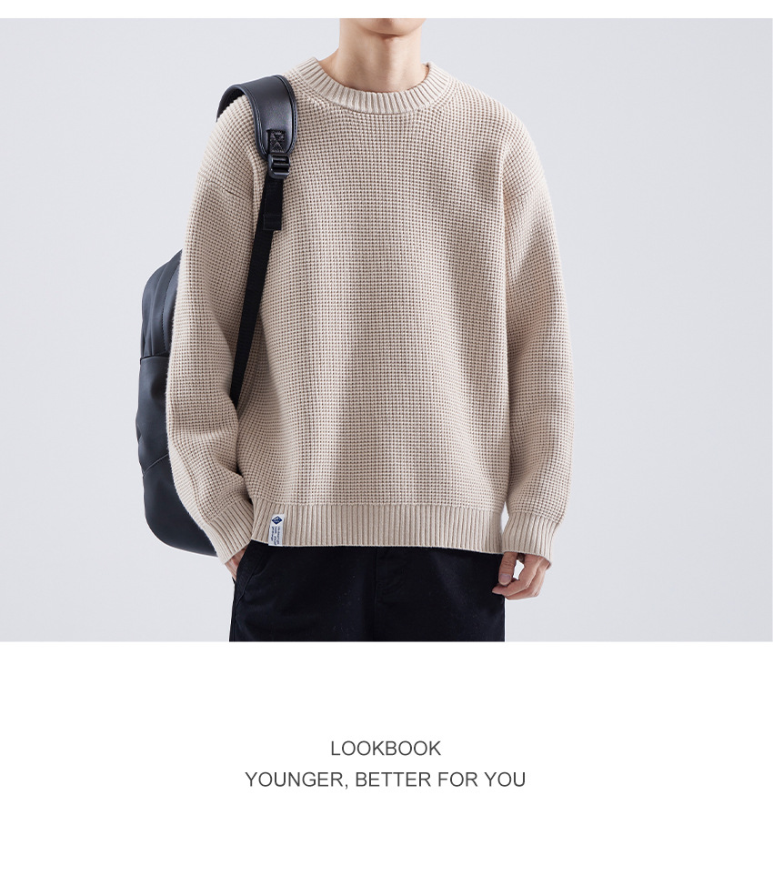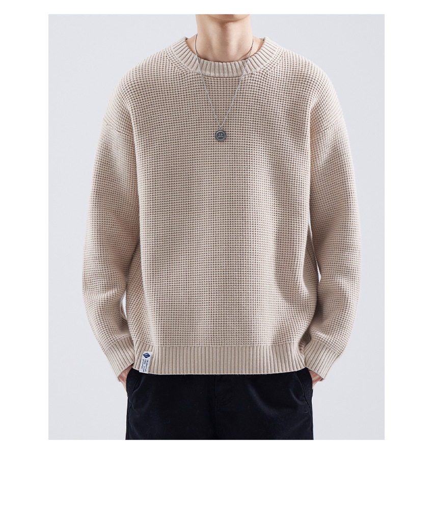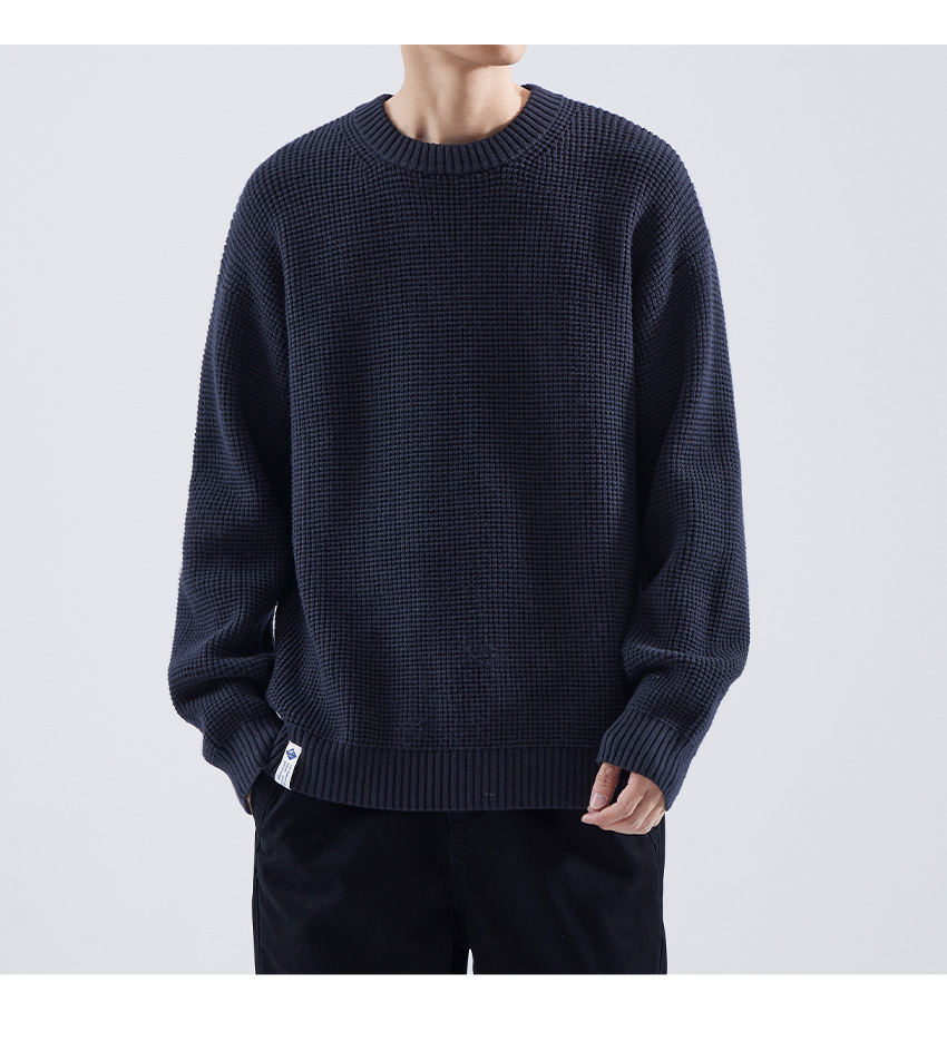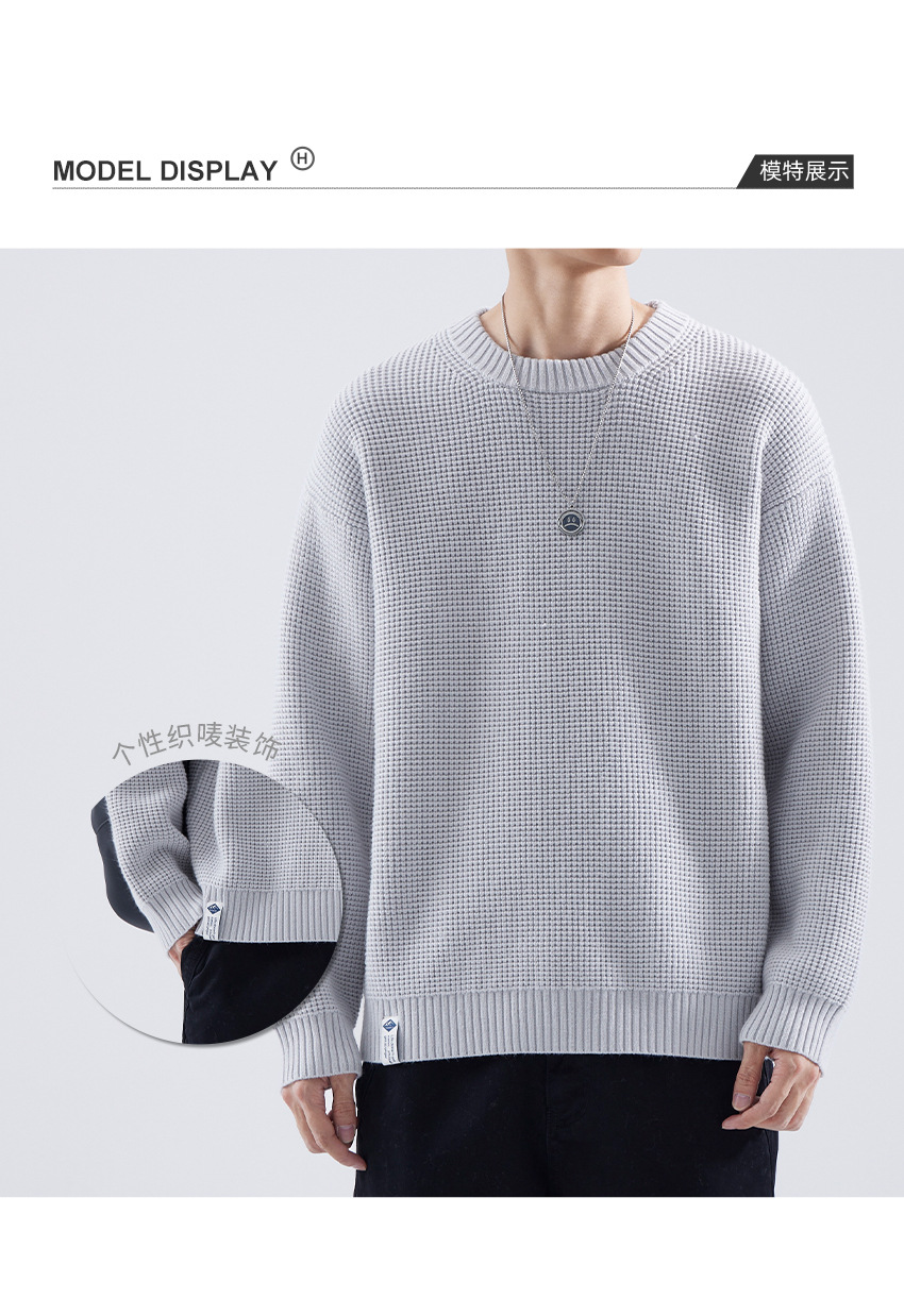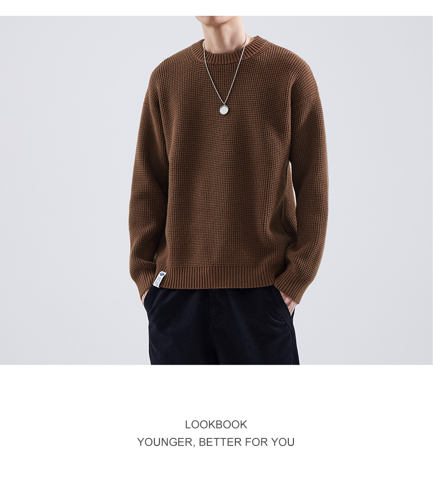 Hanska 게으른 스타일 스웨터 남자의 가을과 겨울 새로운 느슨한 솔리드 컬러 라운드 넥 풀오버 내부 니트 스웨터 재킷스토어 가기