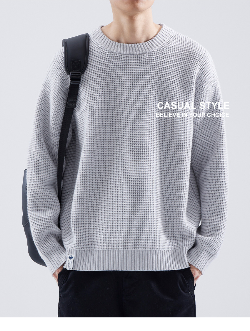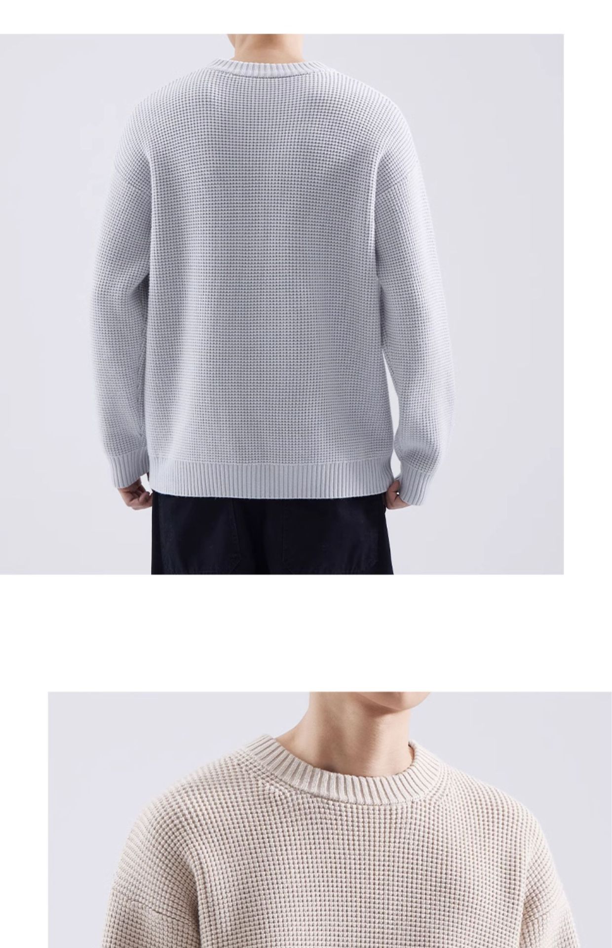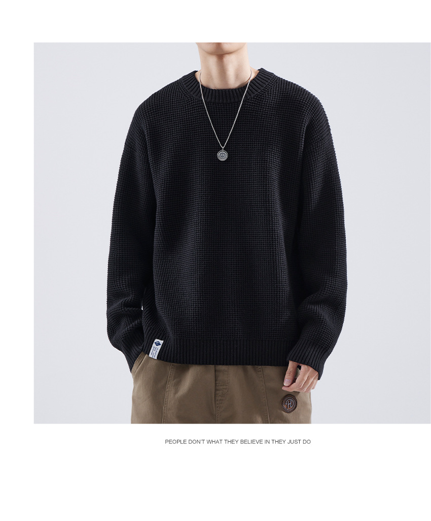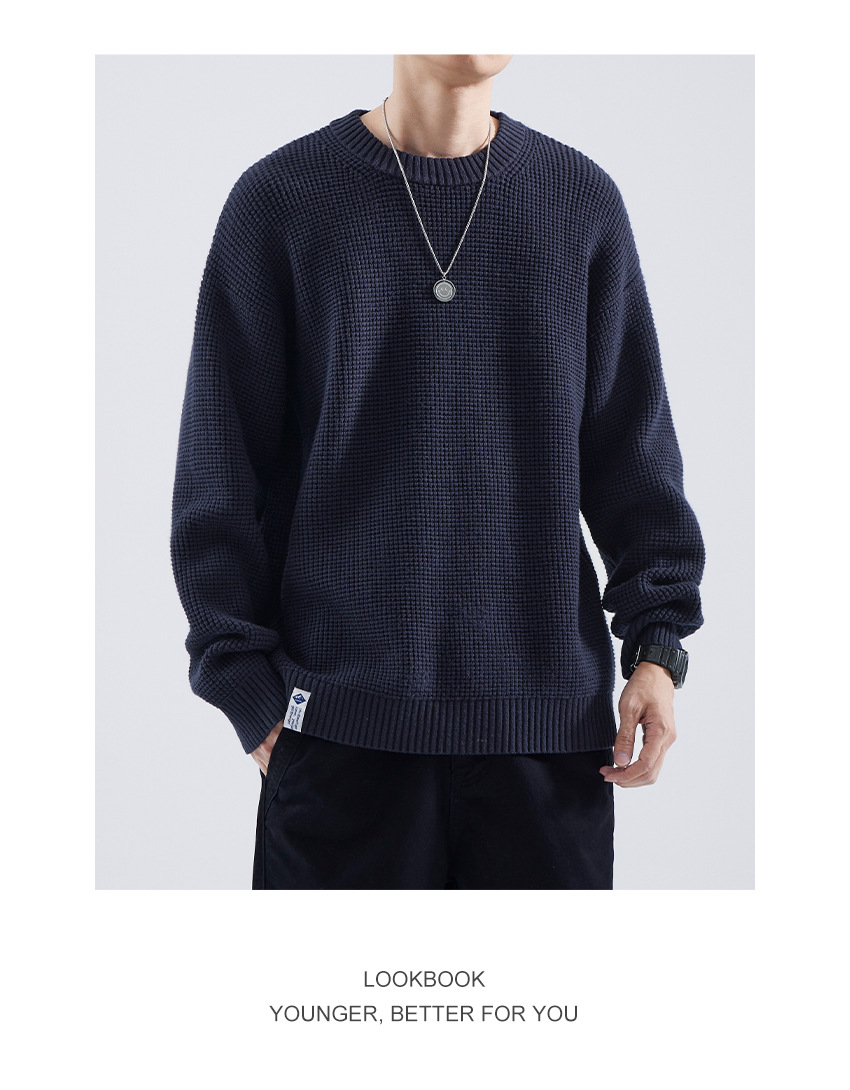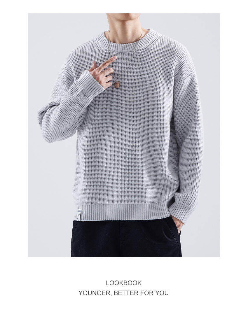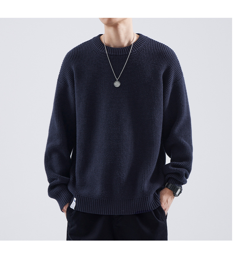 Hanska 게으른 스타일 스웨터 남자의 가을과 겨울 새로운 느슨한 솔리드 컬러 라운드 넥 풀오버 내부 니트 스웨터 재킷스토어 가기