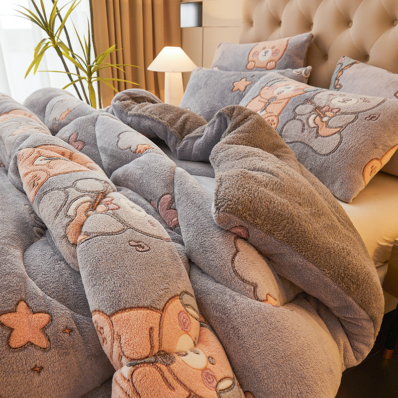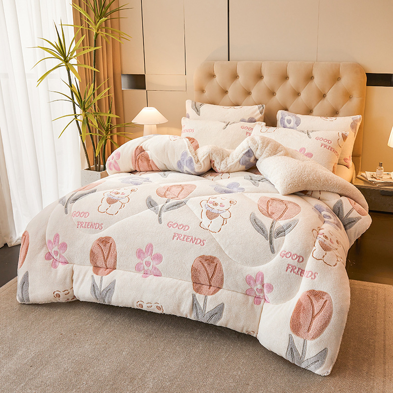 눈송이 벨벳 따뜻한 퀼트 코어 겨울 양고기 벨벳 학생 기숙사 두껍게 면화 이불 밀크 벨벳 기모 두꺼운 이불스토어 가기