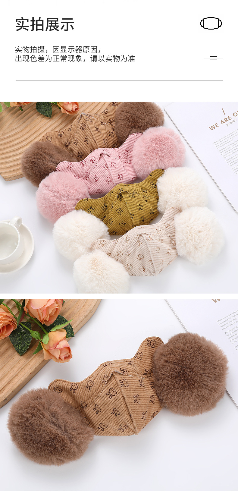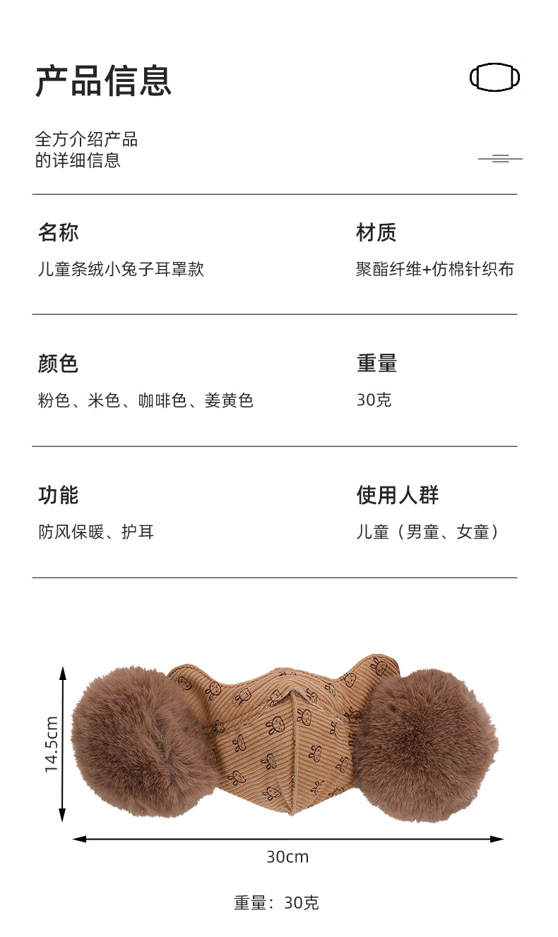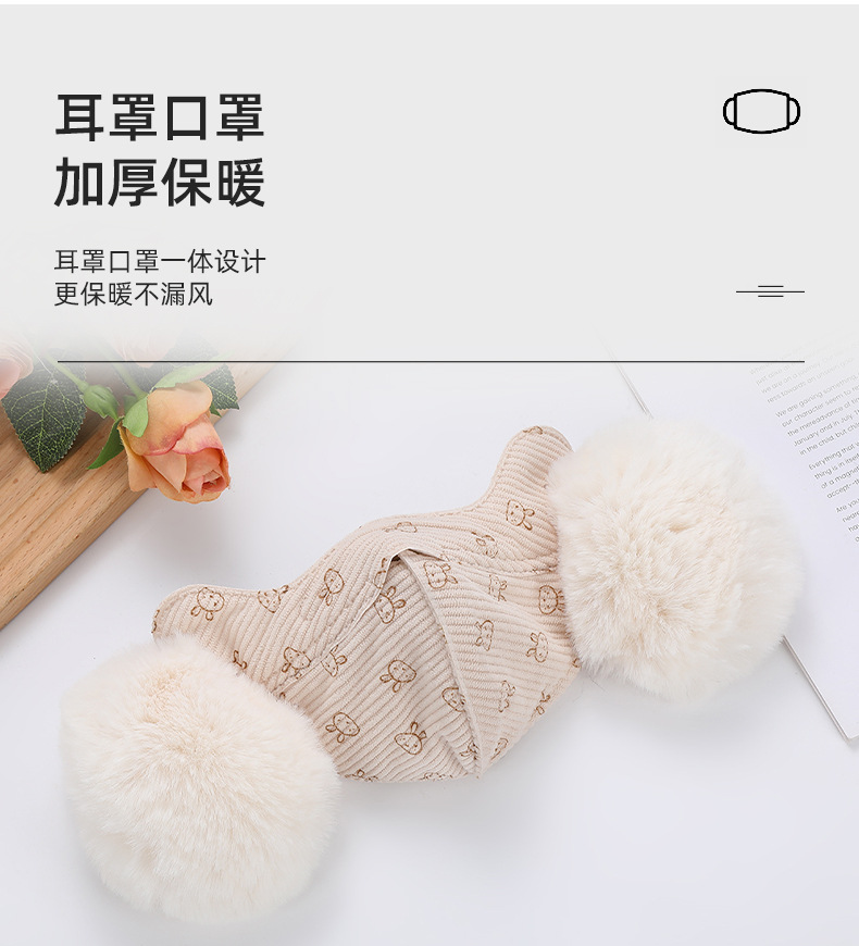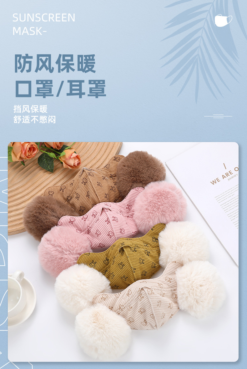 어린이 벨벳 토끼 귀마개 따뜻한 마스크 학생 귀마개 두꺼운 감기 방지 통기성 마스크를 타고