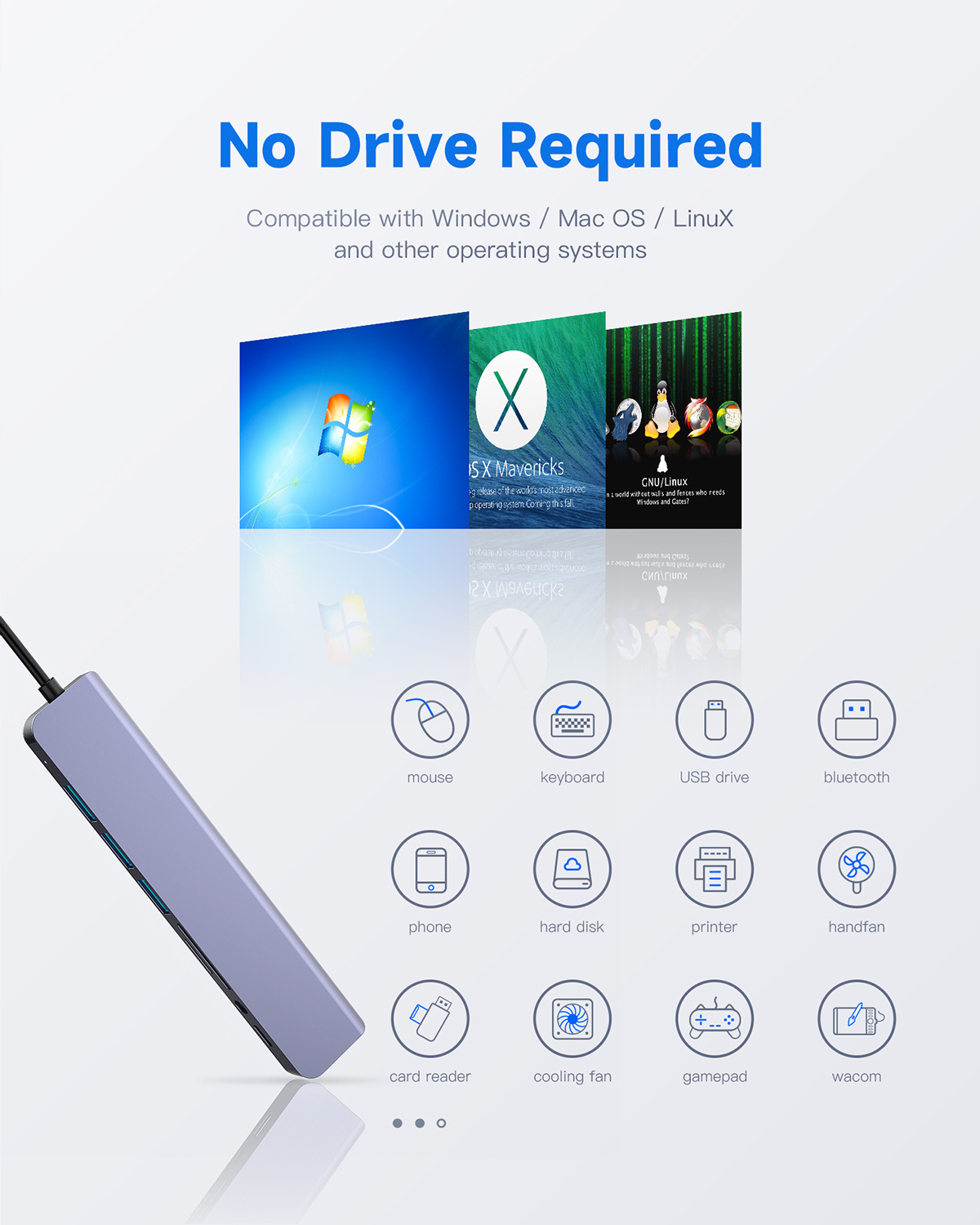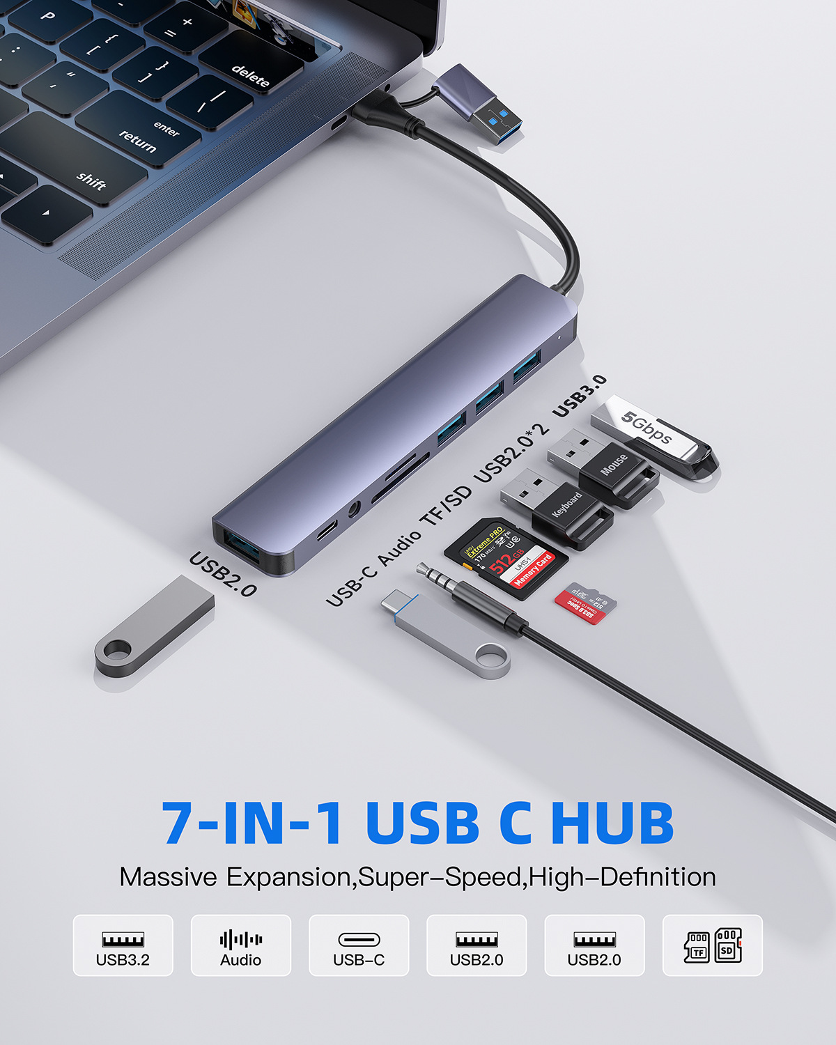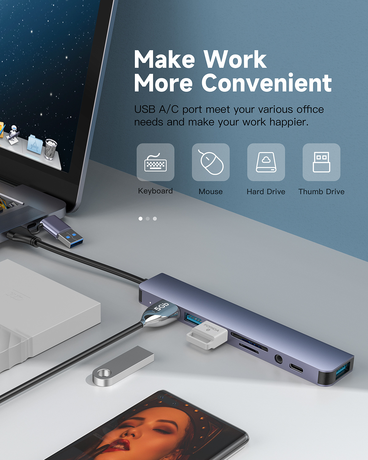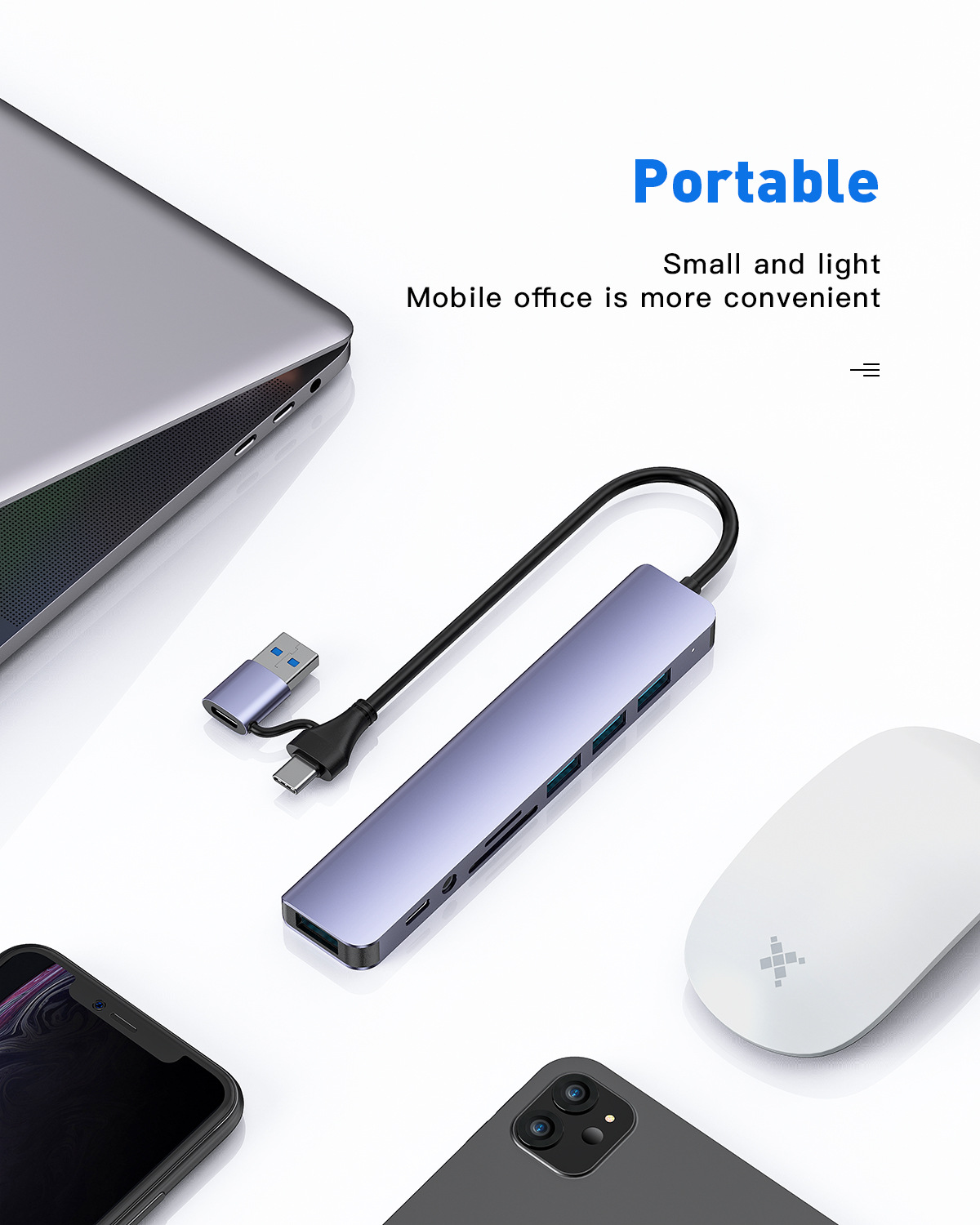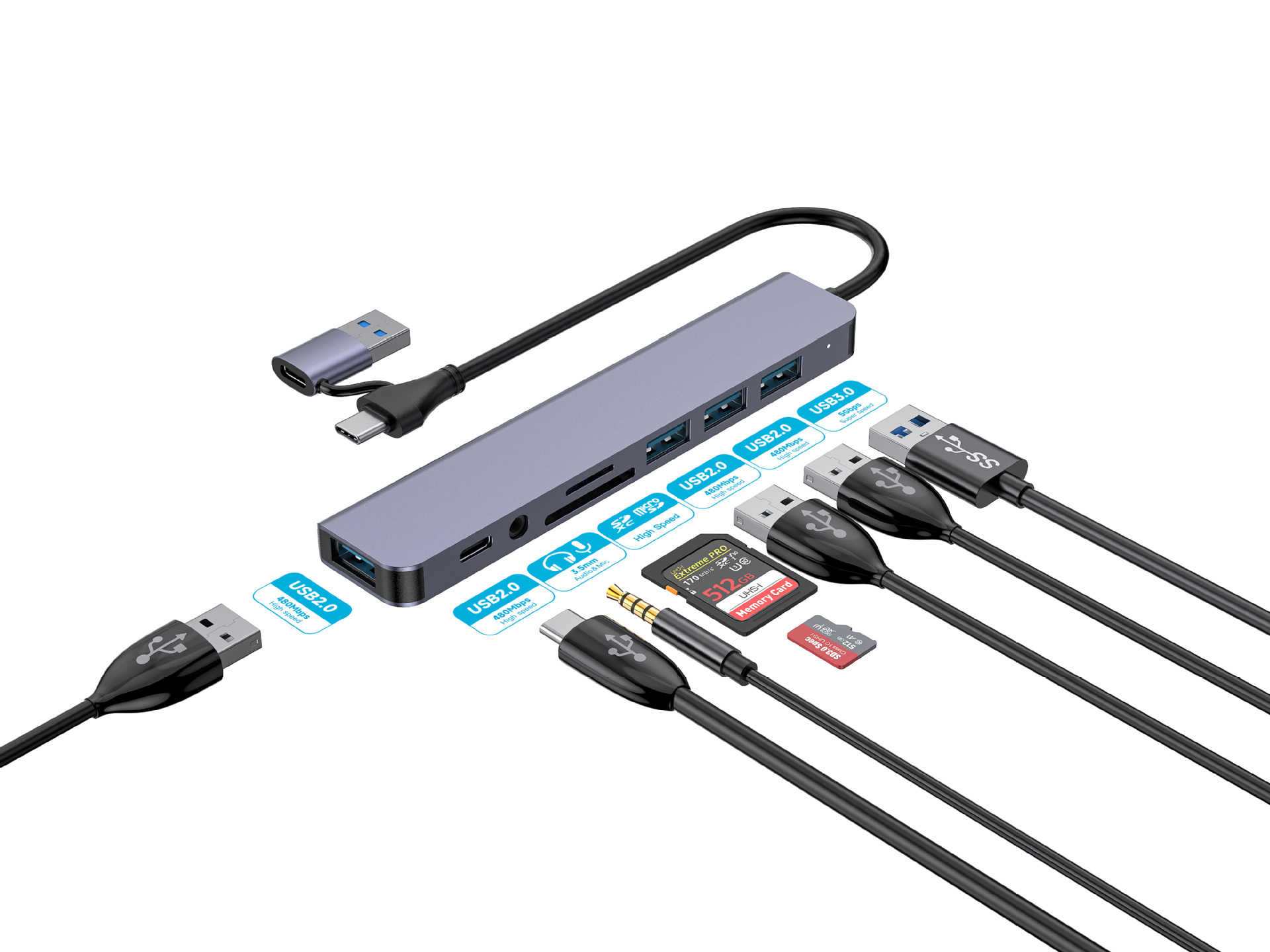 USBC 8-in-1 확장 도크 USB 오디오 카드 리더 다기능 허브 제조업체 재고 있음 해외 배송스토어 가기