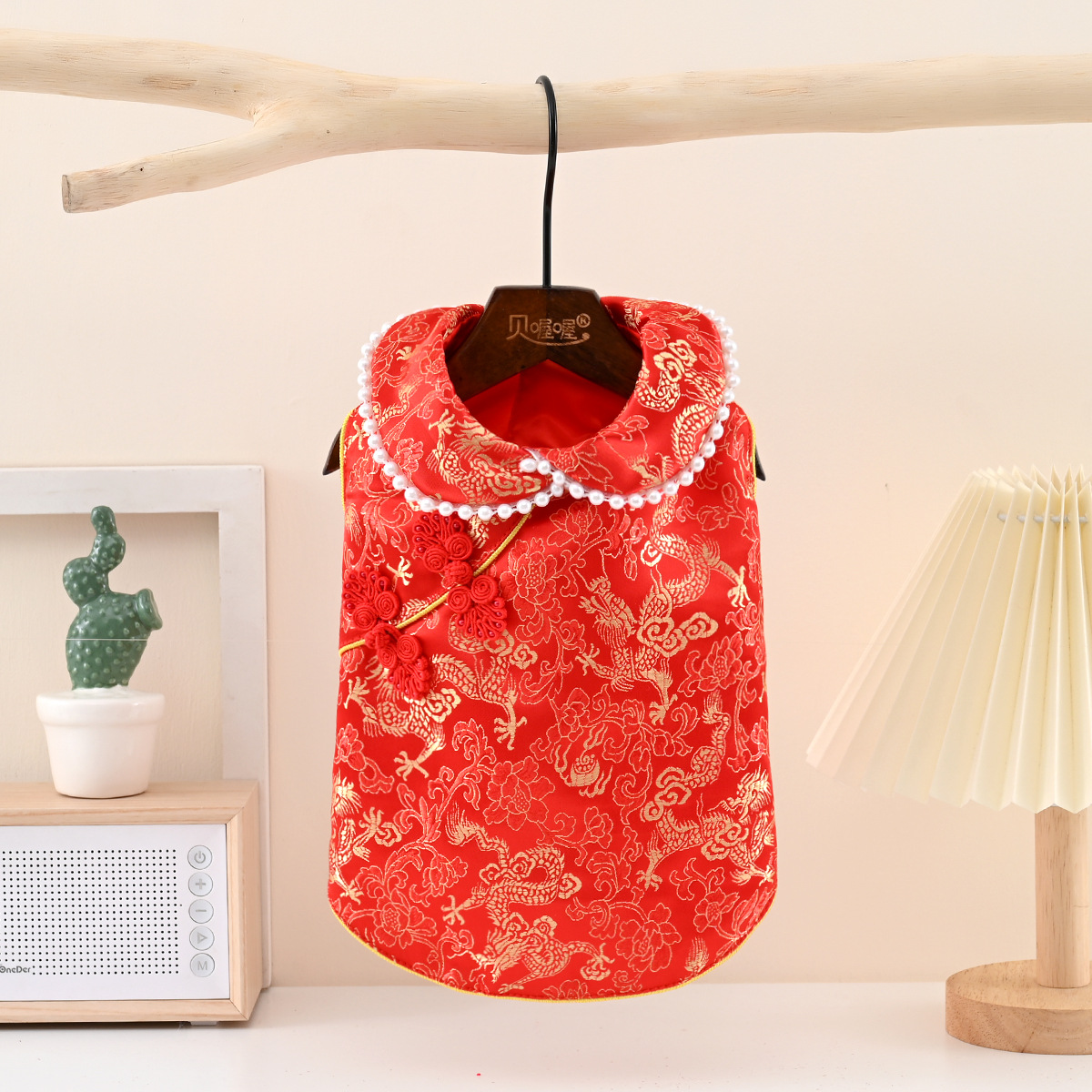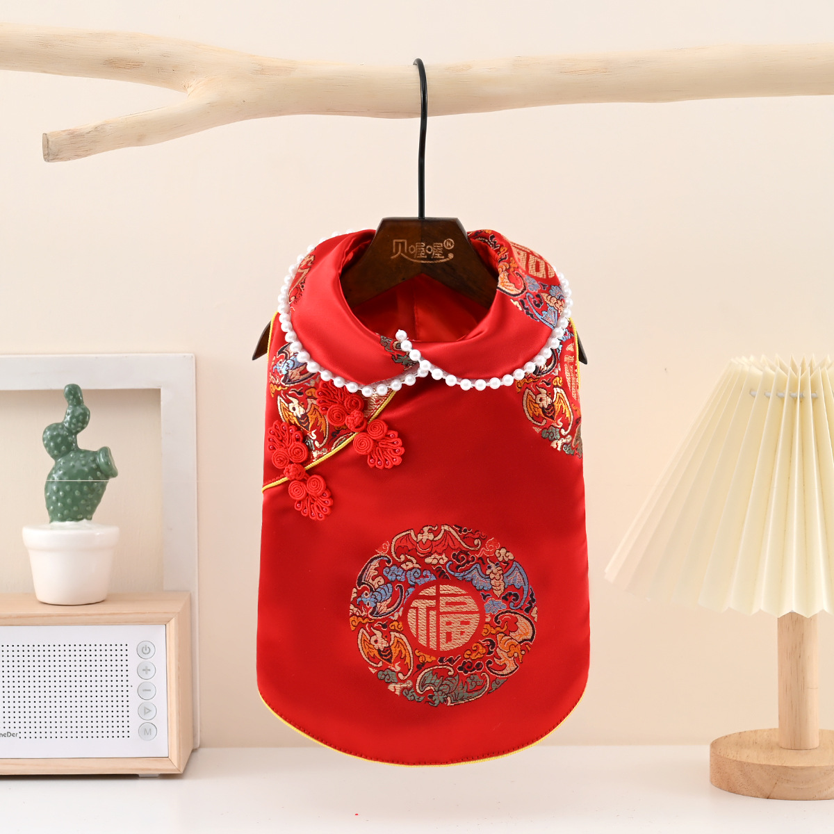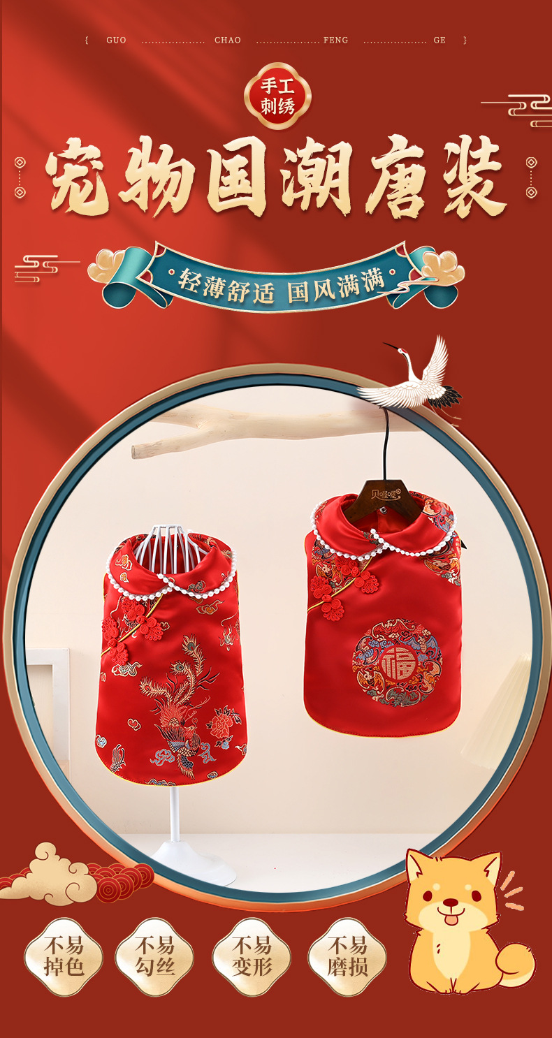 애완 동물 탕 세트 봄과 여름 얇은 개 옷 테디 베어 보메이 신년 중국 한 옷 고양이 새해 복 많이 받으세요