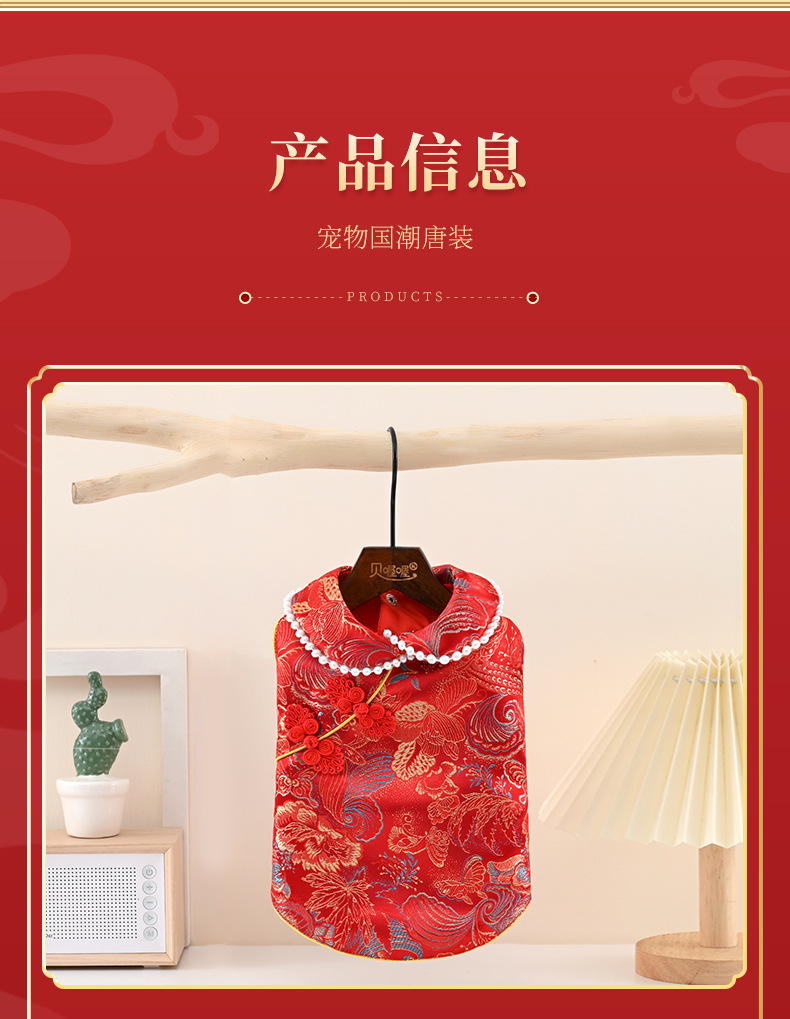 애완 동물 탕 세트 봄과 여름 얇은 개 옷 테디 베어 보메이 신년 중국 한 옷 고양이 새해 복 많이 받으세요스토어 가기