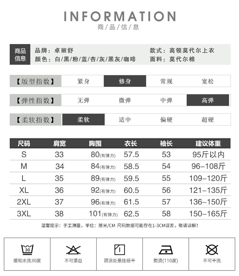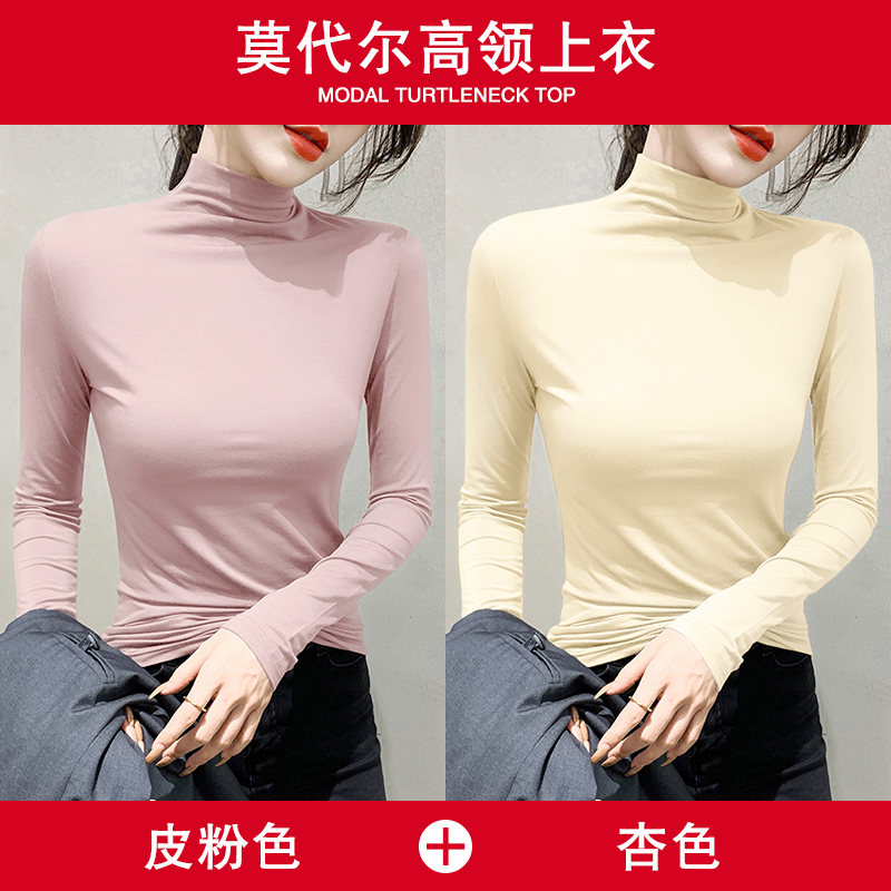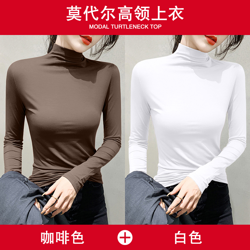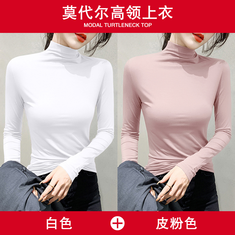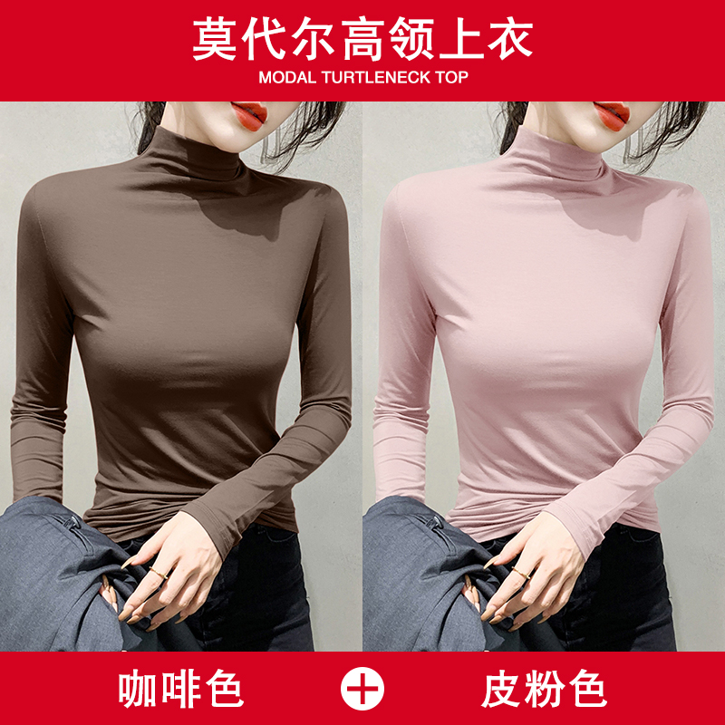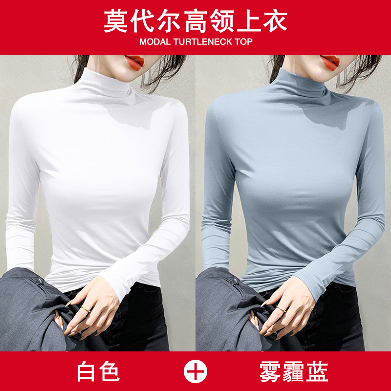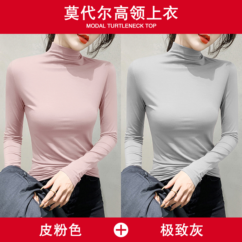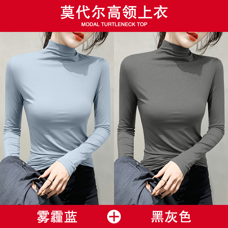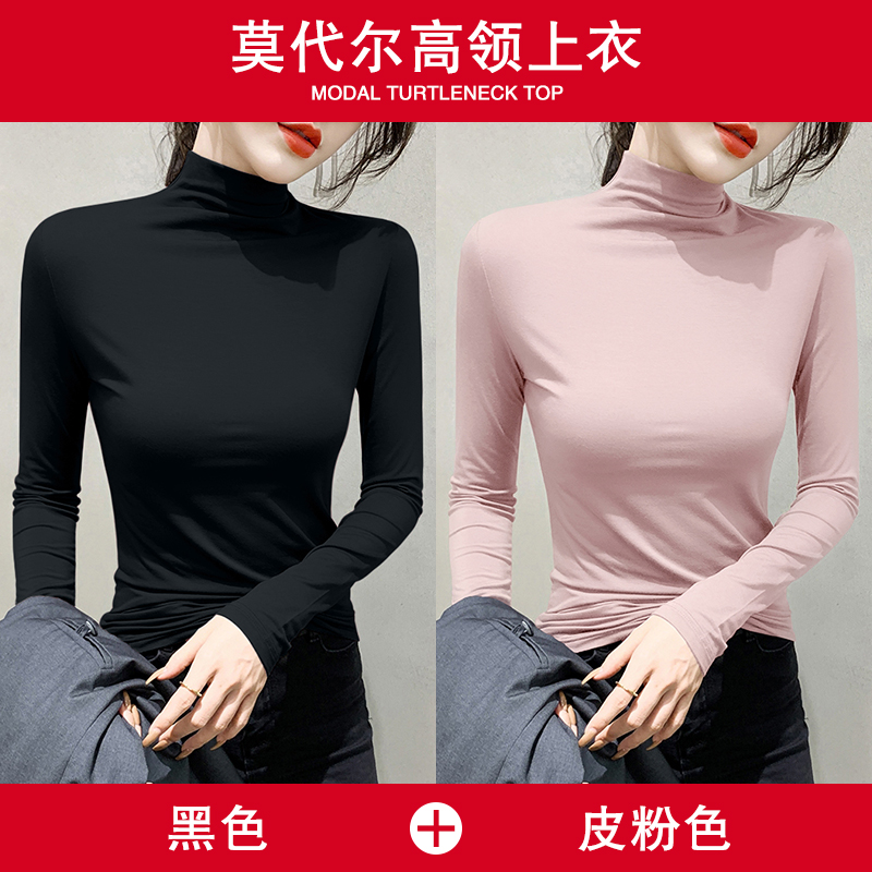 모달 블랙 하프 하이 칼라 베이스 셔츠 여성용 봄과 가을 내부 슬림 마스크 긴팔 티셔츠 미드 칼라 얇은 탑스토어 가기