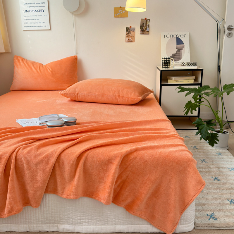 2025 가을 겨울 신상 두꺼운 200g 순색 밀크 벨벳 침대 시트 플러스 벨벳 보온 침대 시트 3종 세트