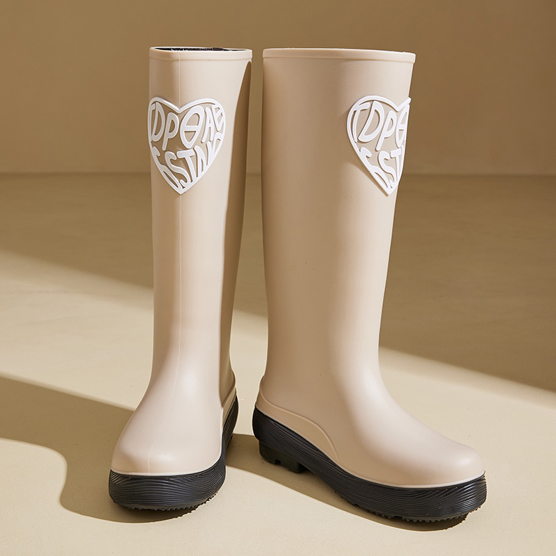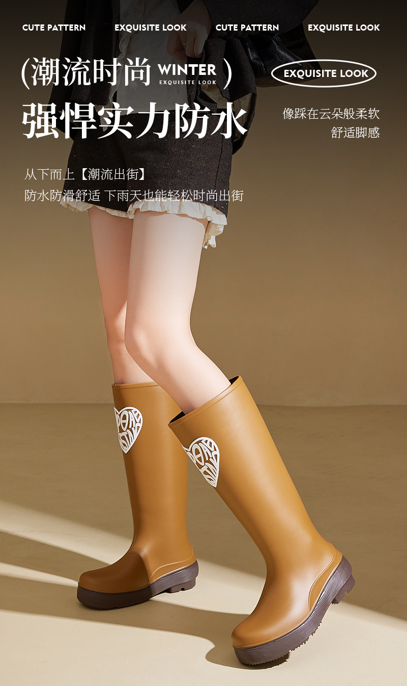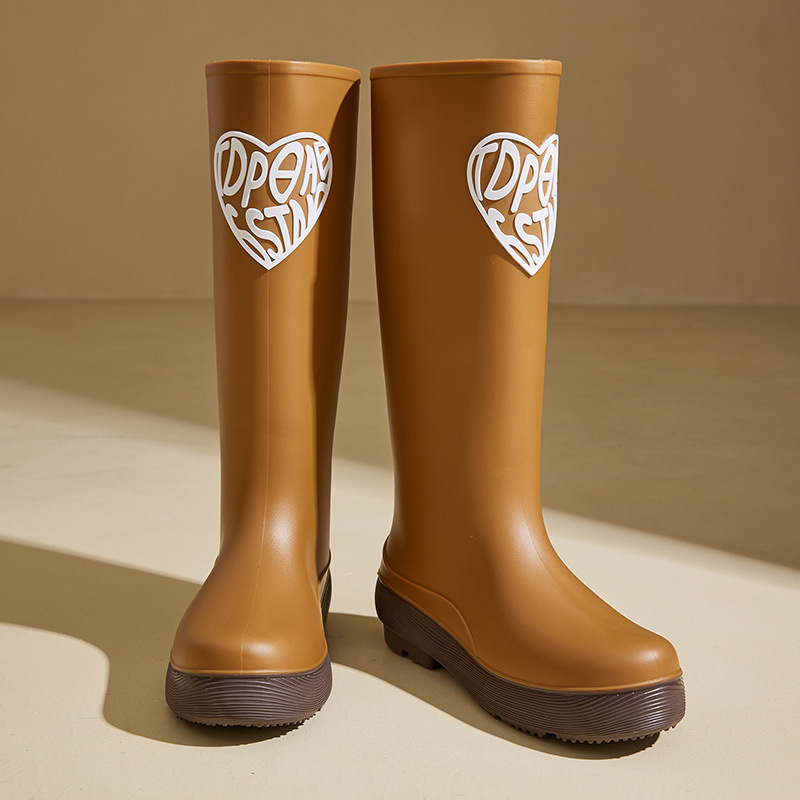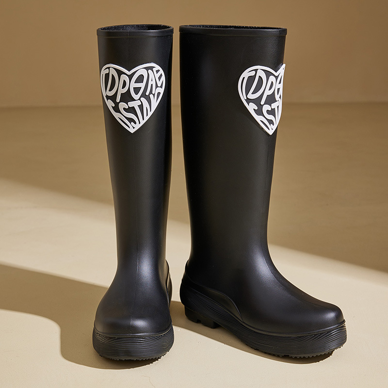 한국 스타일 새로운 여성 높은 비 부츠 유행 학생 야외 장화 외부 착용 중간 튜브 미끄럼 방지 두꺼운 물 신발스토어 가기