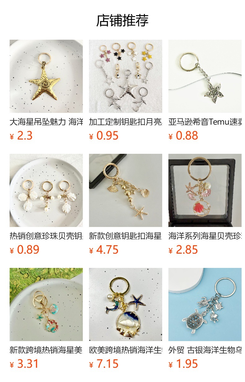 유럽과 미국의 대외 무역 보석 백팩 펜던트 비치 불가사리 거북 바다 거북 해양 스타일 쉘 키 체인스토어 가기