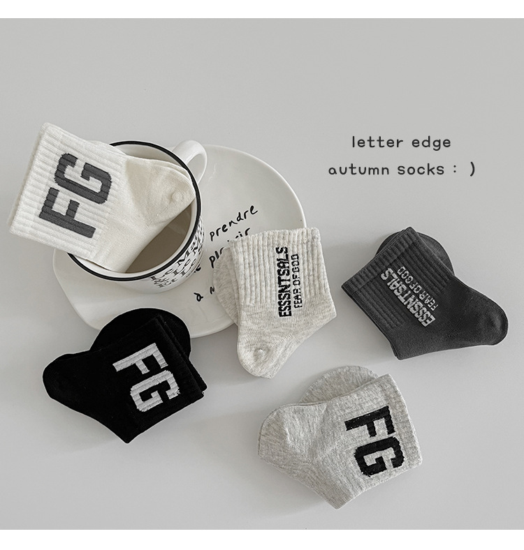 소년 양말 클래스 A 면 어린이 양말 가을 새로운 아기 스포츠 유행 양말 Ins 편지 높은 고무 밴드 중 큰 아이들