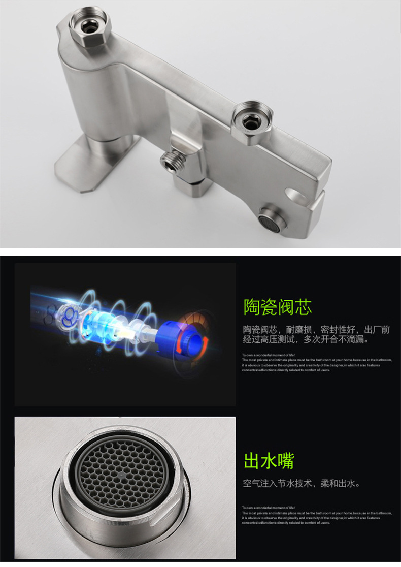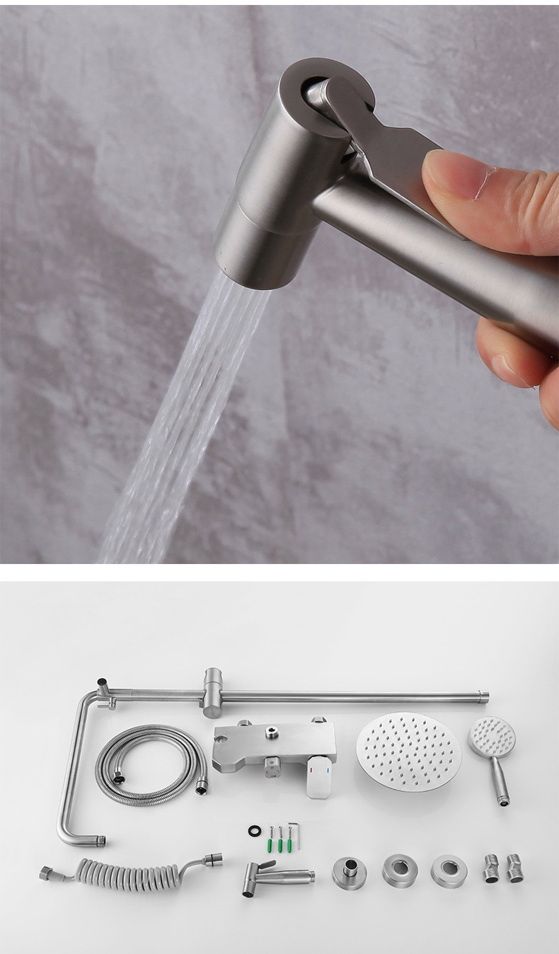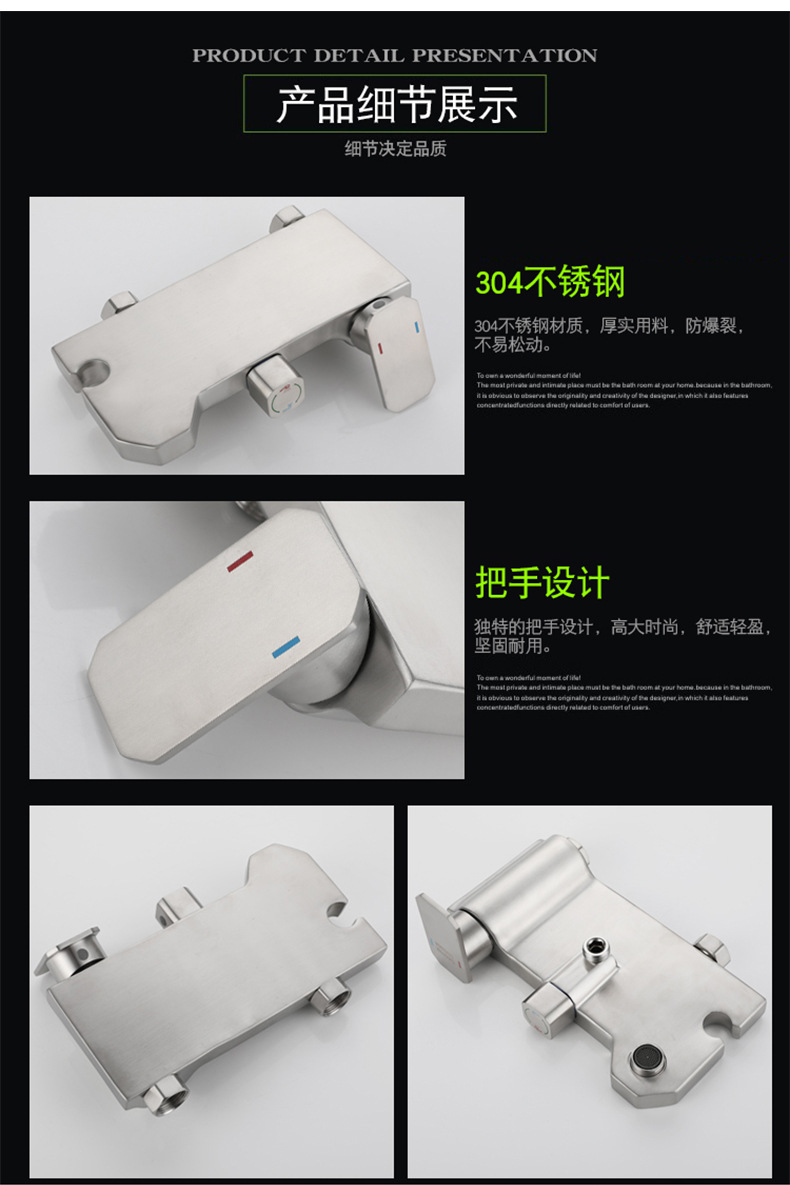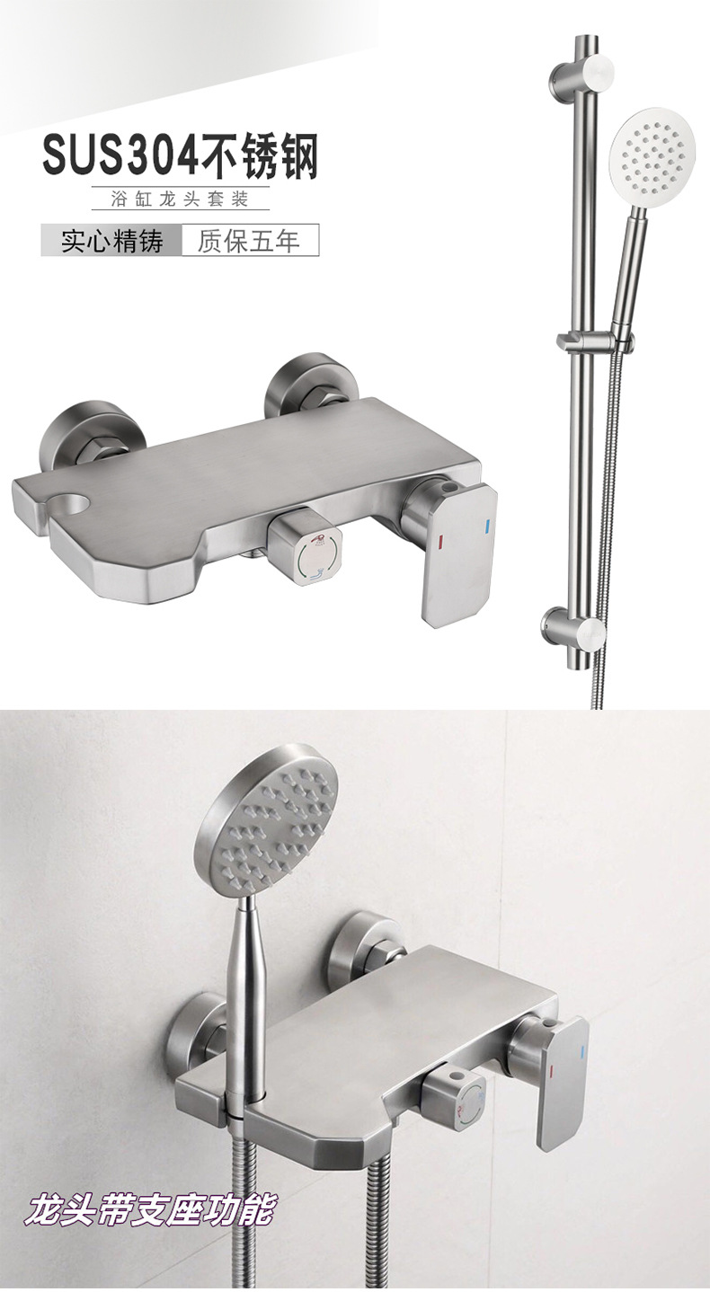 304 스테인레스 스틸 샤워 수도꼭지 욕실 숨겨진 트리플 욕조 온수 및 냉수 헤드 이중 제어 혼합 밸브 저장 평판