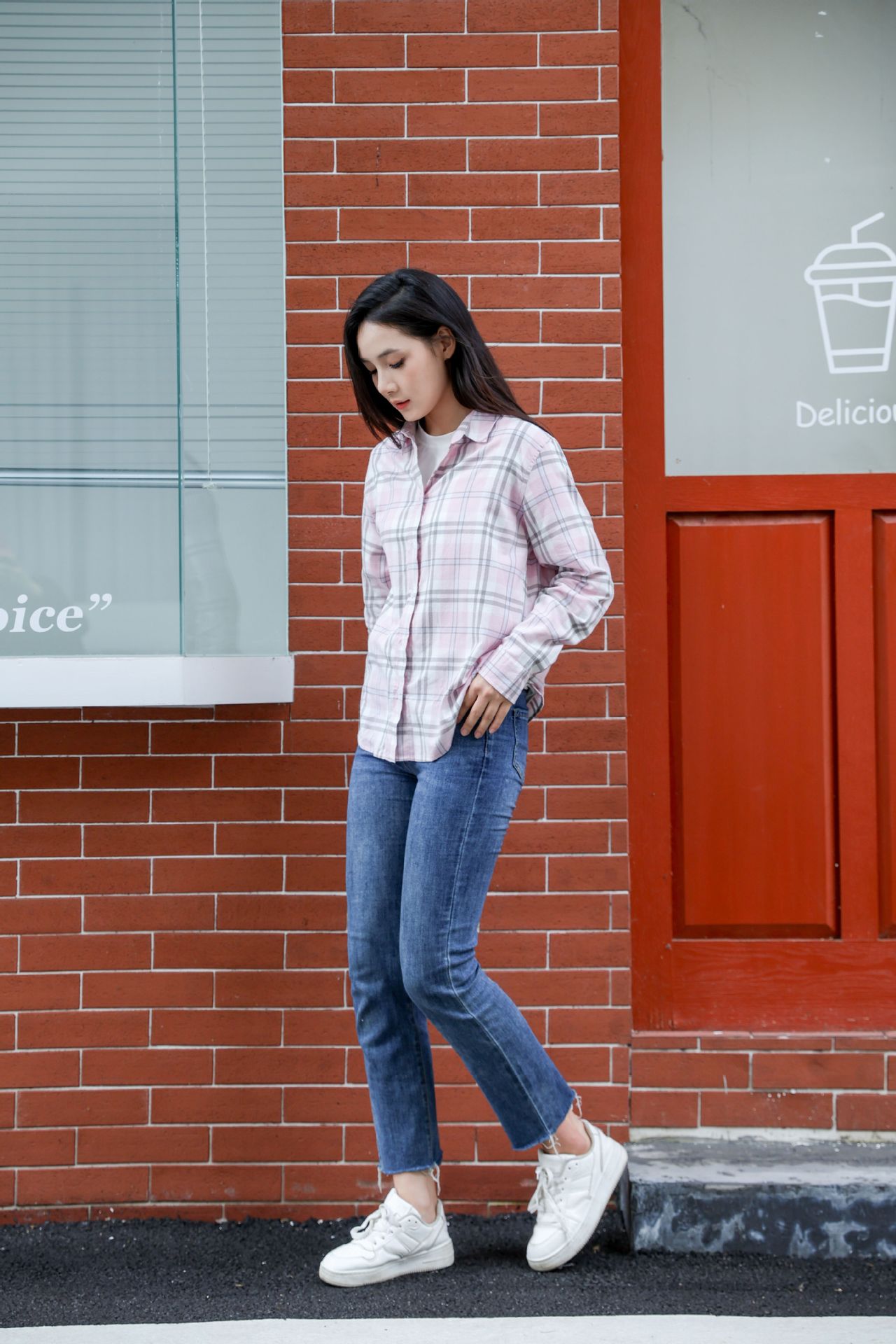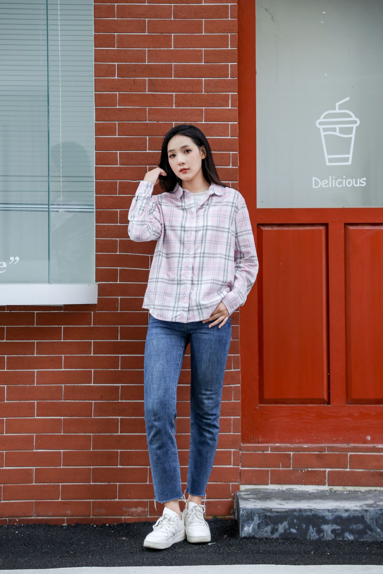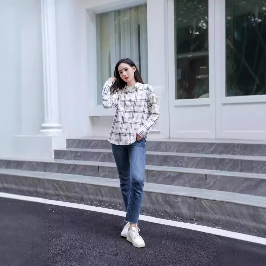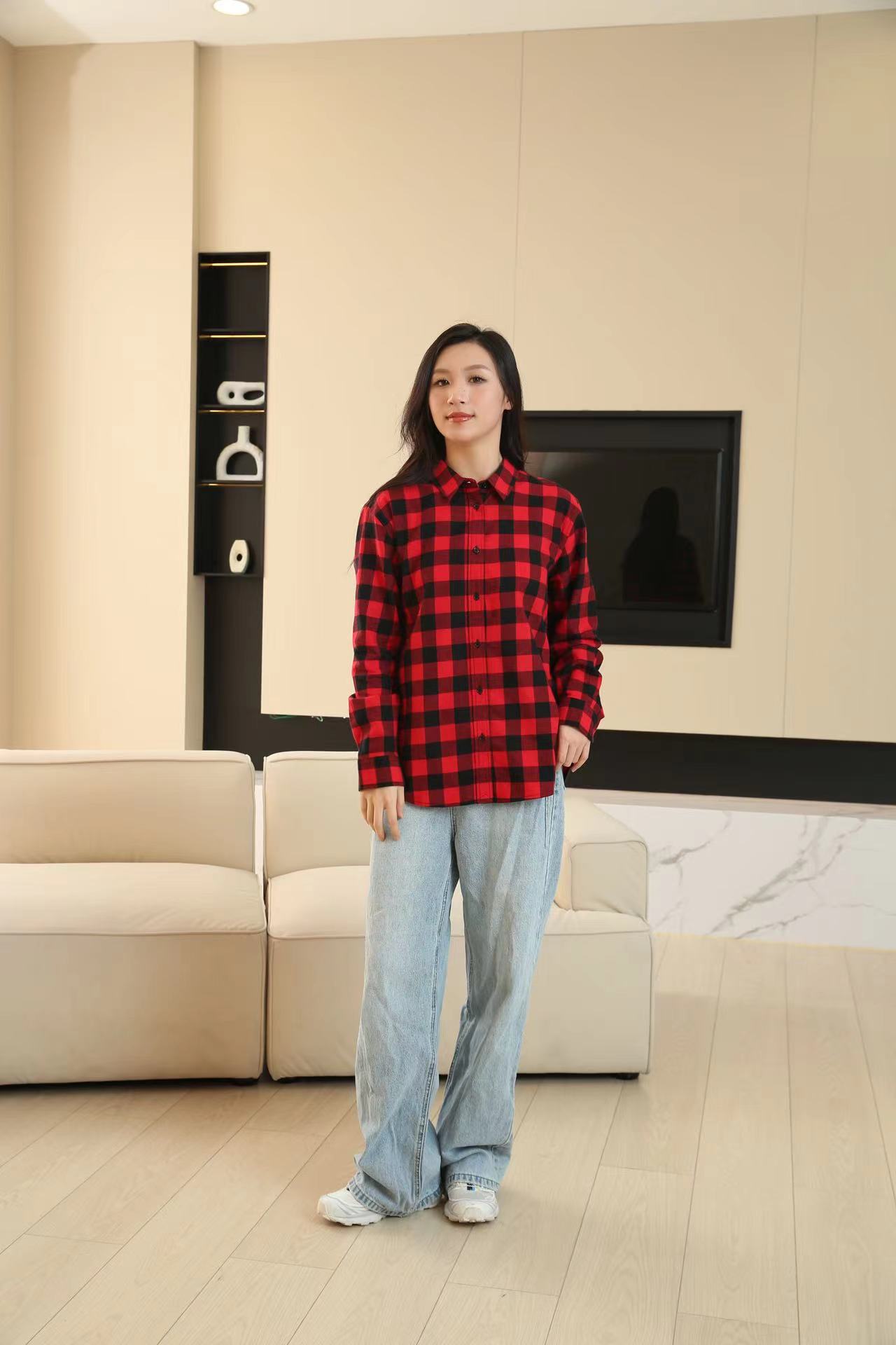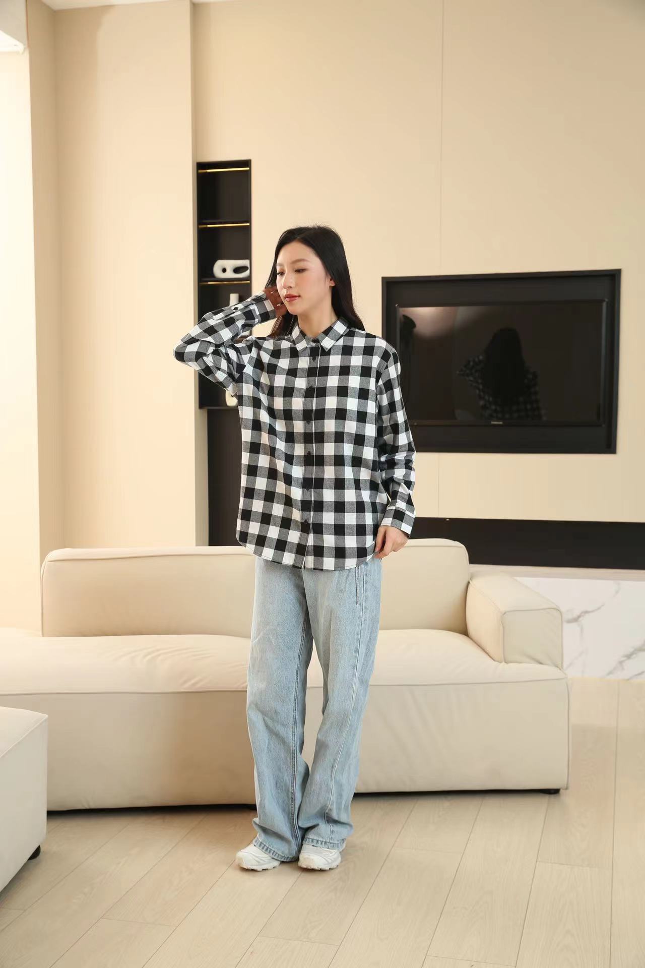 격자 무늬 셔츠 여자의 새로운 느슨한 올 매치 이른 가을 클래식 올 매치 카디건 스퀘어 칼라 가을 격자 무늬 재킷 긴 소매