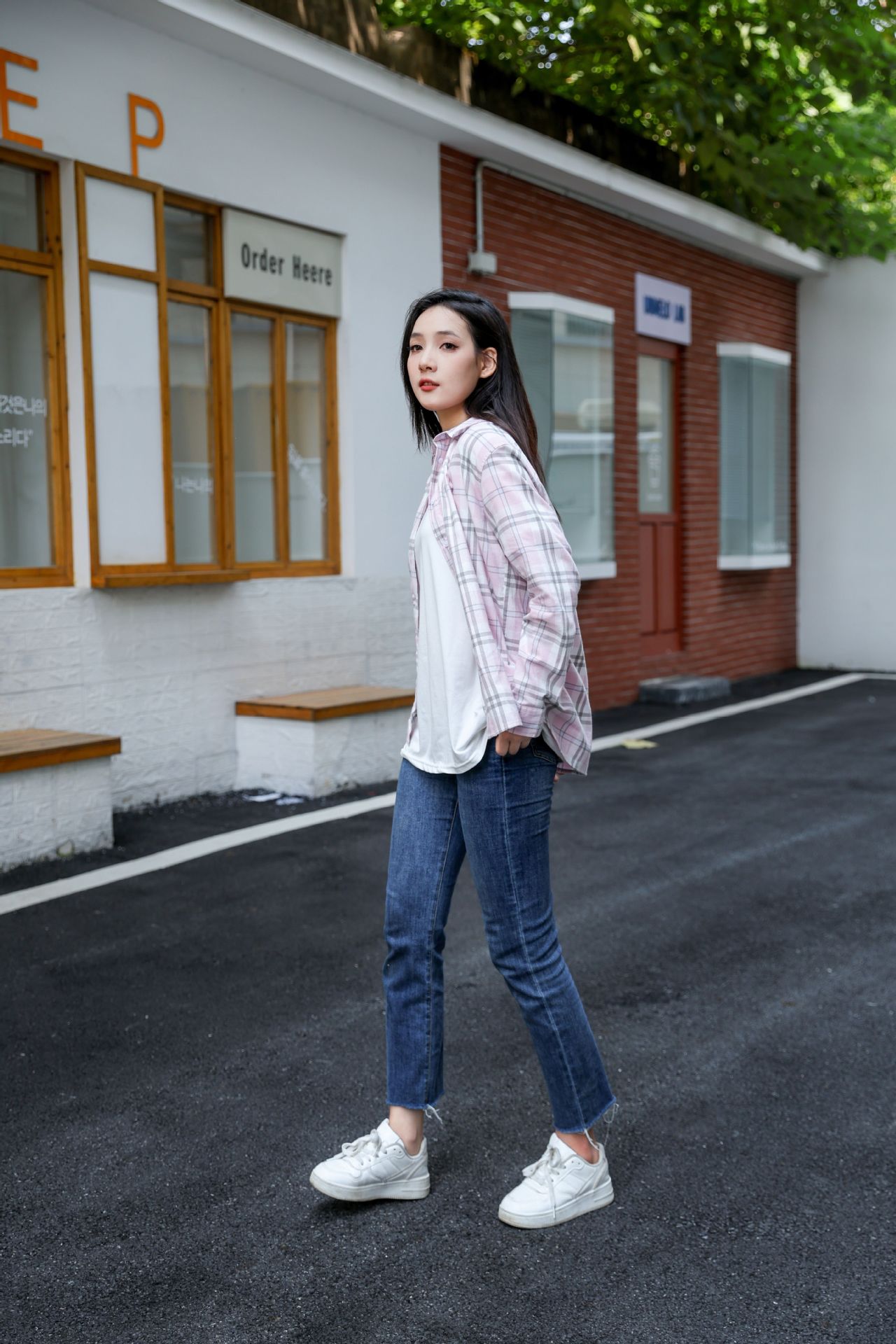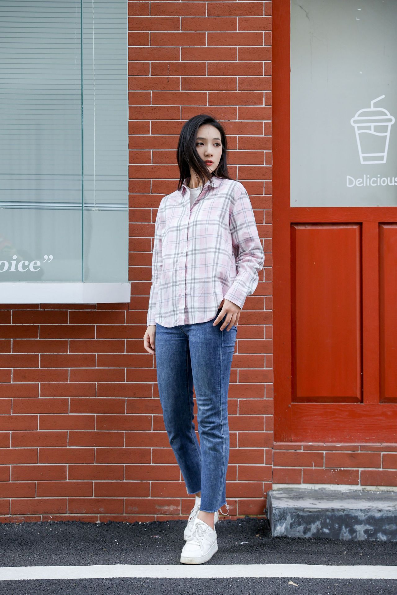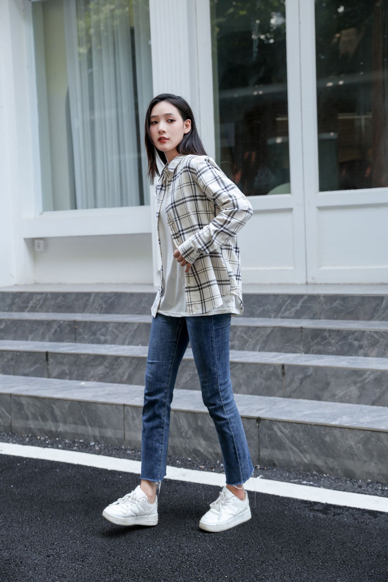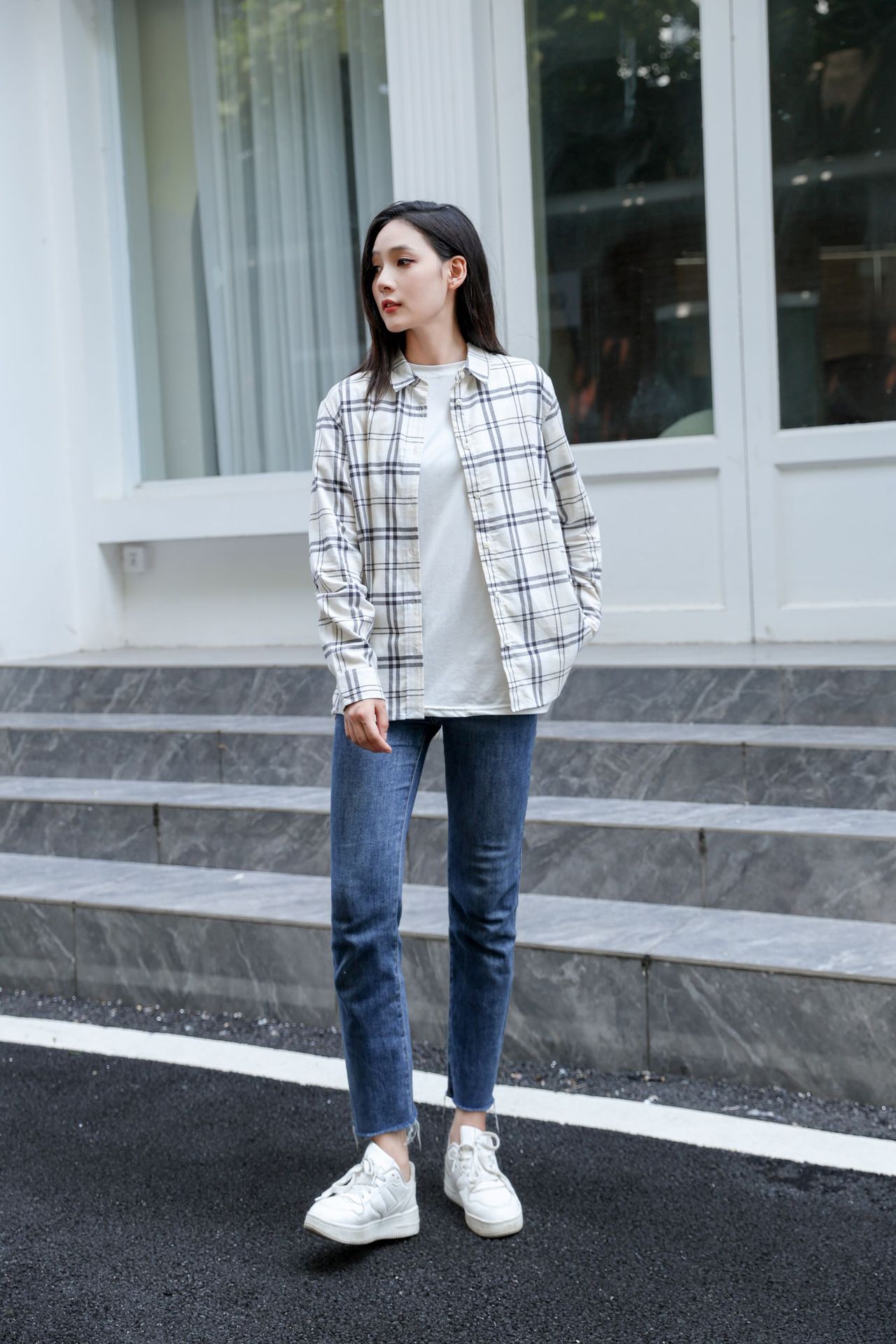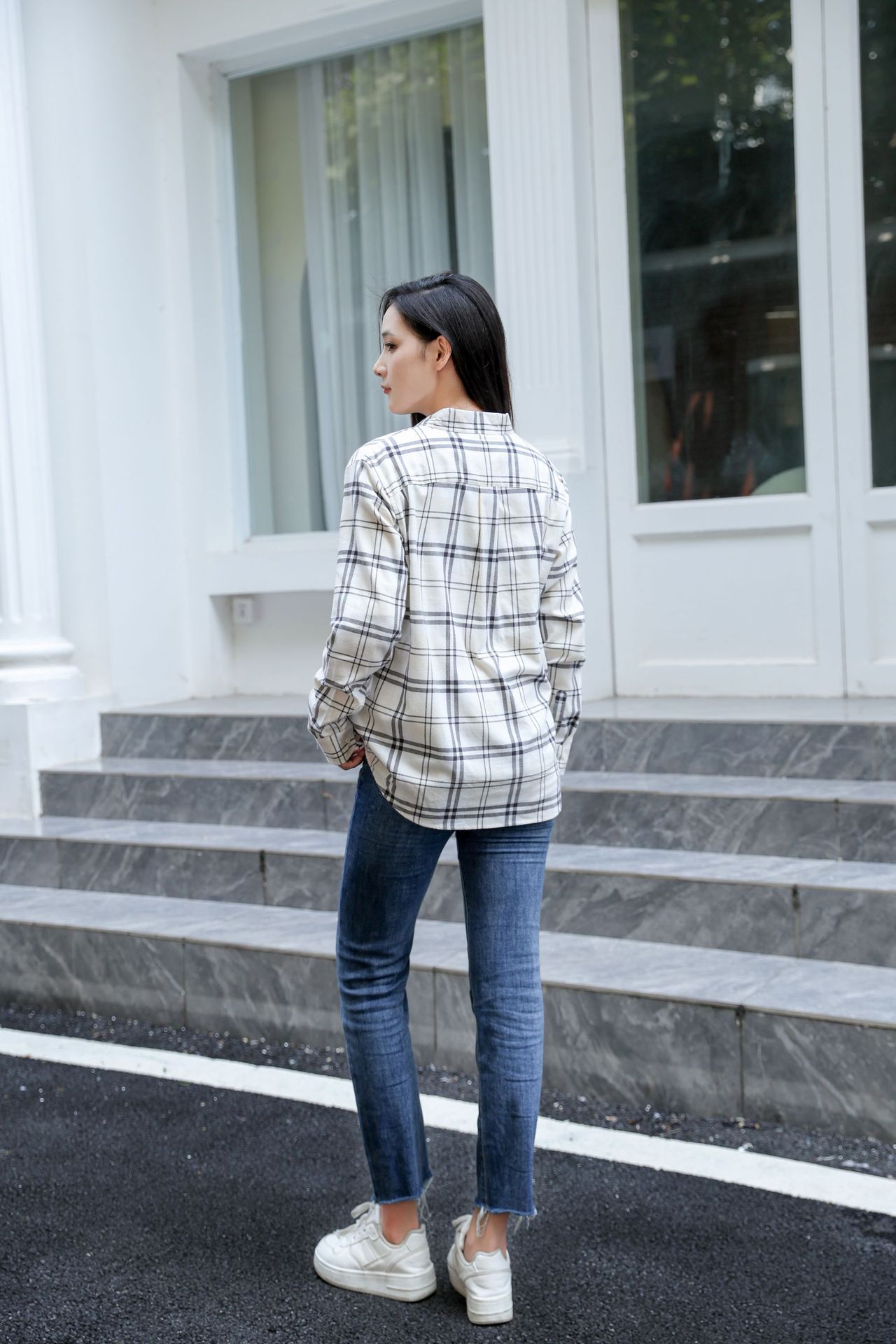 격자 무늬 셔츠 여자의 새로운 느슨한 올 매치 이른 가을 클래식 올 매치 카디건 스퀘어 칼라 가을 격자 무늬 재킷 긴 소매