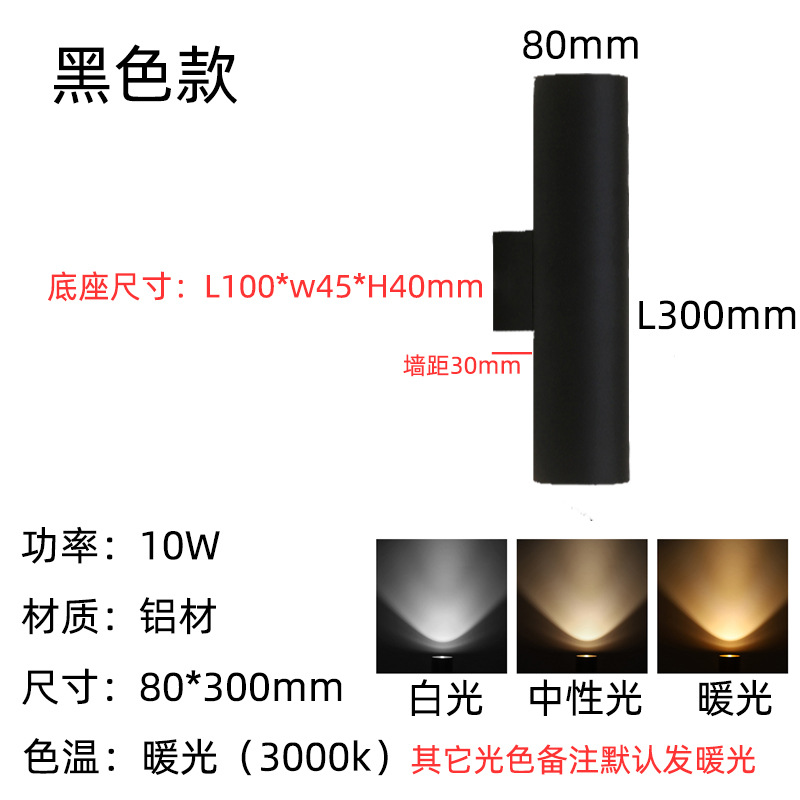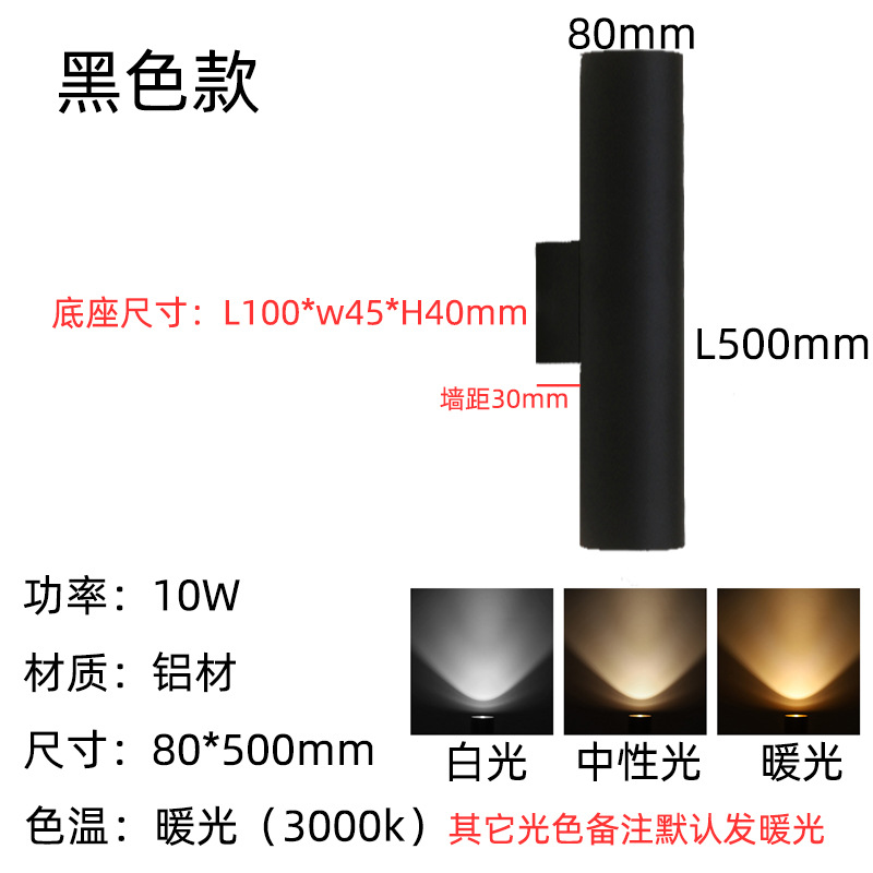 • 8*30cm 매트 블랙—10W 따뜻한 빛