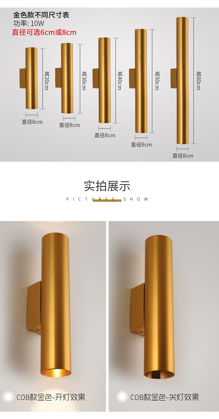 • 6*20cm 구리 색상 - 양방향 조명 - 10w 따뜻한 조명