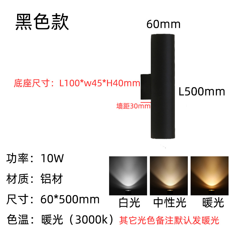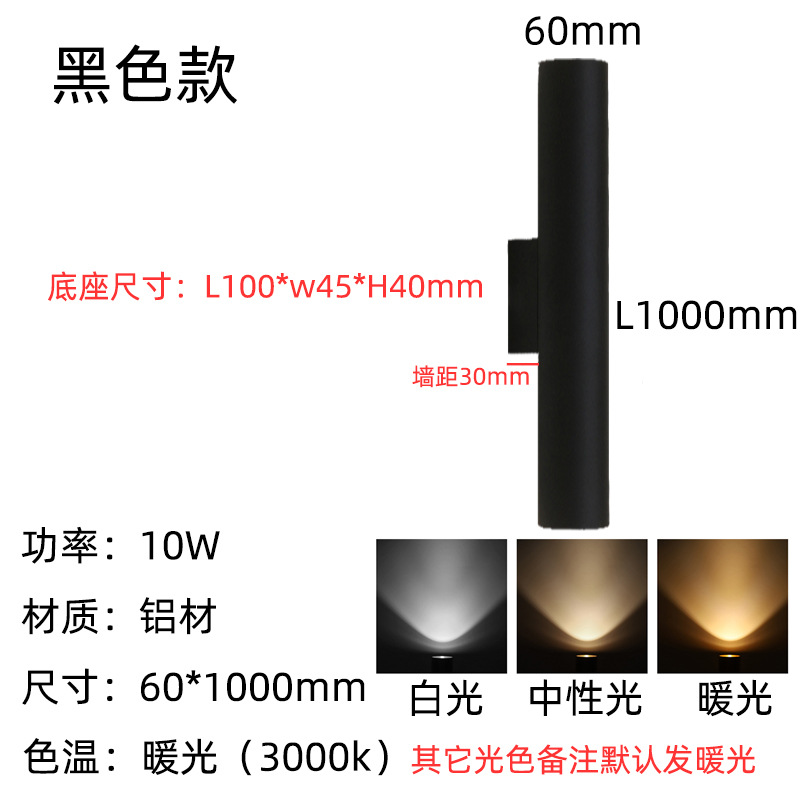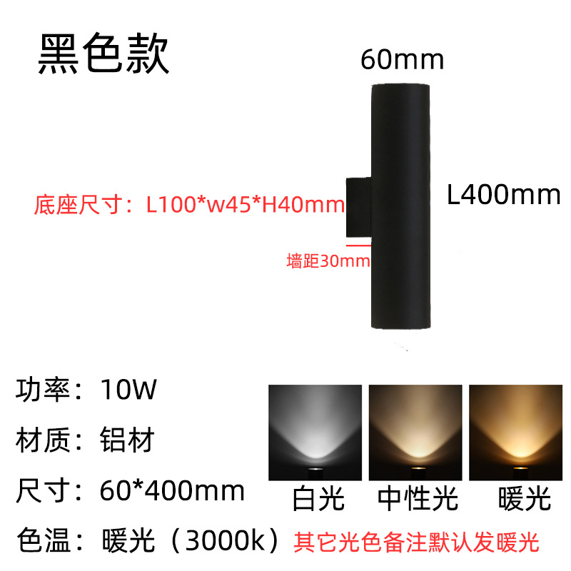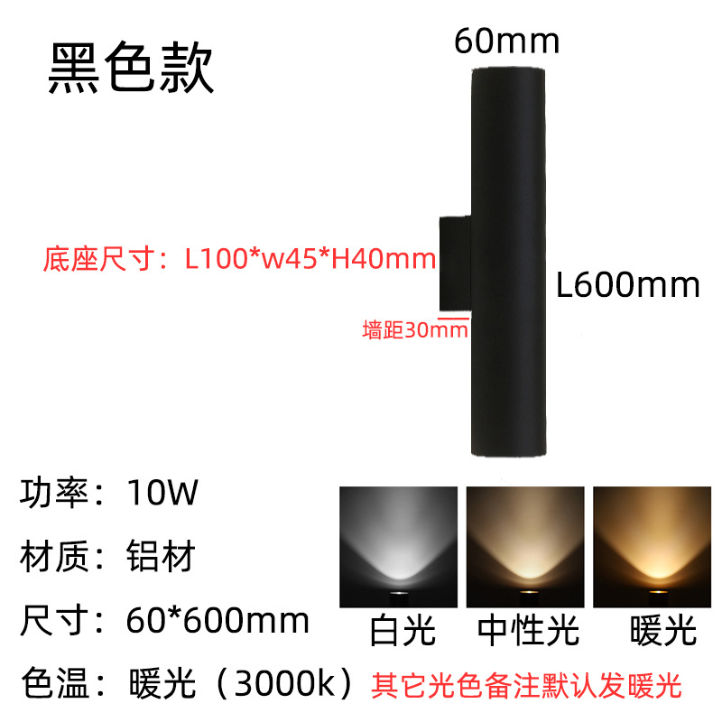 • 6*30cm 매트 블랙—10W 따뜻한 빛