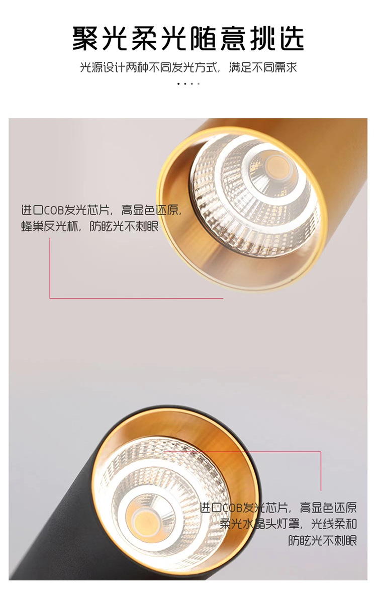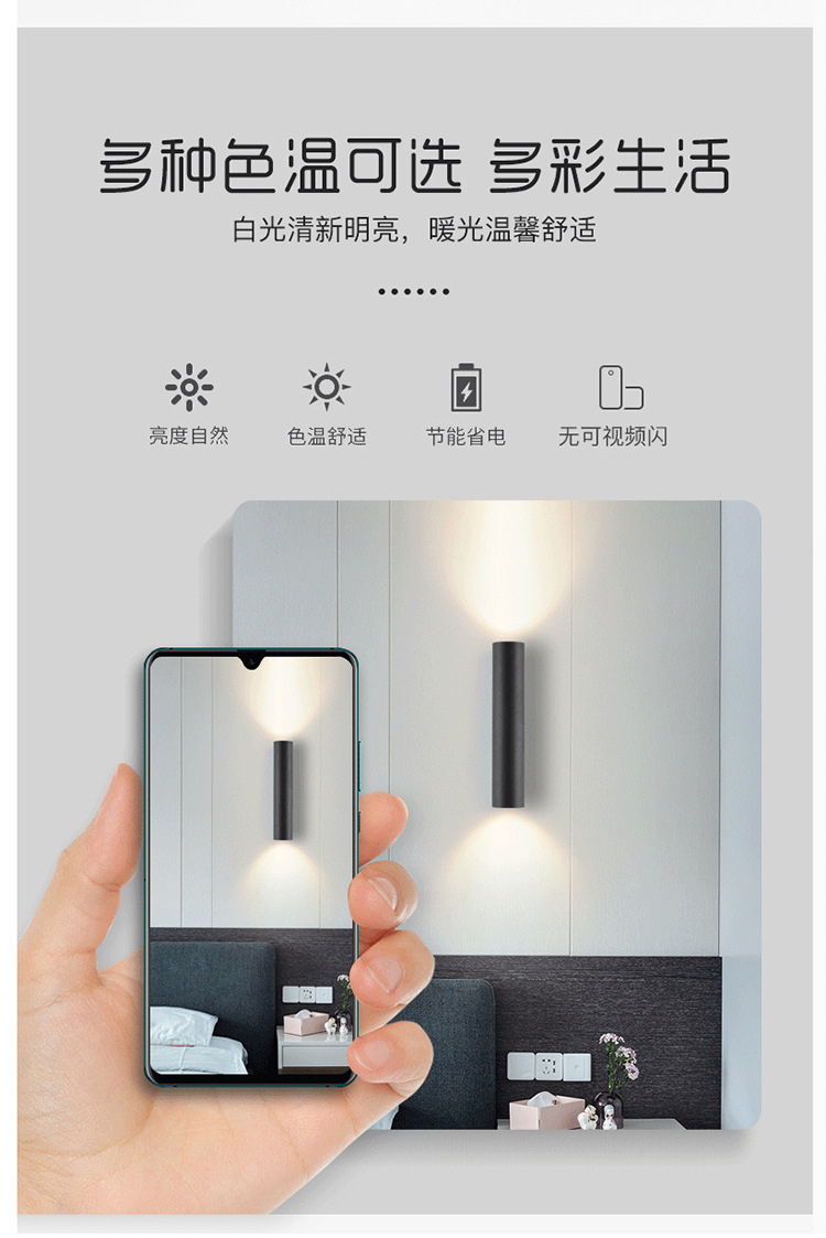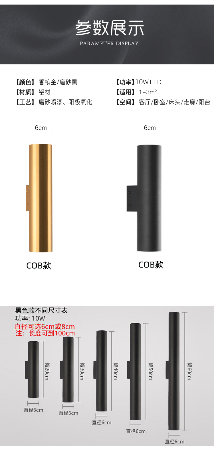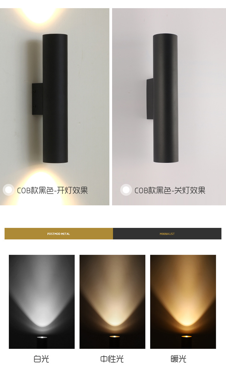 • 6*20cm 매트 블랙—10W 따뜻한 빛