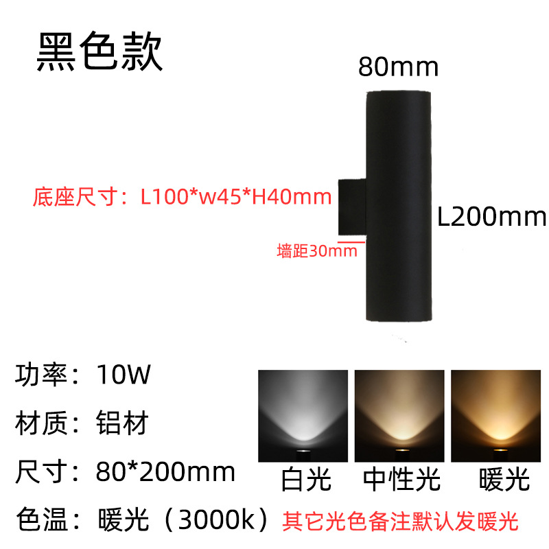 • 8*20cm 매트 블랙—10W 따뜻한 빛