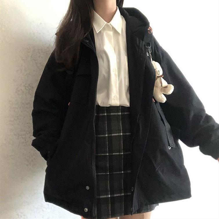한국 스타일 홍콩 스타일 충전 재킷 여성 학생 봄과 가을 긴 소매 후드 느슨한 올매치 캐주얼 워크 재킷 탑스토어 가기