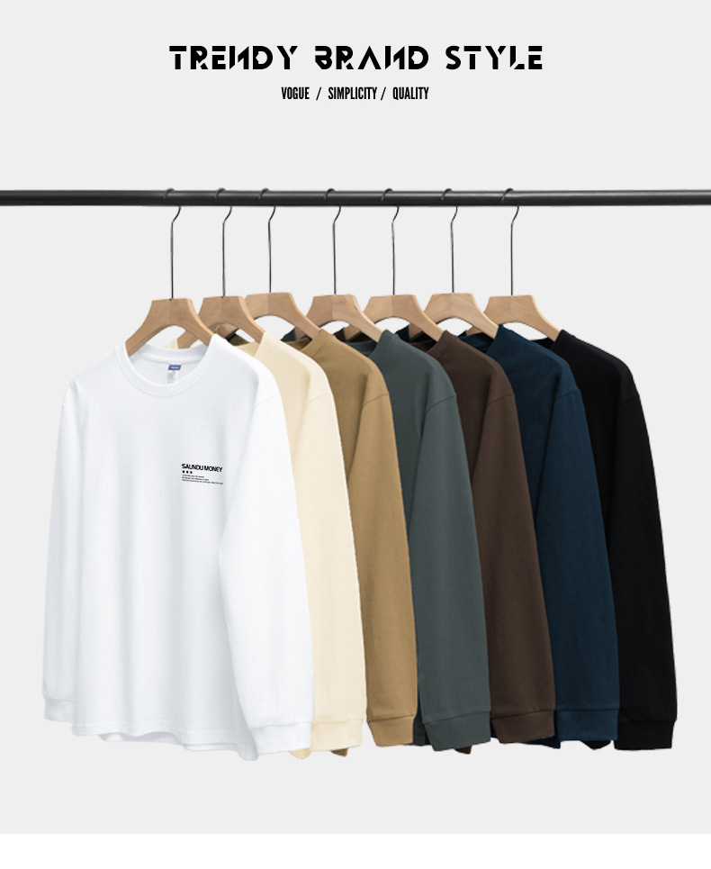 260g 미국 무거운 면 긴 소매 티셔츠 남성 패션 편지 프린트 최고 옷 크루 넥베이스 셔츠스토어 가기