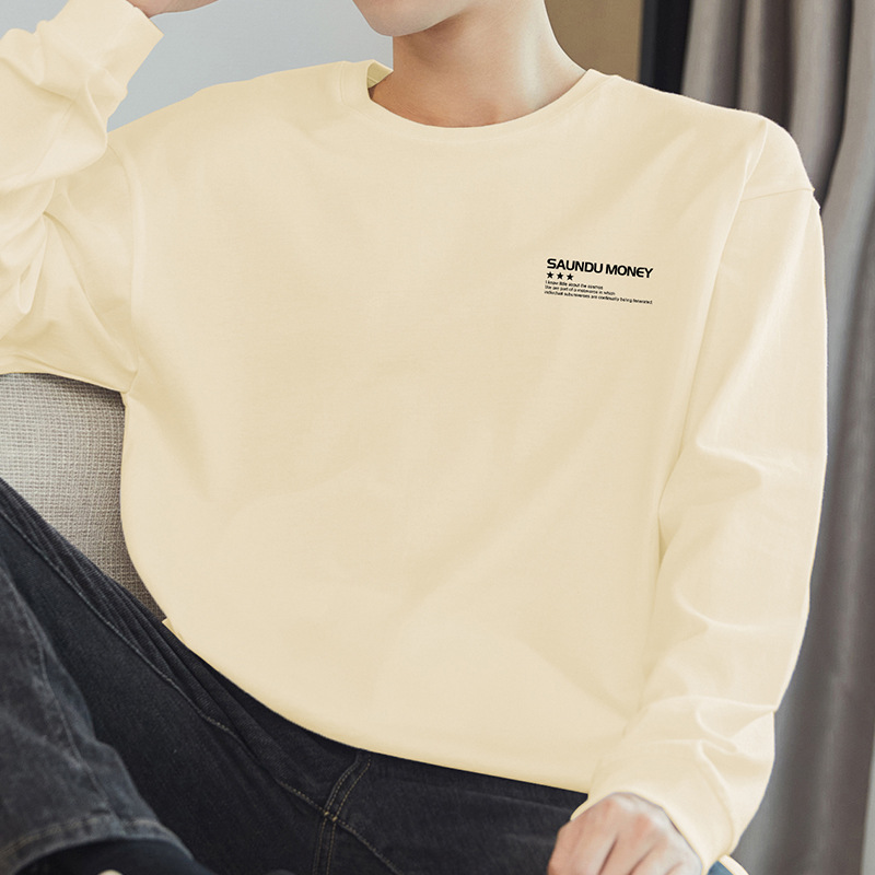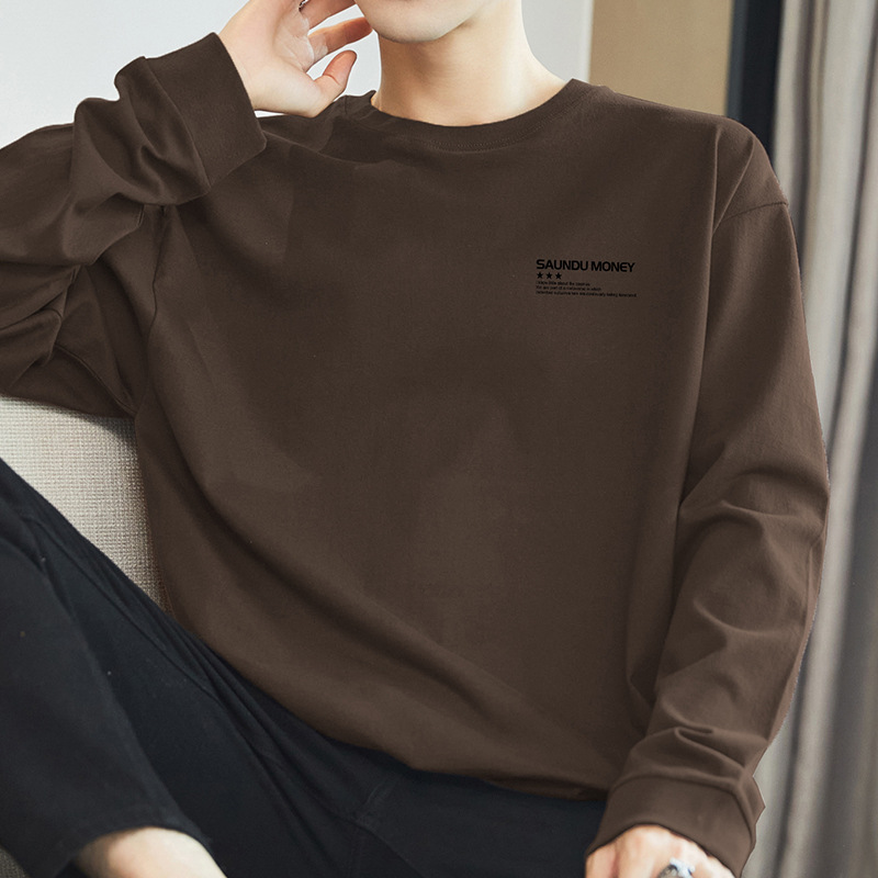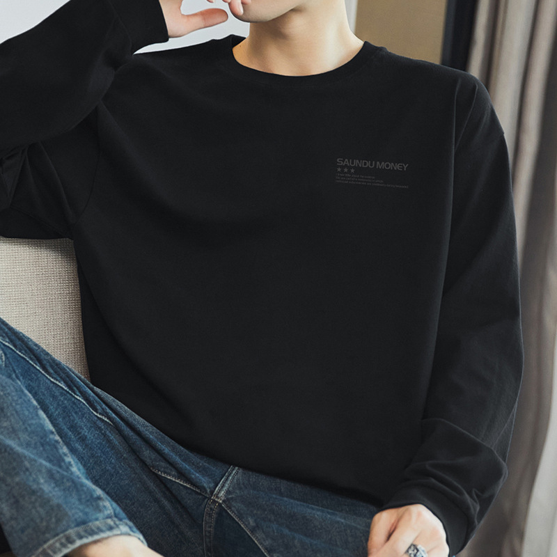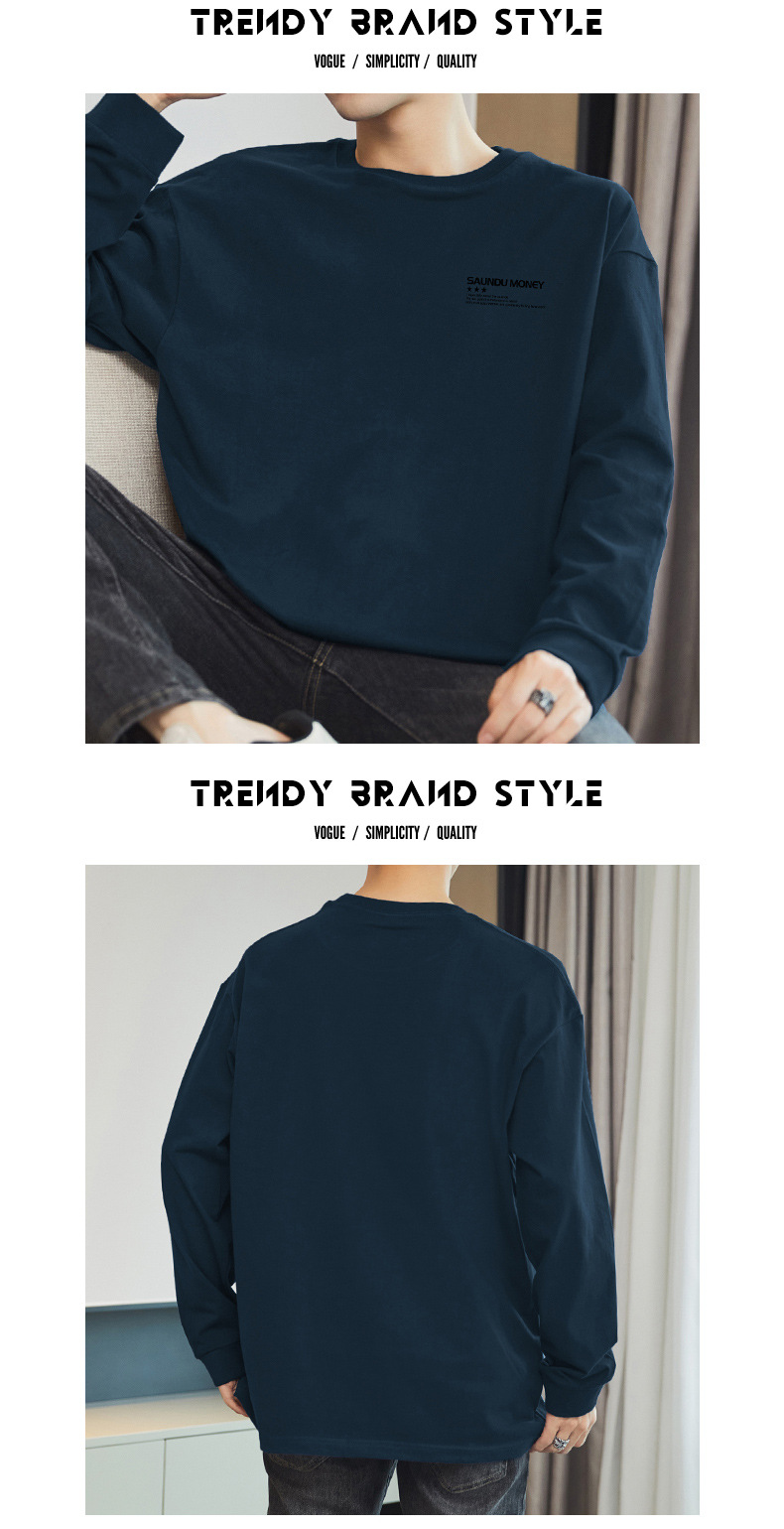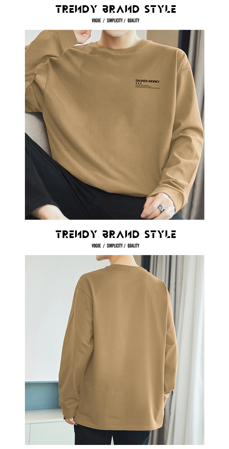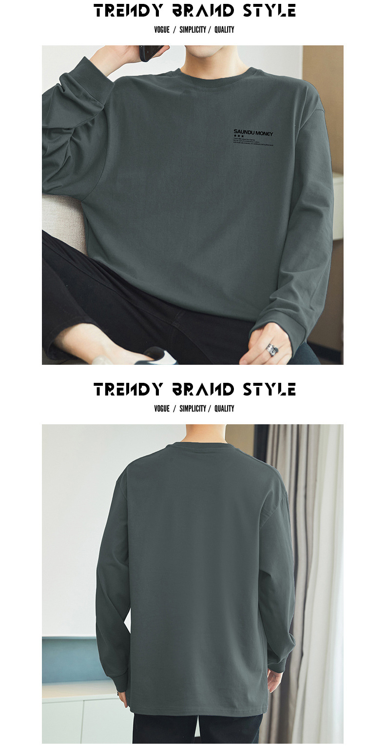 260g 미국 무거운 면 긴 소매 티셔츠 남성 패션 편지 프린트 최고 옷 크루 넥베이스 셔츠