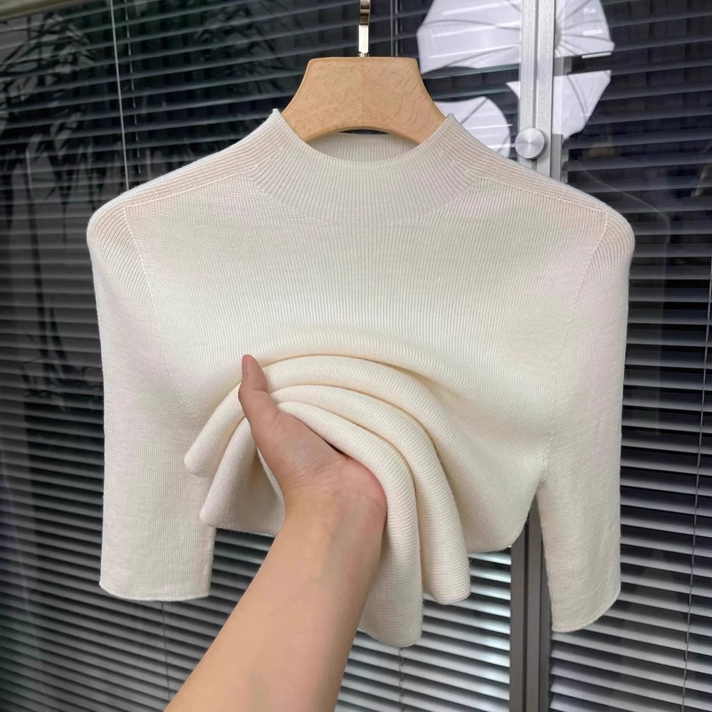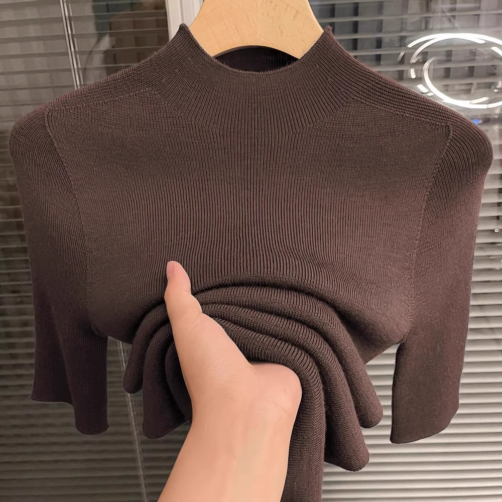 여성용 하프 터틀넥 미드 슬리브 스웨터, 가을 스타일 스웨터, 앙코레 버건디 베이스 레이어 탑