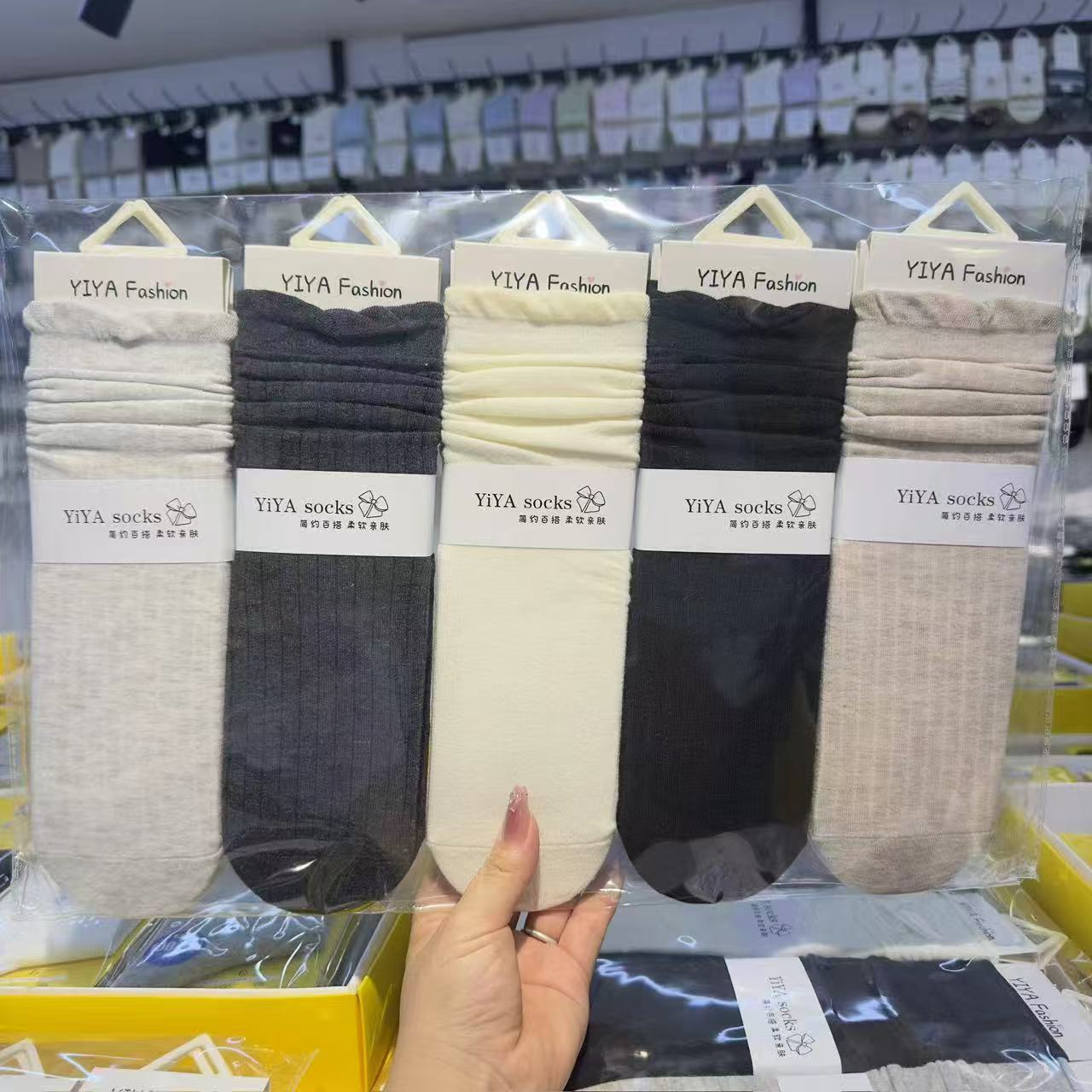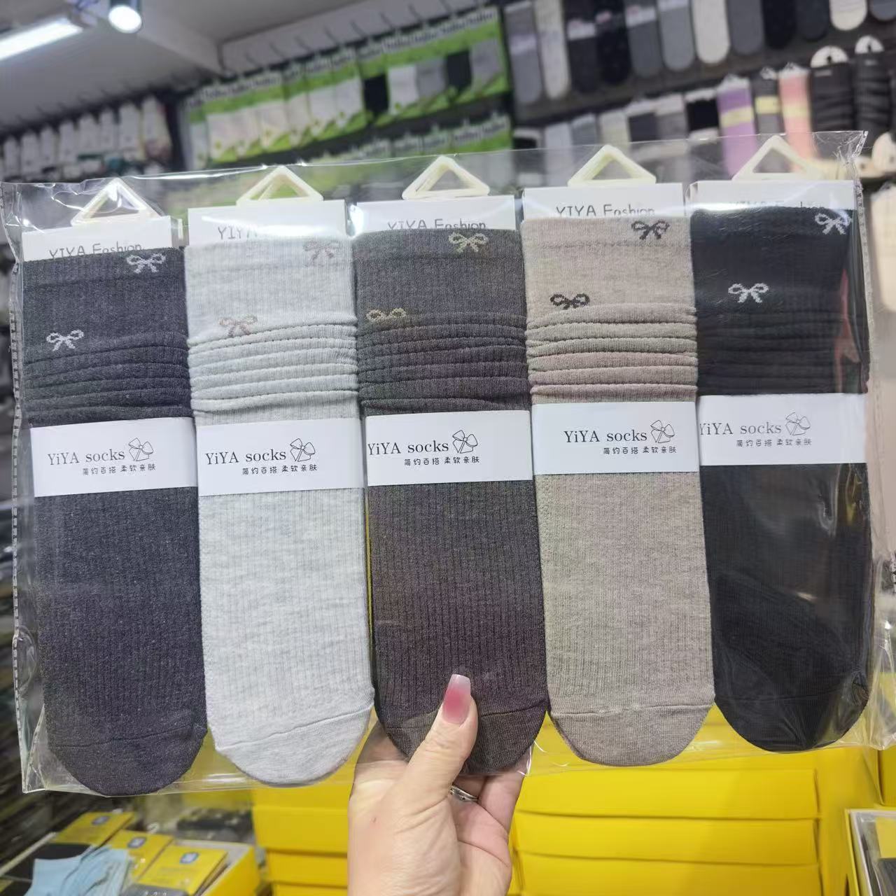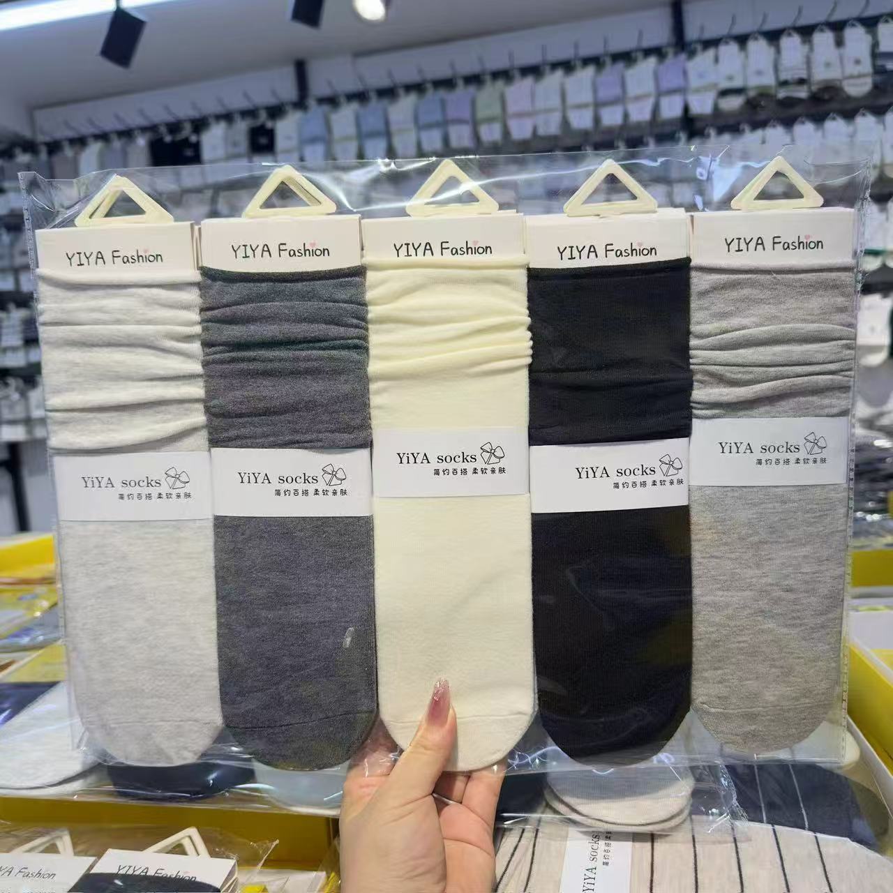Yiya 가을 겨울 여성용 롱 스택 양말, 그리즐리 스타일의 트렌디한 양말, 땀 흡수성, 통기성, 패셔너블하고 다용도 양말스토어 가기