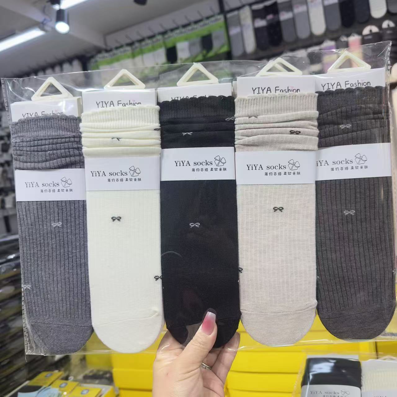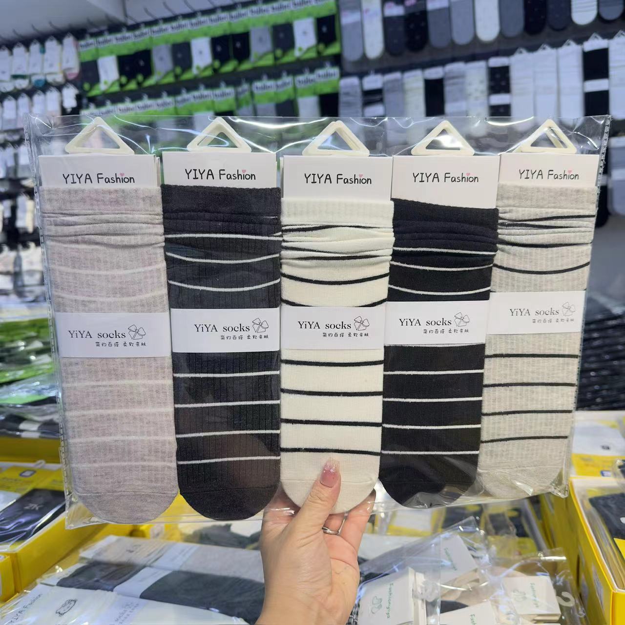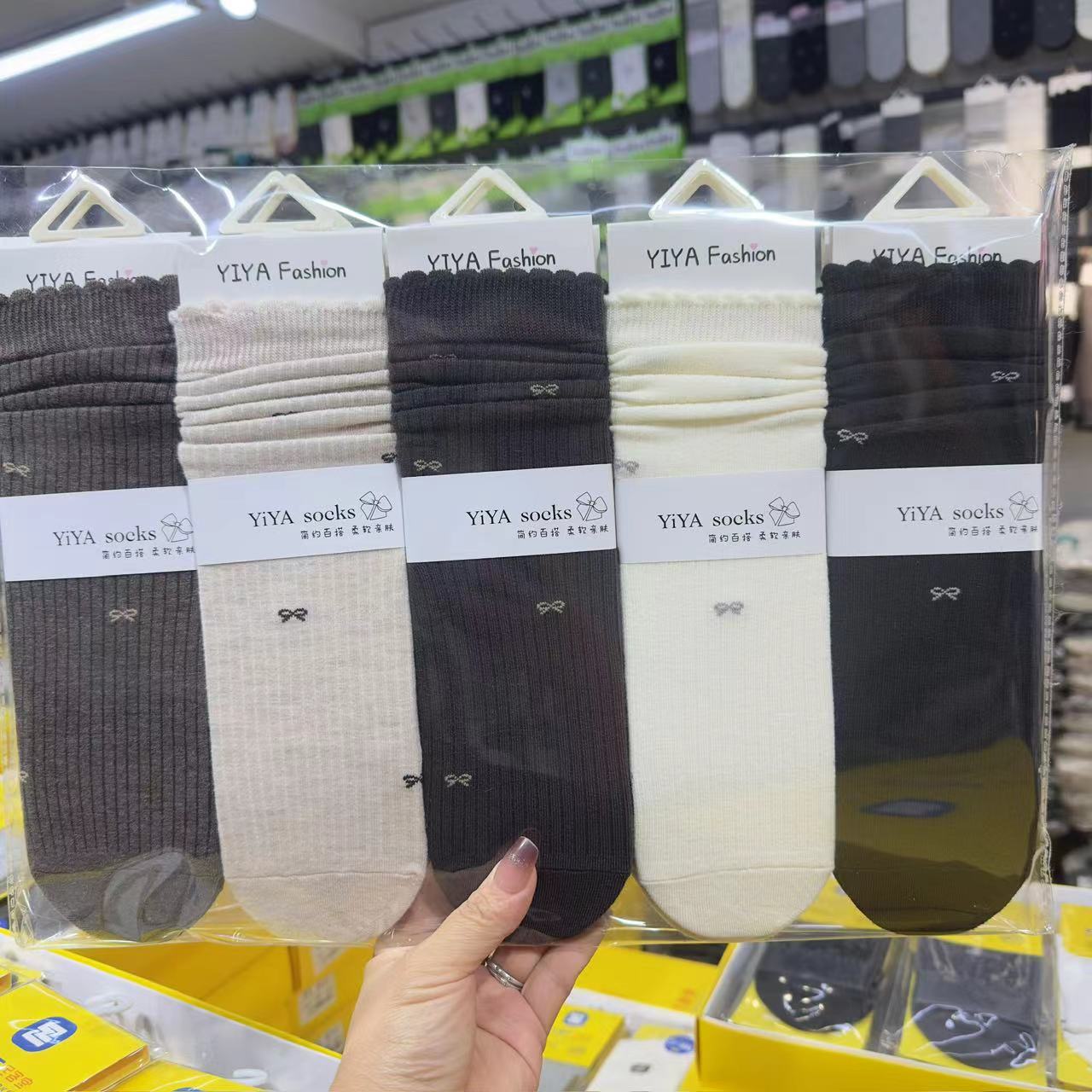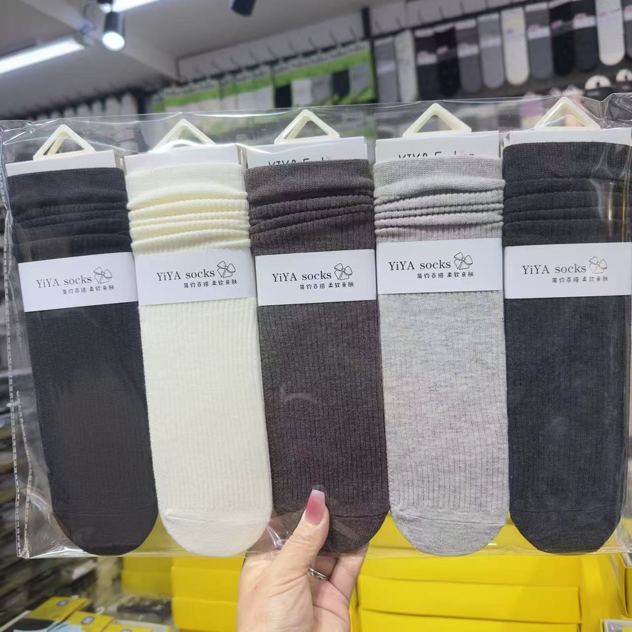 Yiya 가을 겨울 여성용 롱 스택 양말, 그리즐리 스타일의 트렌디한 양말, 땀 흡수성, 통기성, 패셔너블하고 다용도 양말스토어 가기