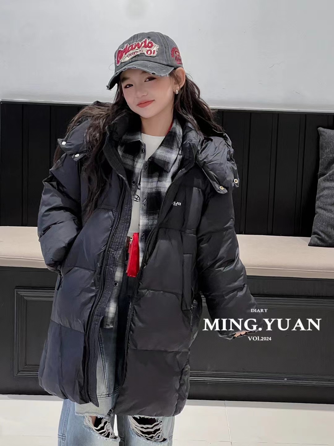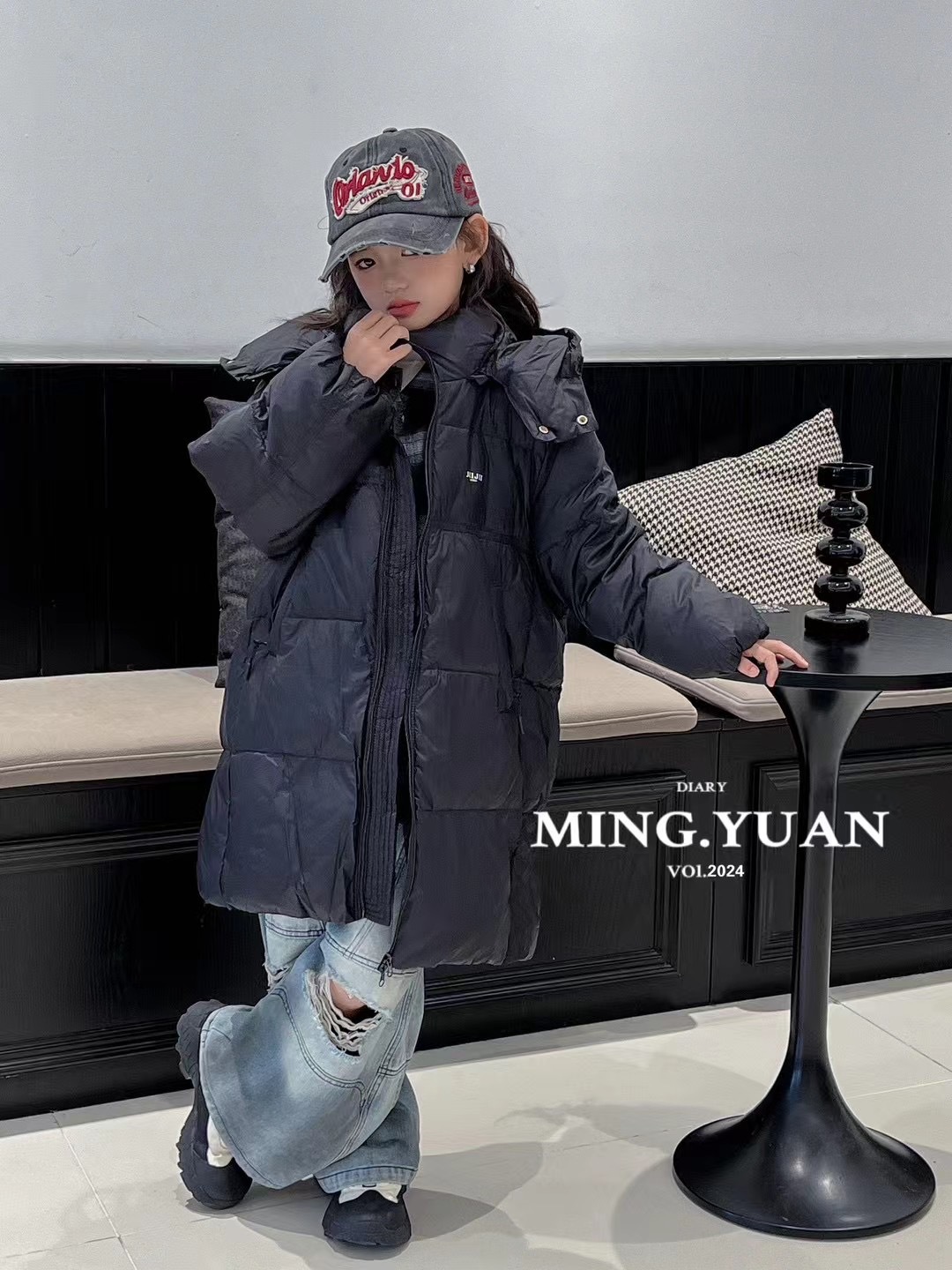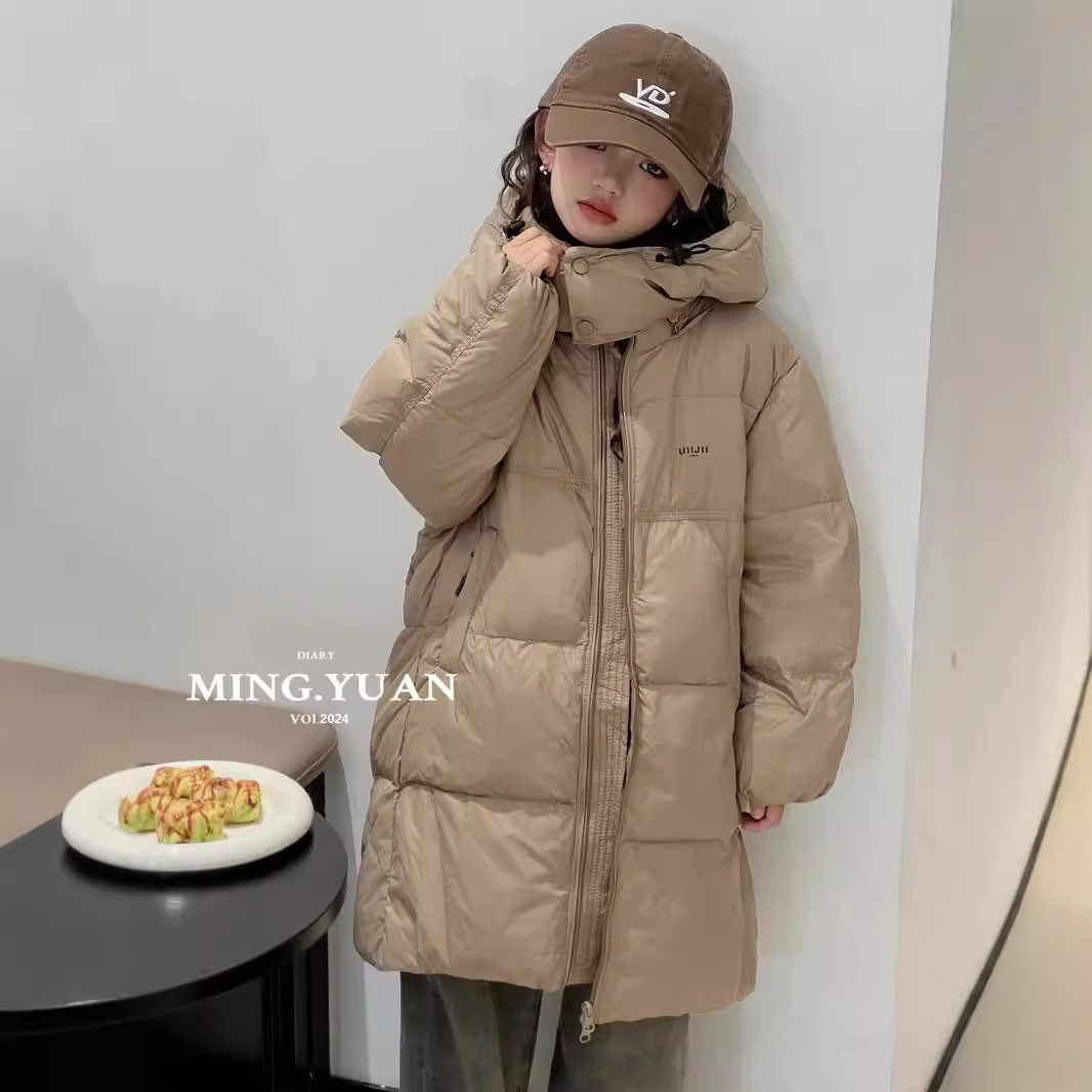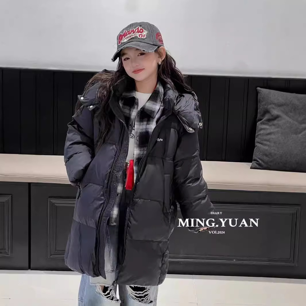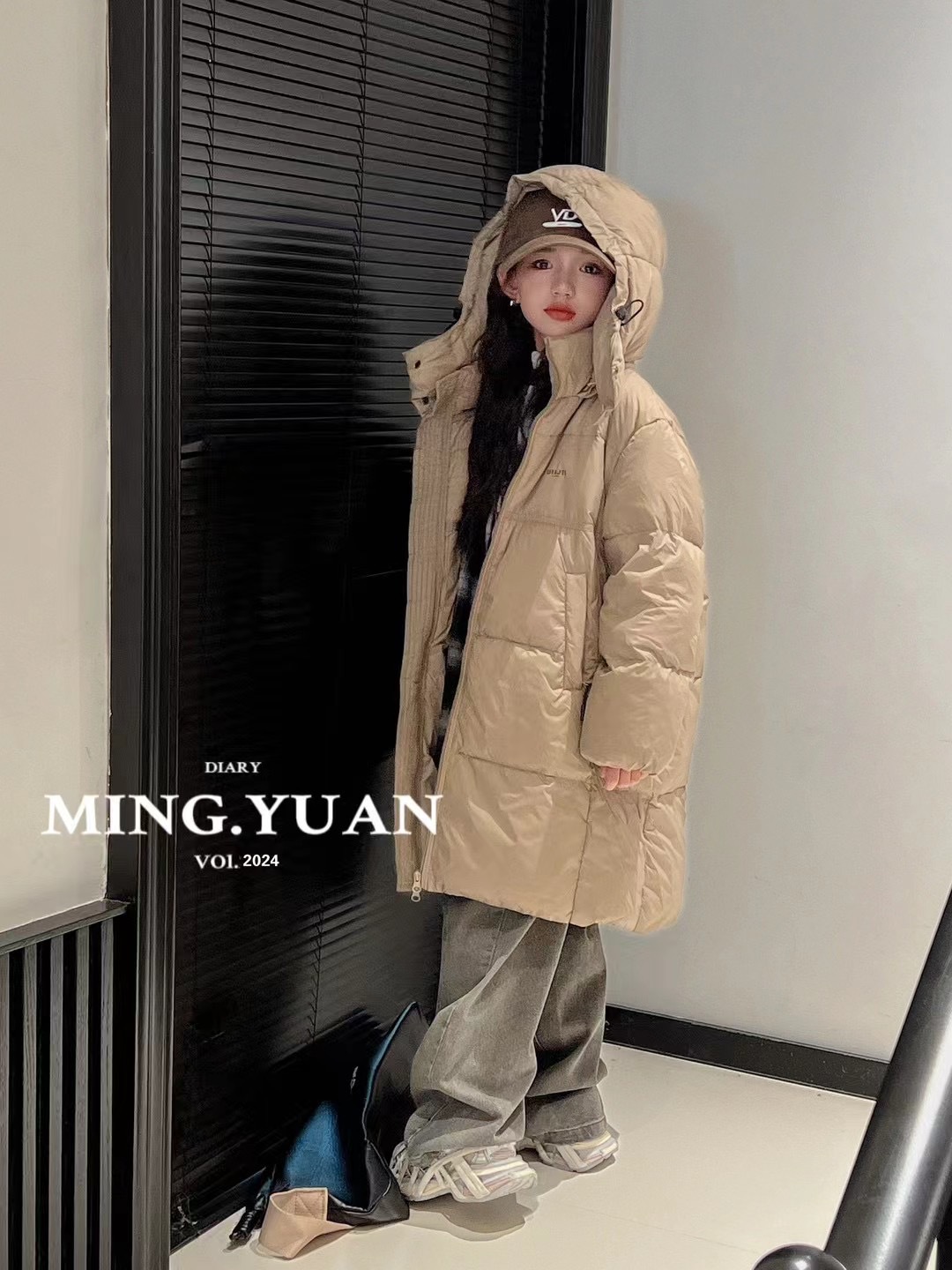 어린이 다운 재킷 소년 소녀 긴 2024 겨울 새로운 서양 스타일 아기 두꺼운 후드 화이트 덕 다운 재킷스토어 가기