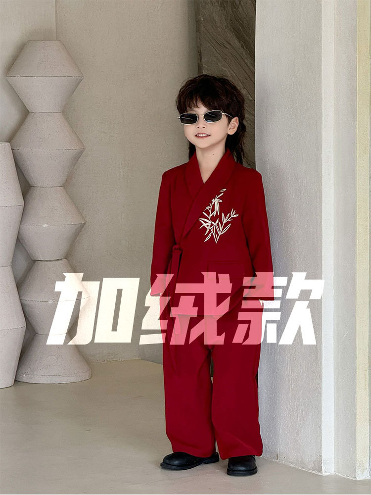 아동 정장 세트 2025 봄 가을 신상 어린이 정장 대나무 잎 자수 남아 예복 빨간색 한복스토어 가기