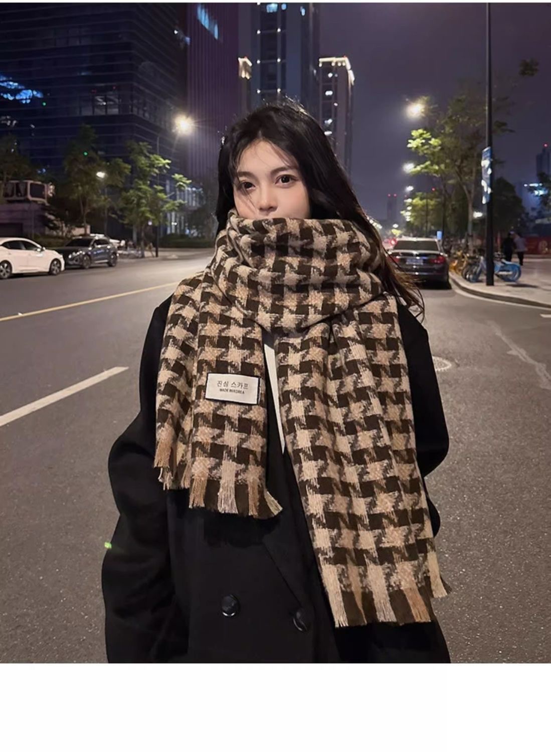 하운드 투스 페어 스카프 여자 겨울 새 한국식 캐시미어 올매치 틈새 트렌디 하이 엔드 롱 스카프 목도리