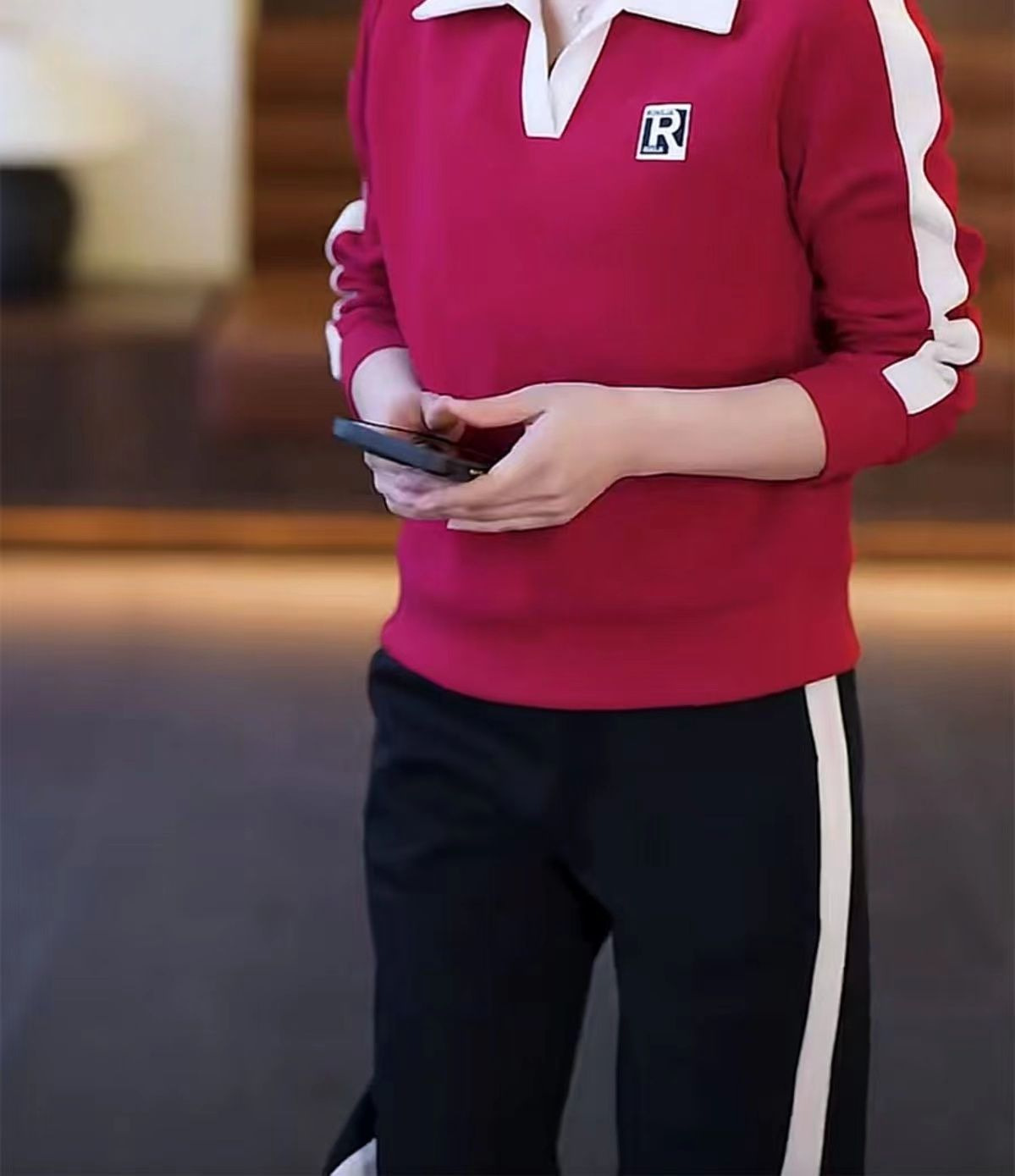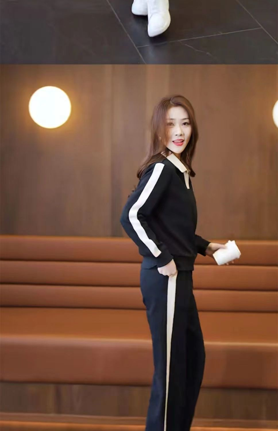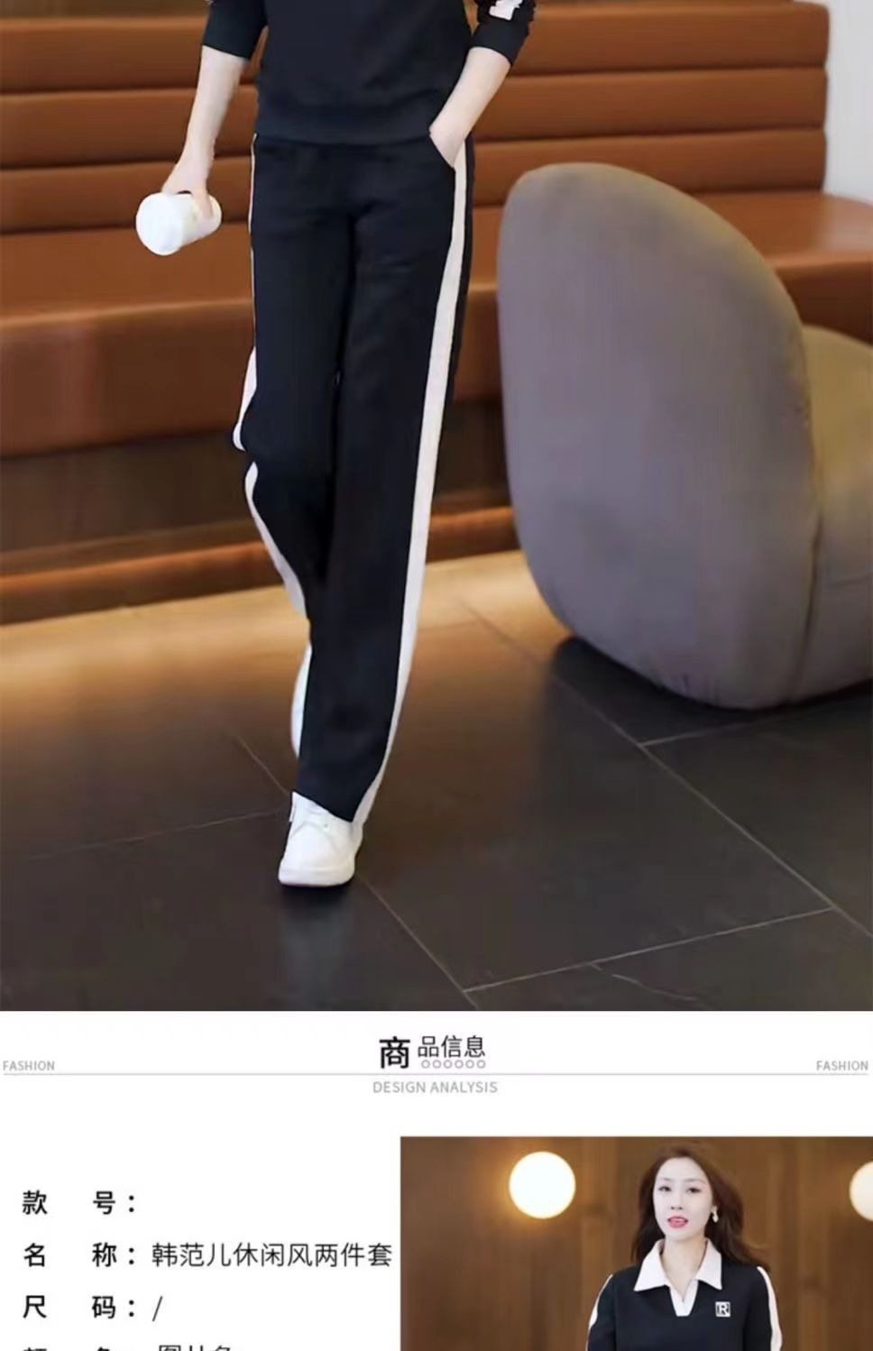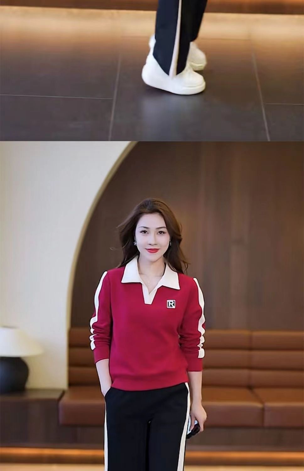 캐주얼 스포츠 세트 여성 2024 봄과 가을 새로운 슬리밍 웨스턴 스타일 간단한 옷깃 스웨트 셔츠 투피스 세트스토어 가기