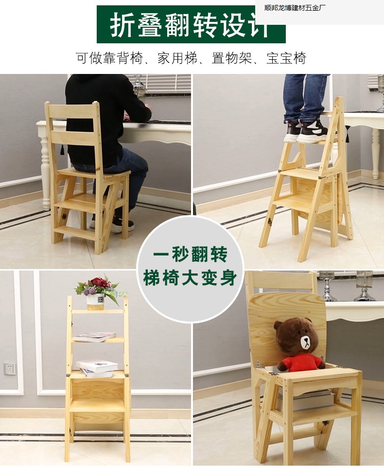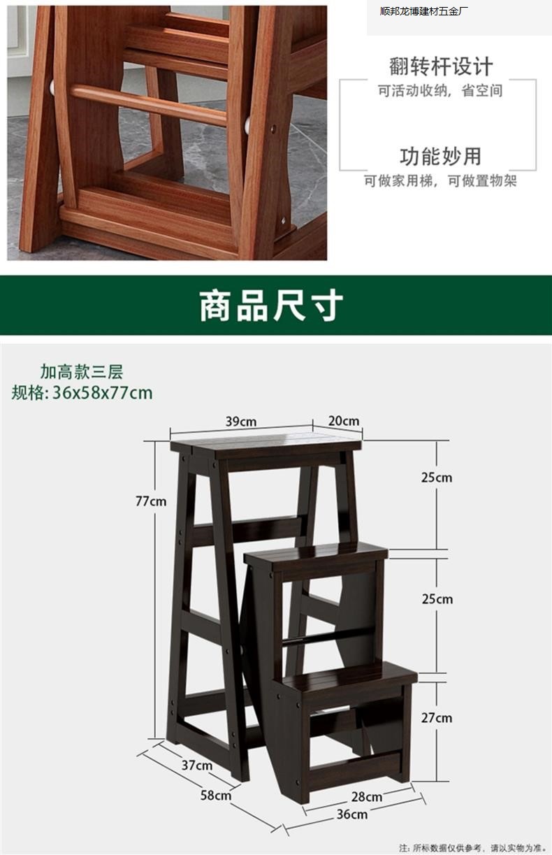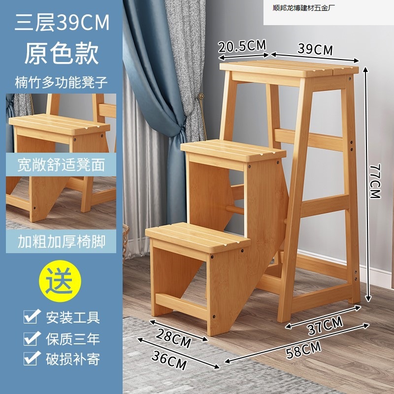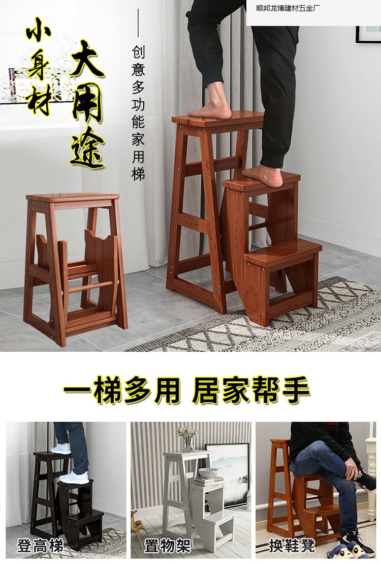 가정용 접이식 솔리드 우드 다기능 사다리 의자 이중 목적 접이식 사다리 등반 의자 의자 2 단계 3.스토어 가기