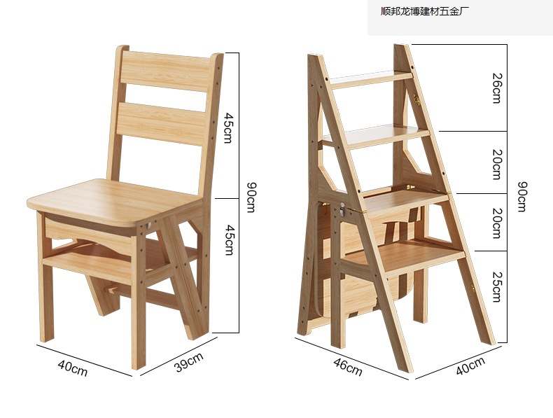 가정용 접이식 솔리드 우드 다기능 사다리 의자 이중 목적 접이식 사다리 등반 의자 의자 2 단계 3.