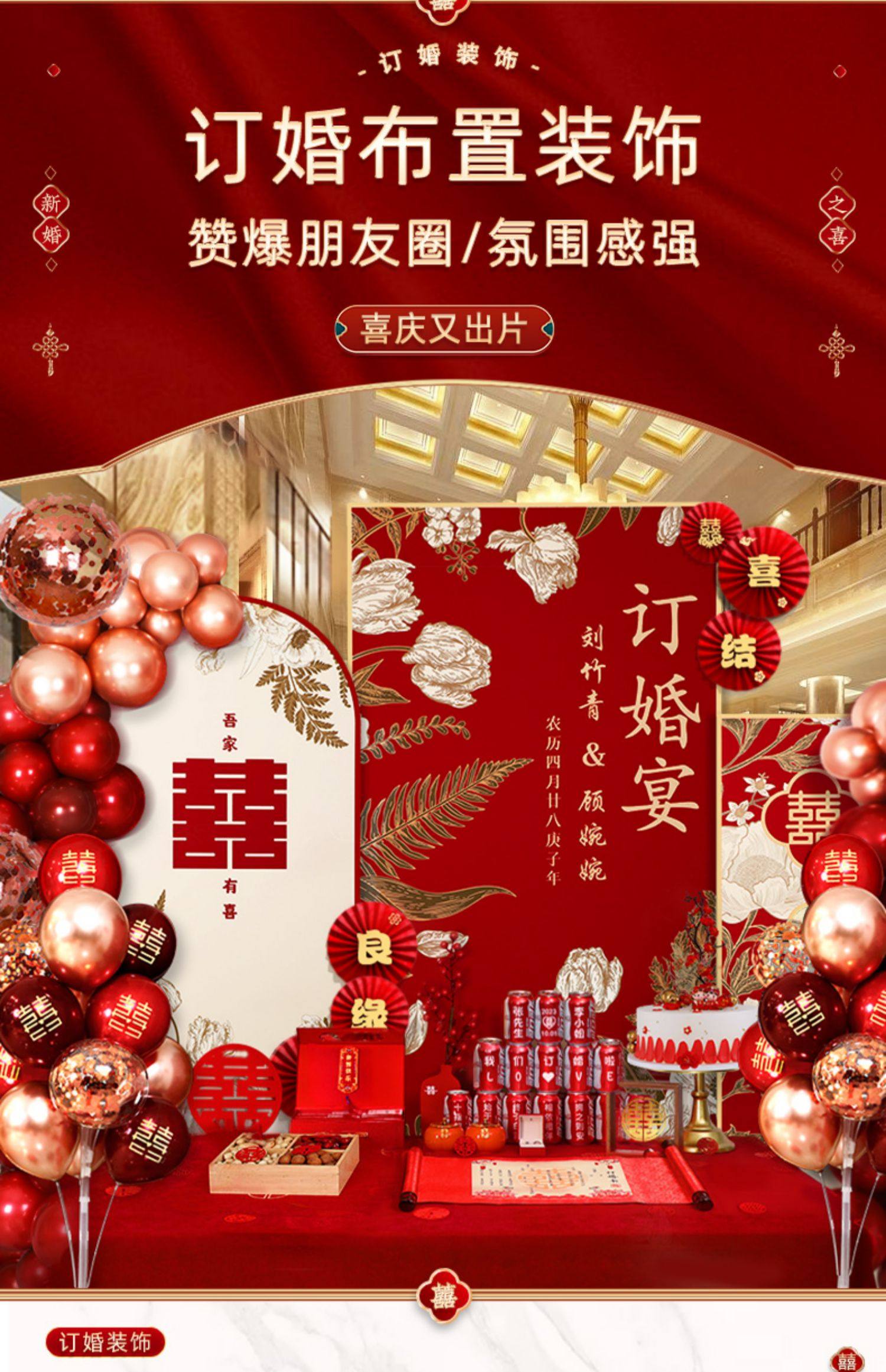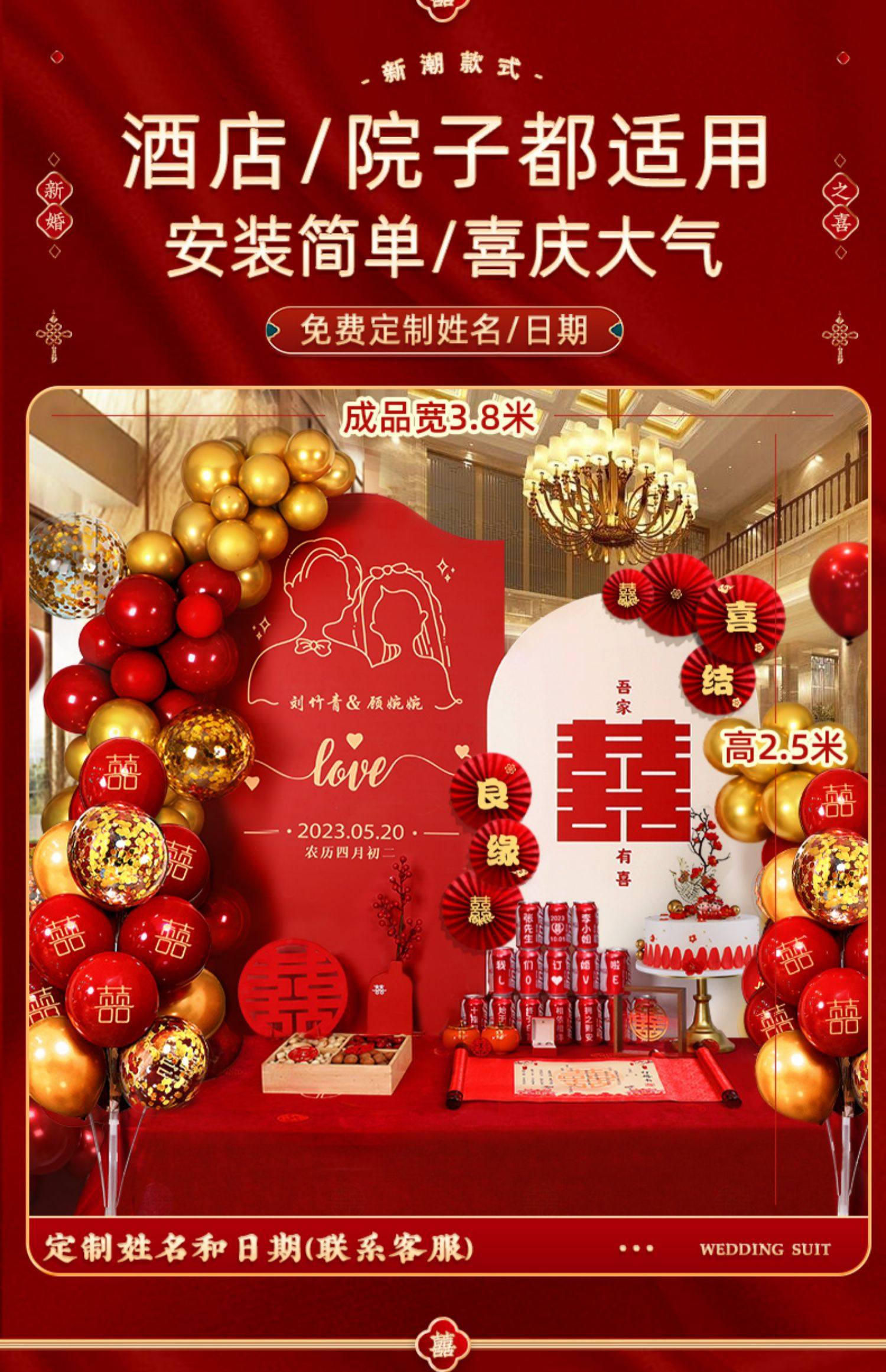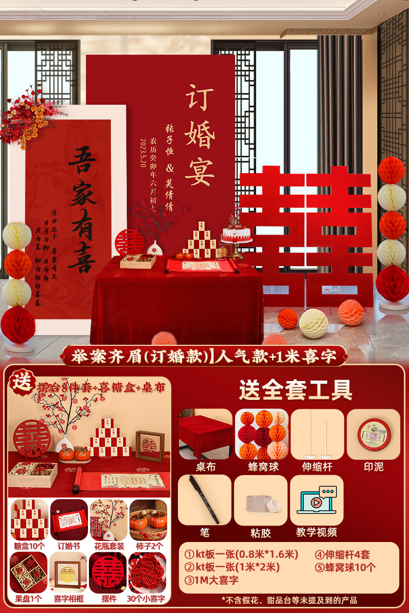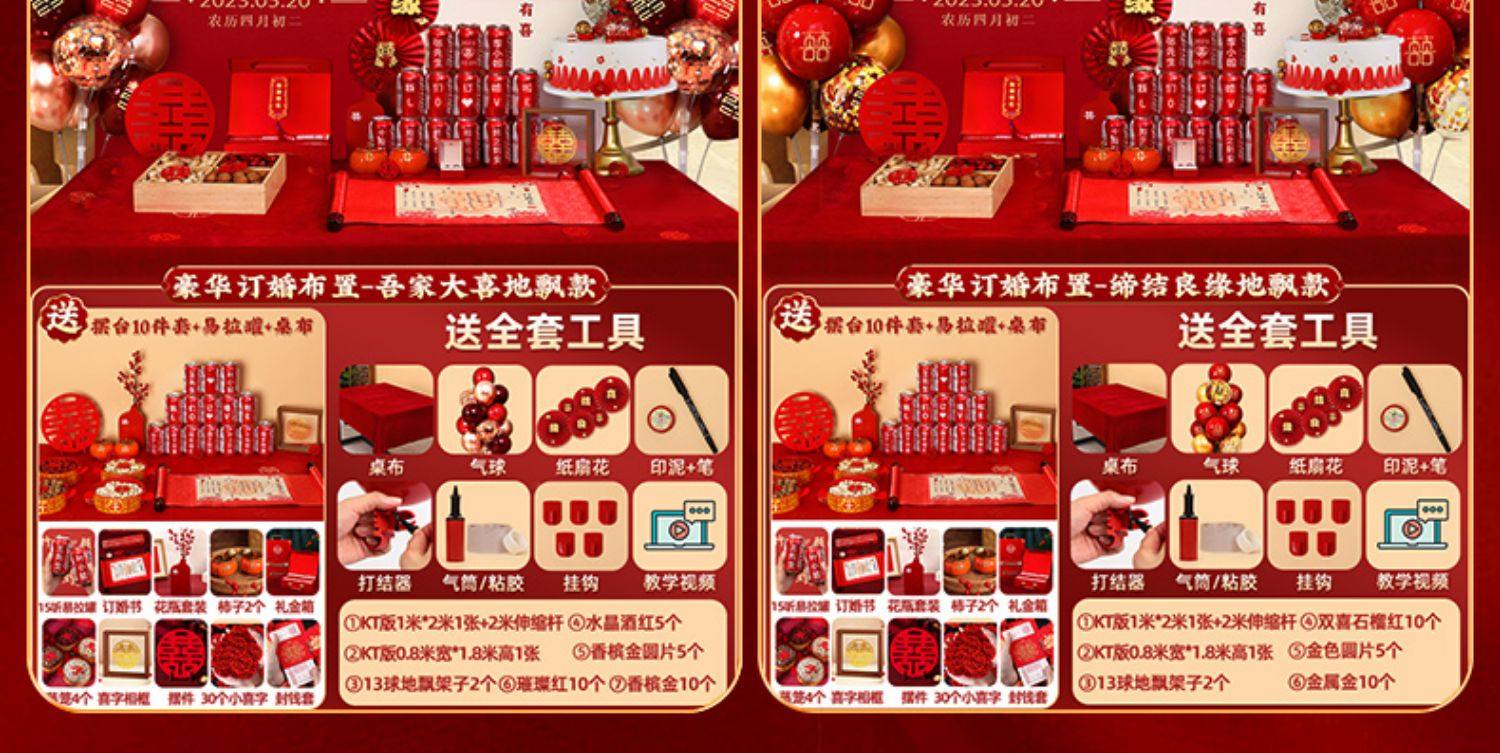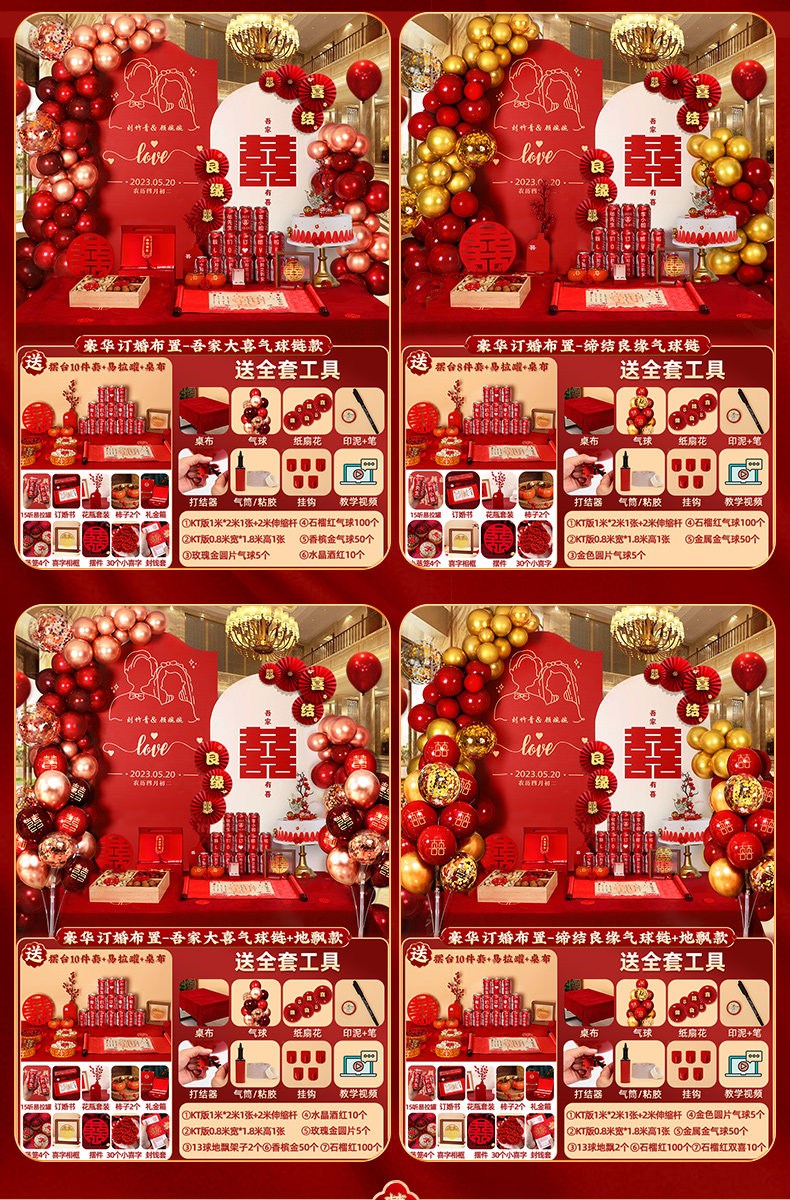 웨딩 연회 레이아웃 장식 전체 장면 그물 붉은 장식품 배경 벽 테이블 세트 패키지 kt 보드 용품스토어 가기