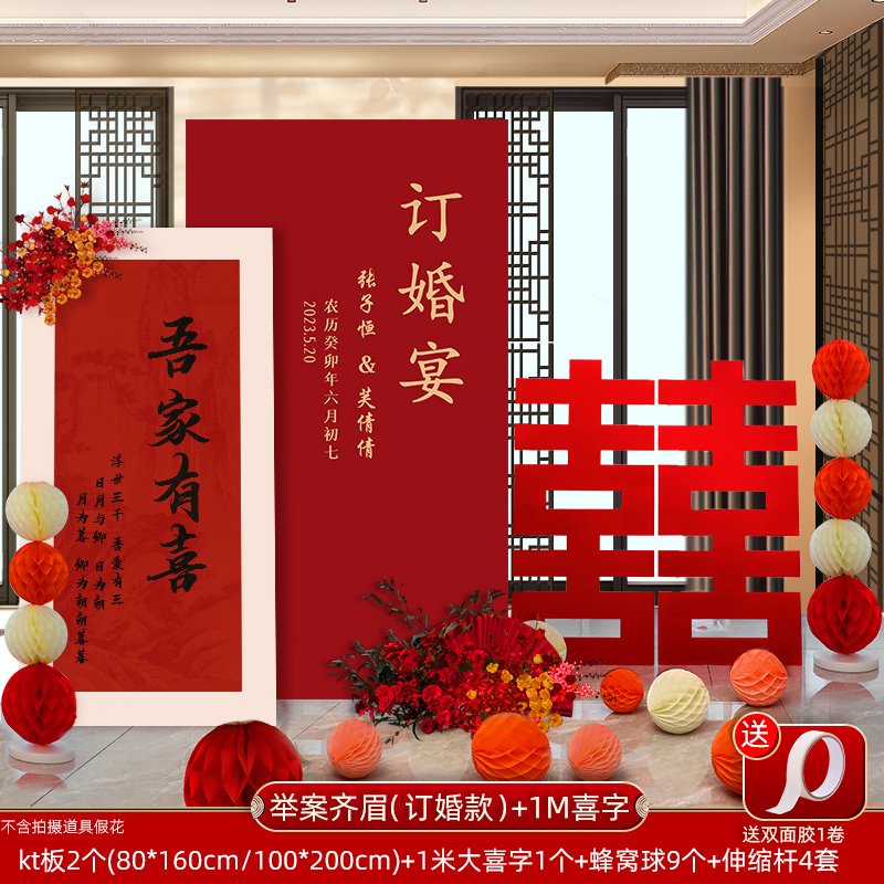 웨딩 연회 레이아웃 장식 전체 장면 그물 붉은 장식품 배경 벽 테이블 세트 패키지 kt 보드 용품