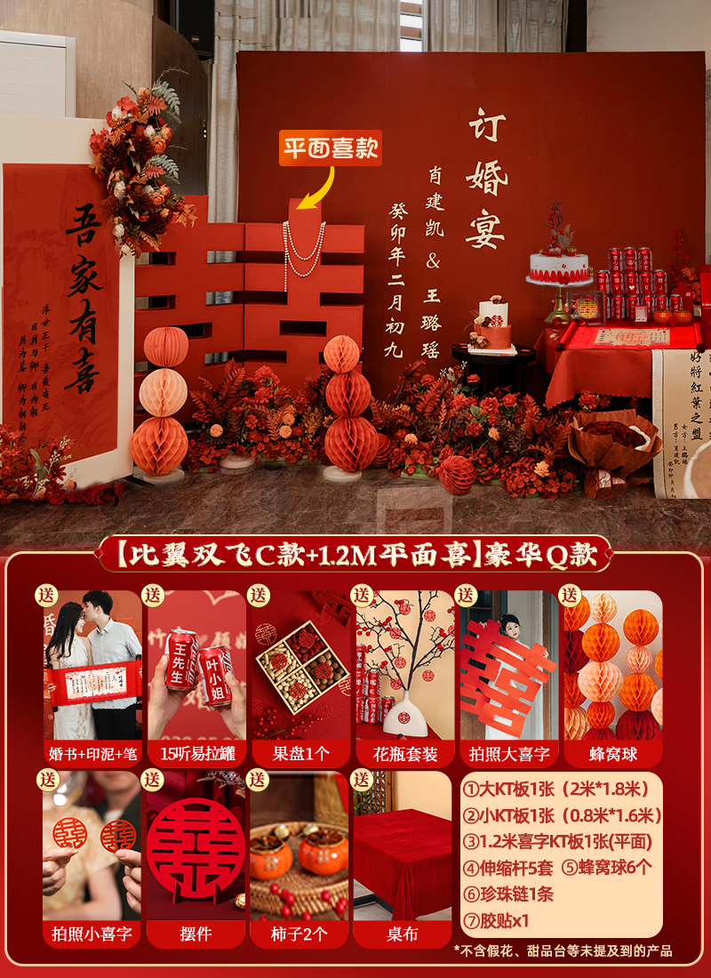 • [Biyi Shuangfei C 모델 + 1.2m 플랫 해피] 럭셔리 Q 모델❤무료 콜라/약혼/말린 과일 상자/꽃병 장식품/식탁보 등 10종 세트
