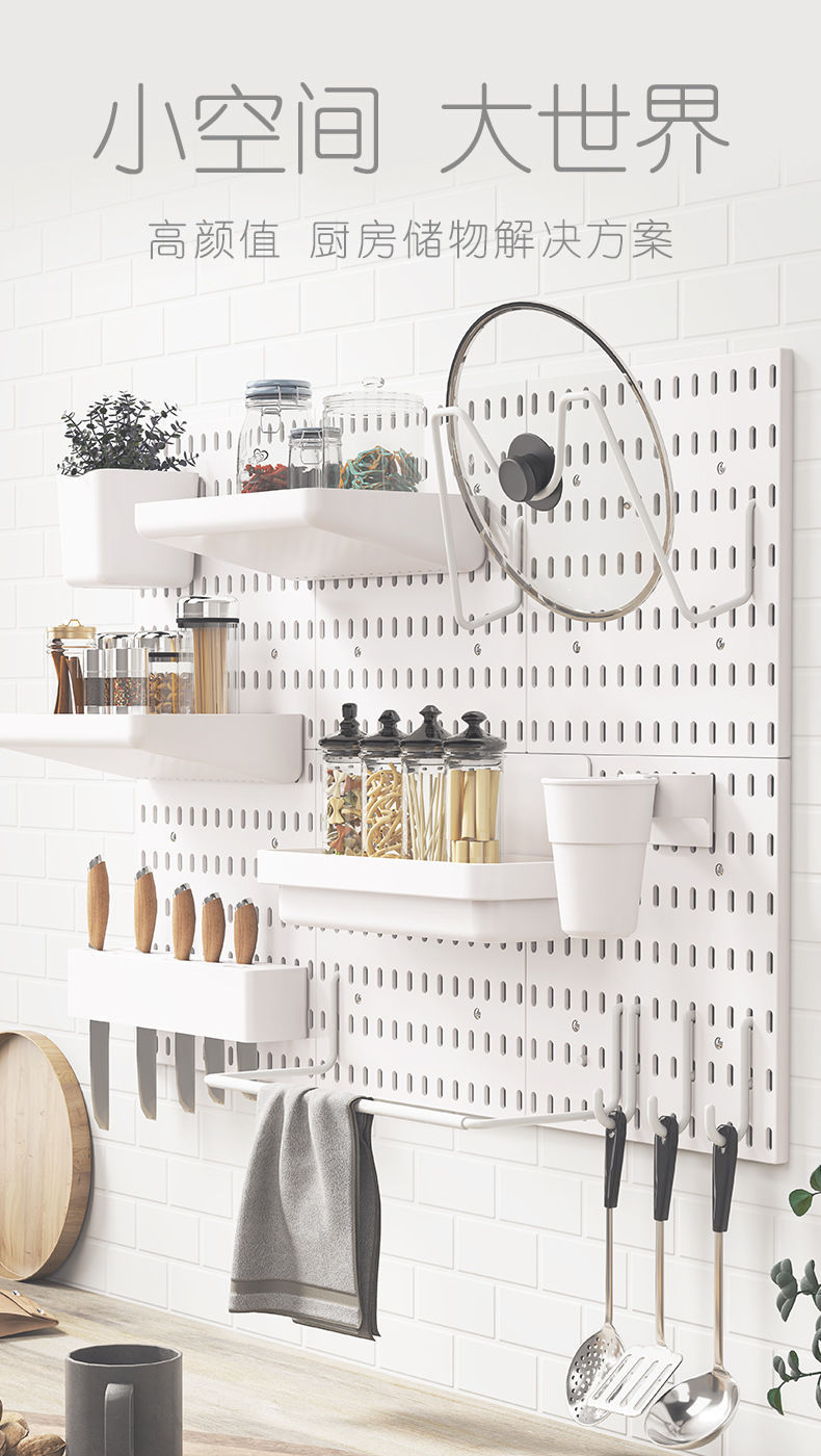 펀치 프리 홀 보드 벽 조합 DIY Yijia 홀 보드 액세서리 평면 주방 보관 랙 소형 네일 보드스토어 가기