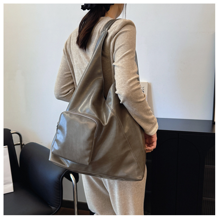 가을 2024 새로운 마일 라드 스타일 토트 백 어깨 언더암 가방 유행 대용량 오일 왁스 가죽 핸드백