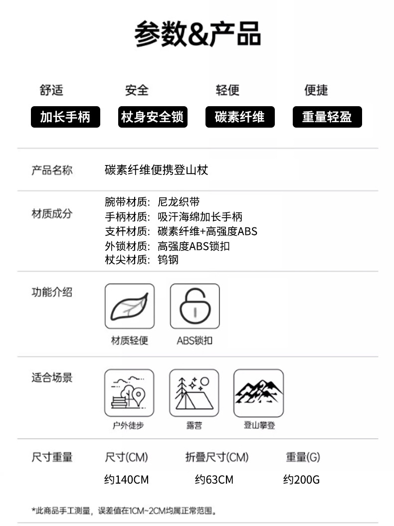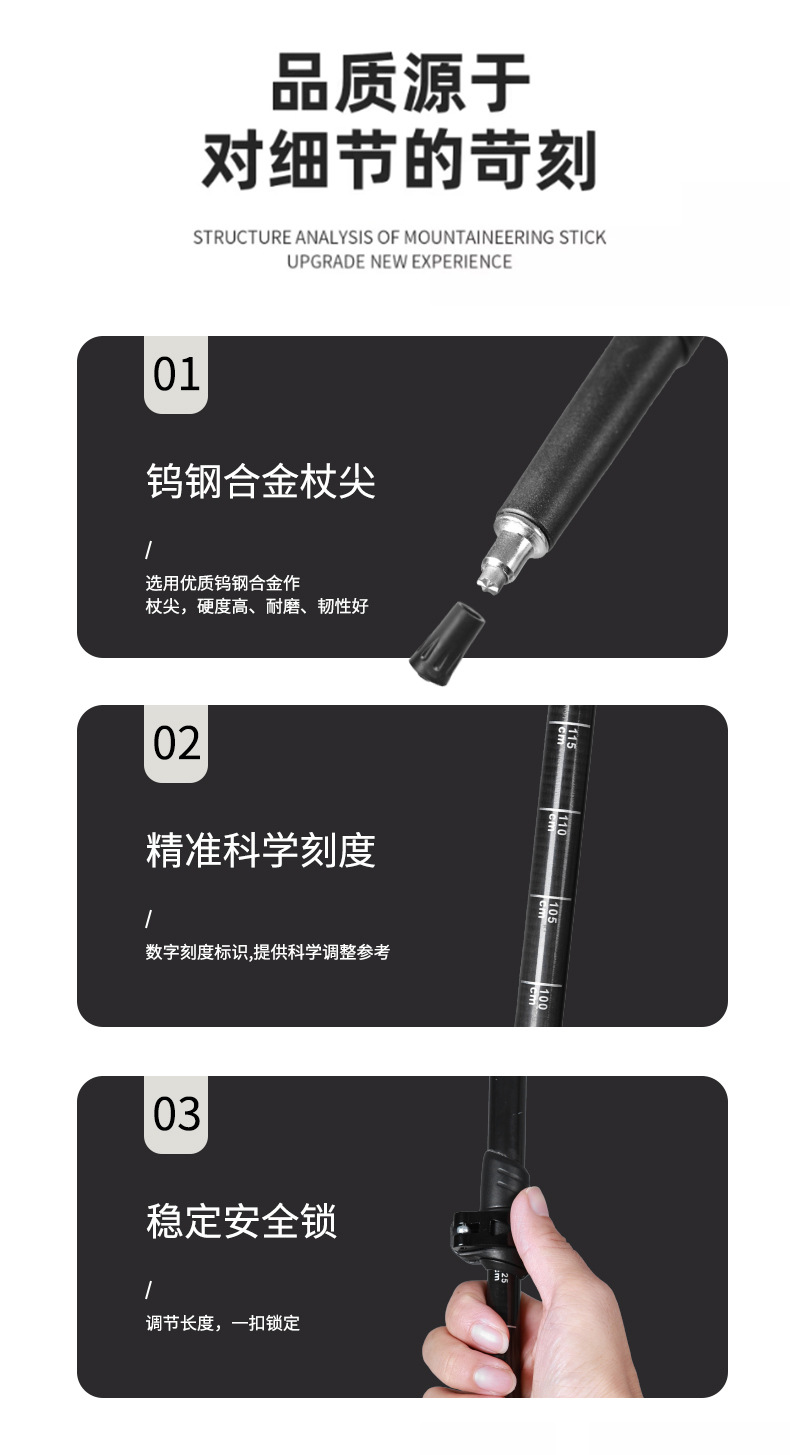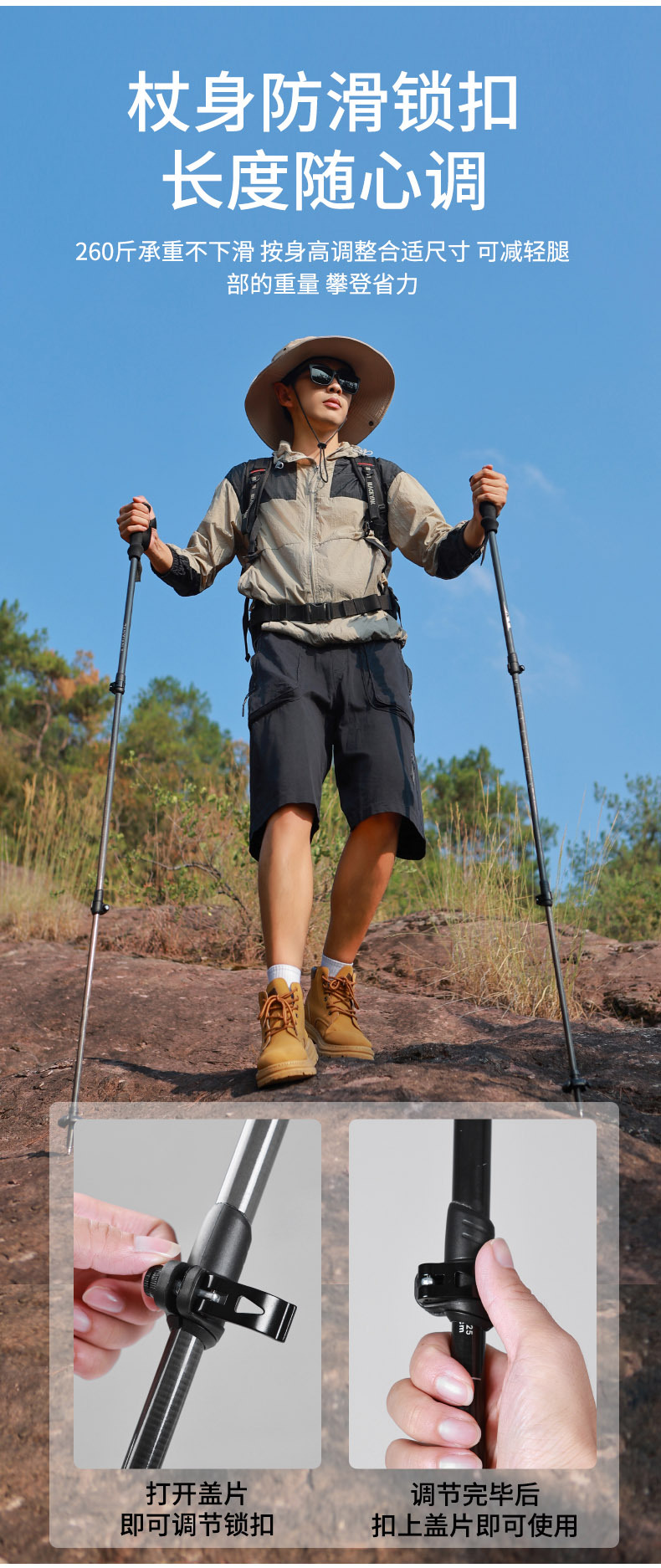 탐험가 야외 등반 직원 탄소 개폐식 워킹 스틱 워킹 스틱 전문 등반 장비 탄소 섬유 하이킹 워킹 스틱
