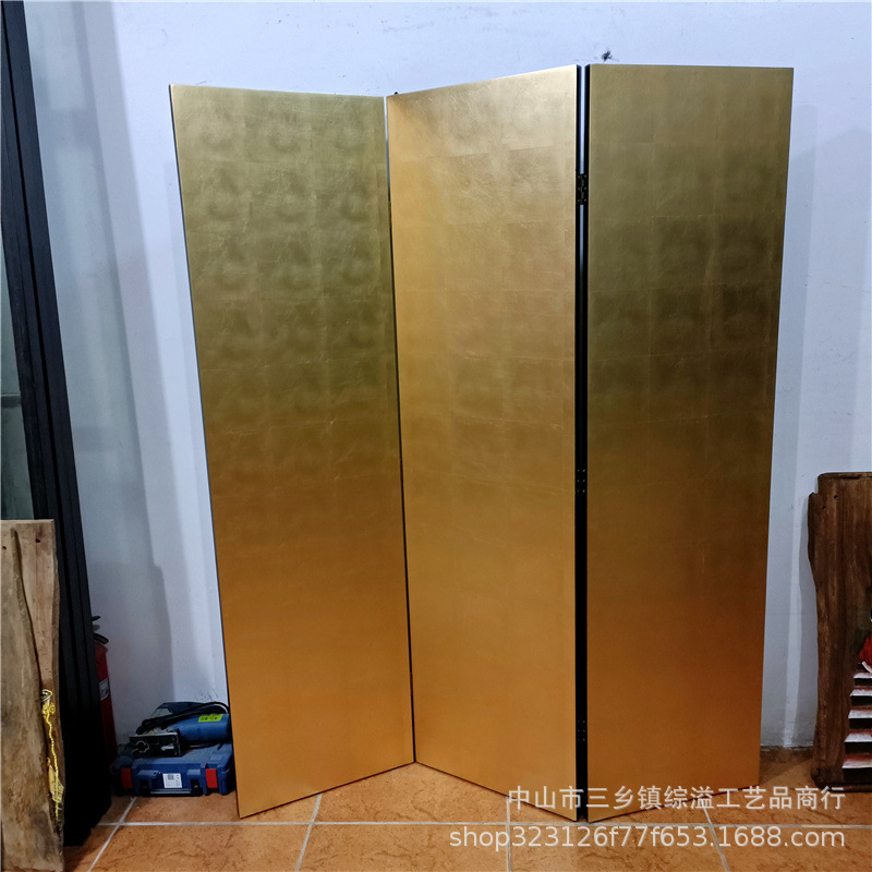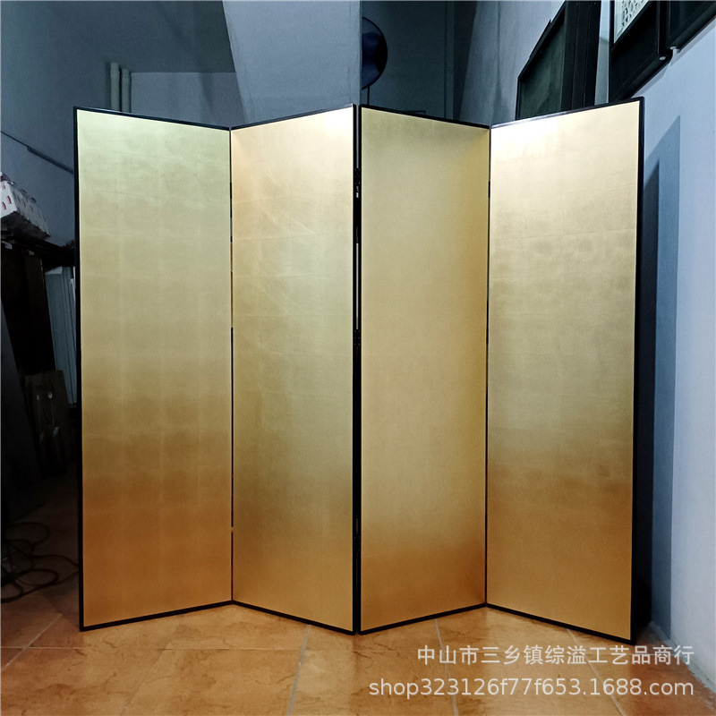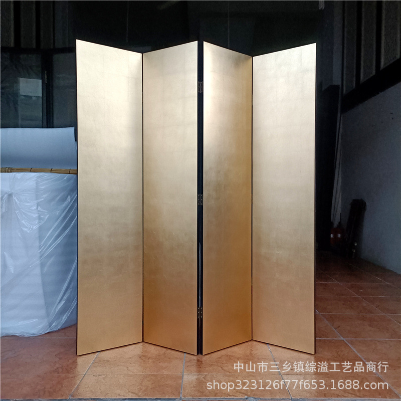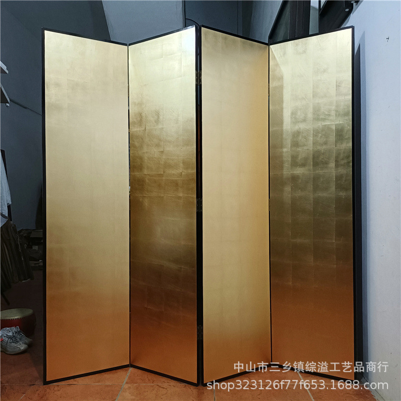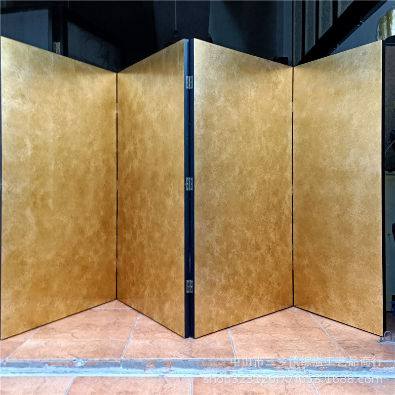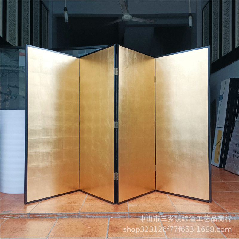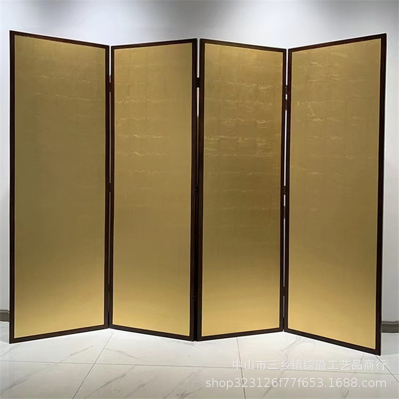 그물 금박 스크린 빈 접이식 스크린 일반 금박 복고풍 거실 다실 호텔 간단한 단단한 나무 칸막이 배경 벽