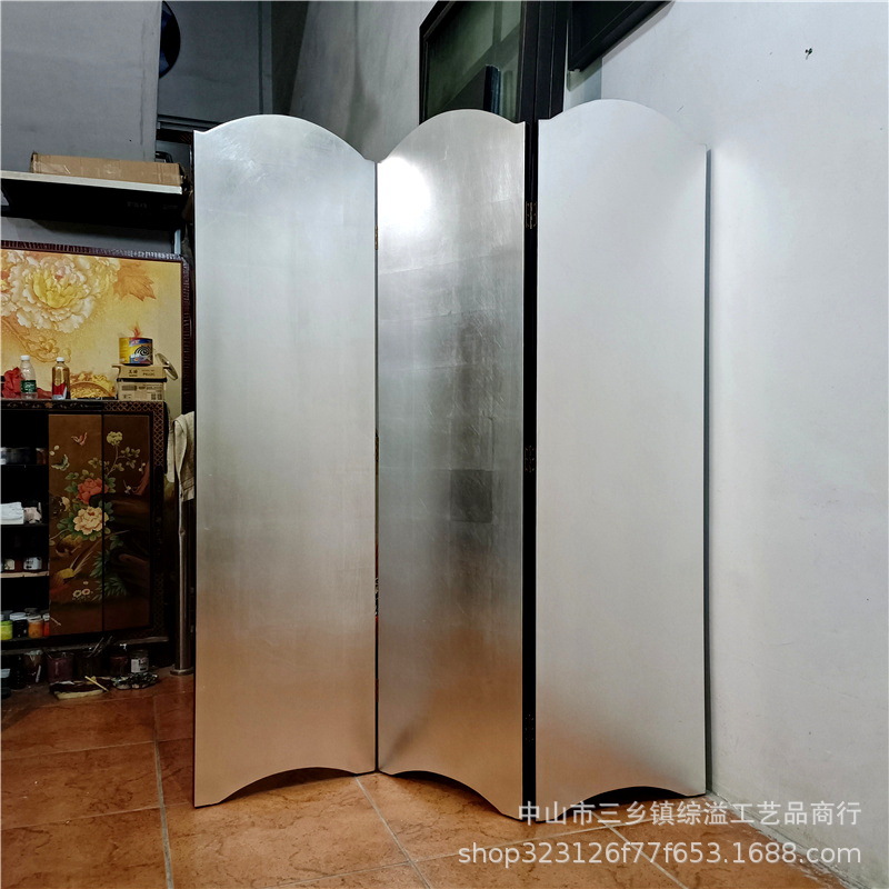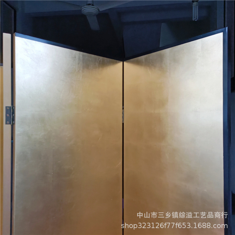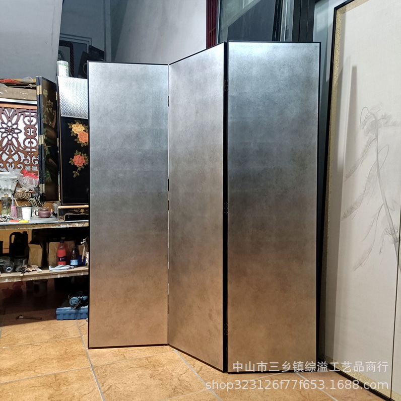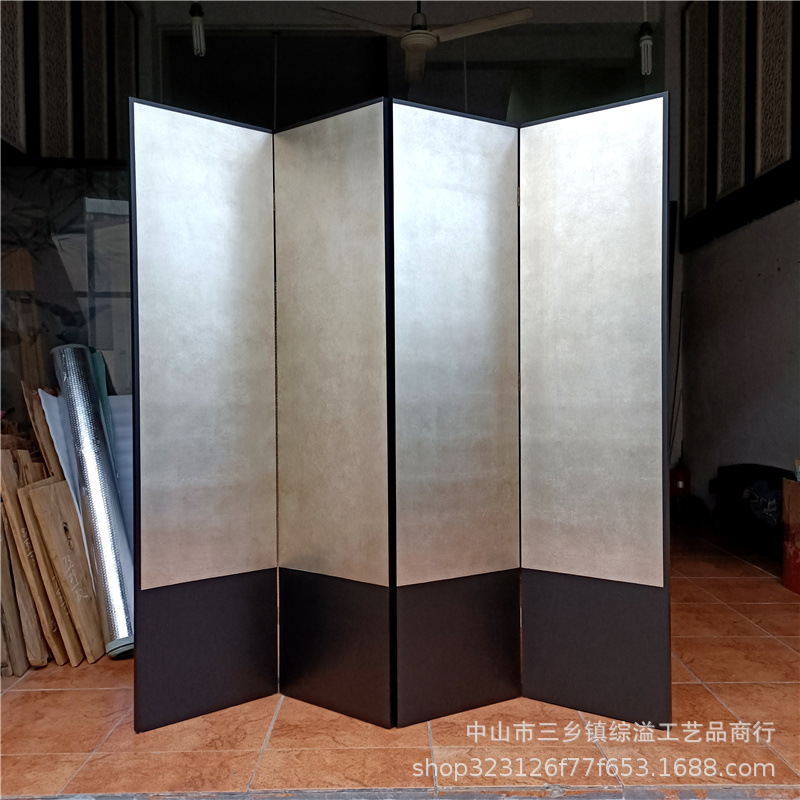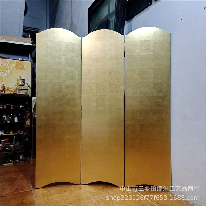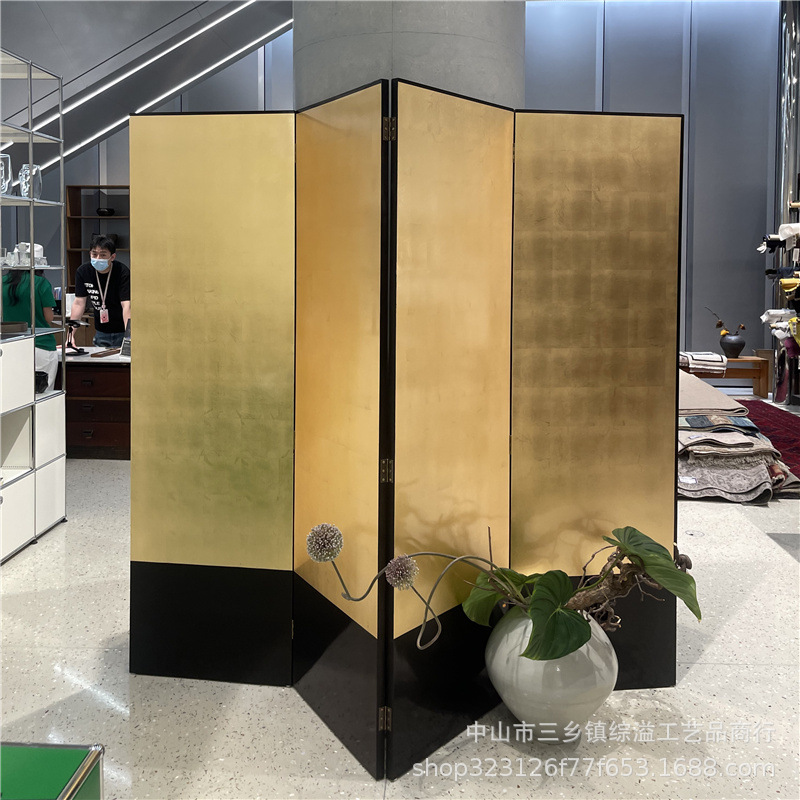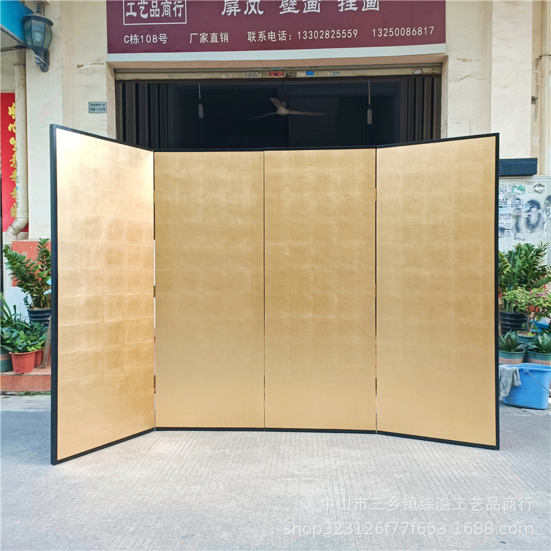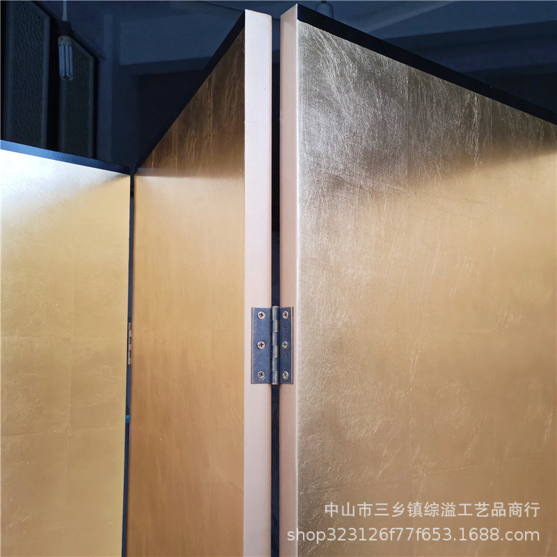 그물 금박 스크린 빈 접이식 스크린 일반 금박 복고풍 거실 다실 호텔 간단한 단단한 나무 칸막이 배경 벽