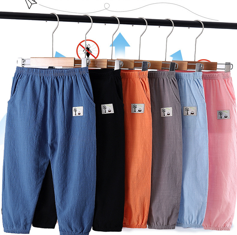어린이 바지 봄과 여름 얇은 어린이 느슨한 레저 스포츠 모기 방지 바지 어린이 포켓 외부 착용 긴 바지 도매
