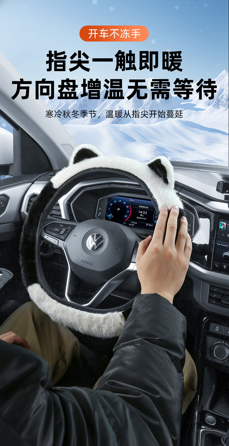 고양이 귀 모양 귀여운 짧은 털 자동차 핸들 커버 겨울 보온 히팅 자동차 핸들 커버 용품스토어 가기
