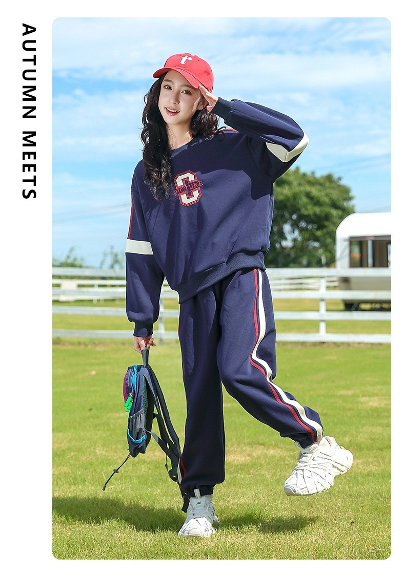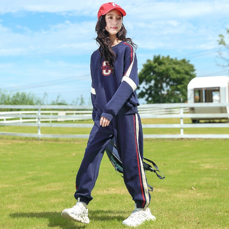 가을과 겨울 어린이 패션 유행 편지 느슨한 캐주얼 스포츠 세트 소년 소녀를위한 2 피스 땀 바지스토어 가기
