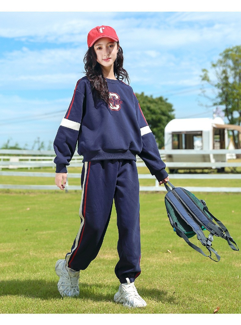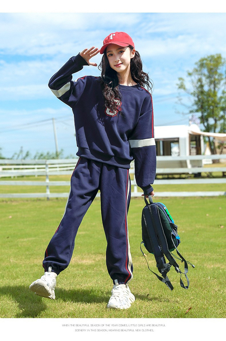 가을과 겨울 어린이 패션 유행 편지 느슨한 캐주얼 스포츠 세트 소년 소녀를위한 2 피스 땀 바지