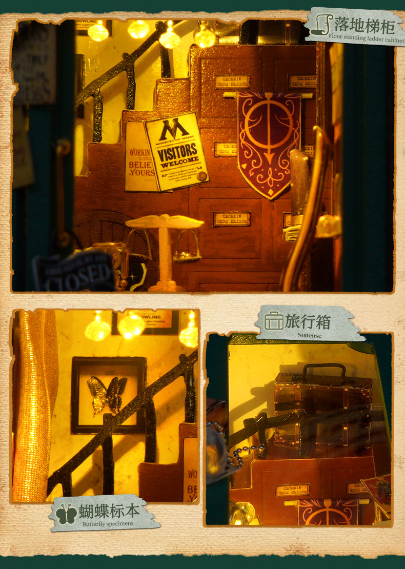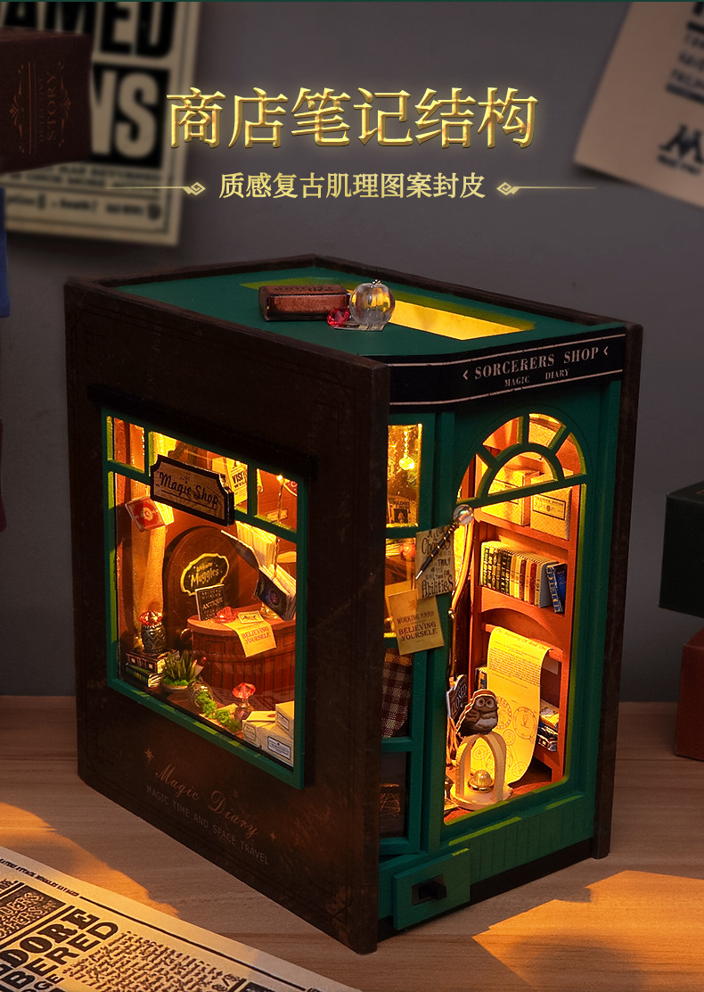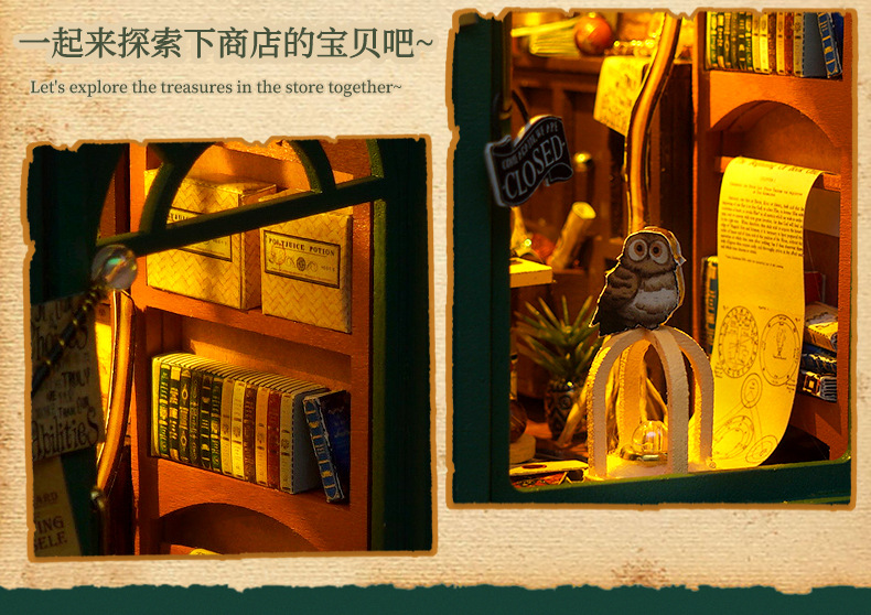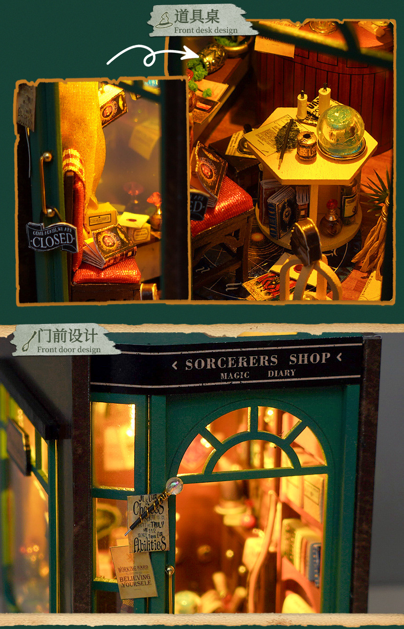 小屋的材质如同真实的房子,例如柜子由木头做成,窗帘布头做成,书本由纸头做成!