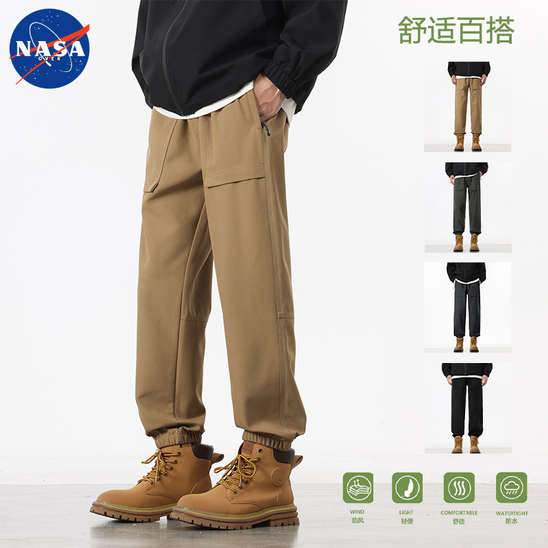NASA 브랜드 남성용 가을 겨울 방수 플리스 안감 보온 캐주얼 등산 스포츠 바지 방풍 방수