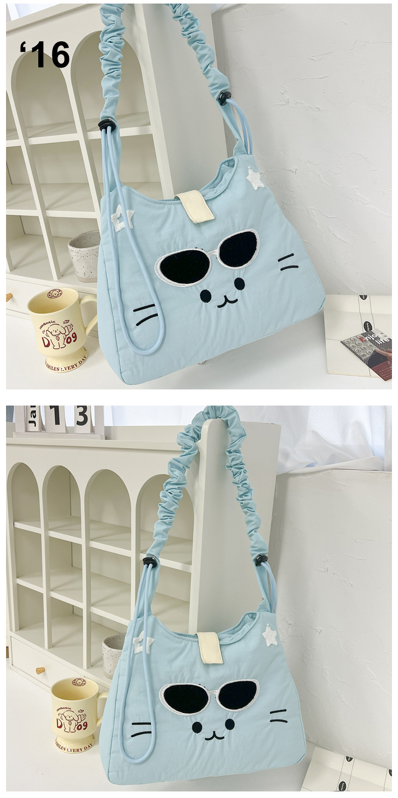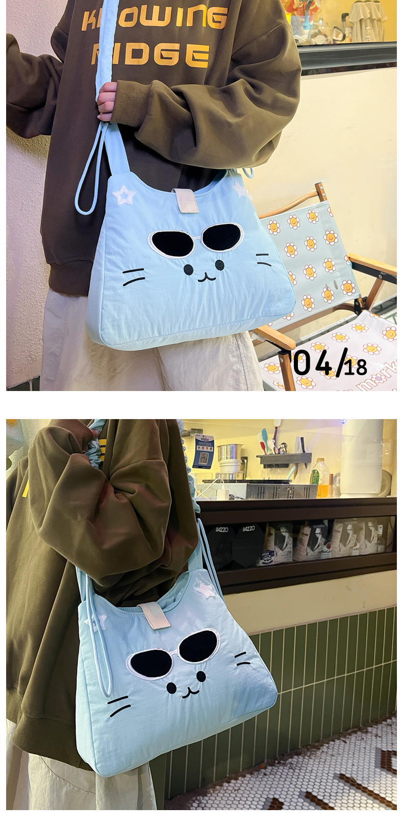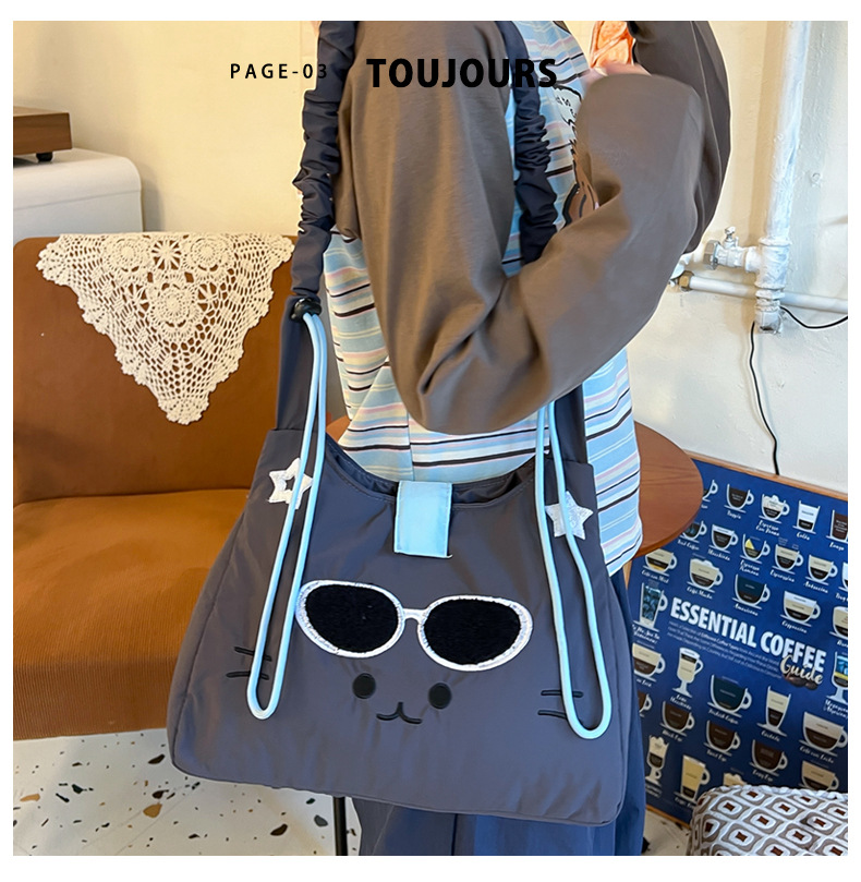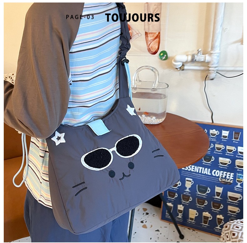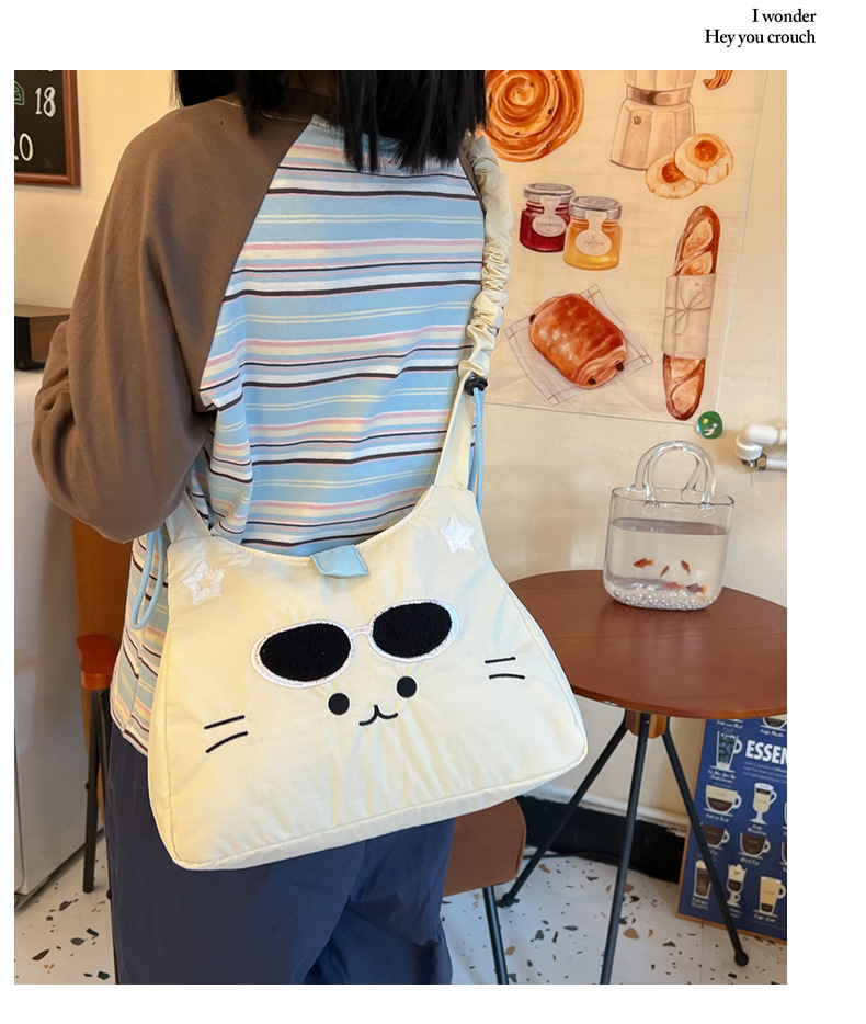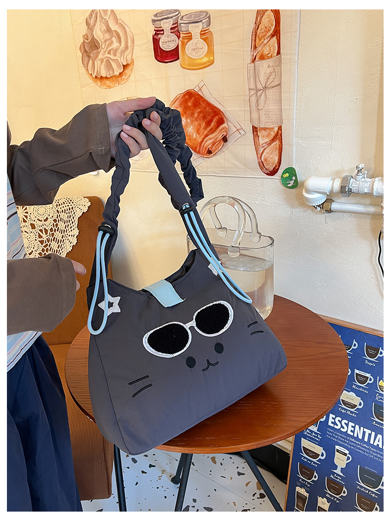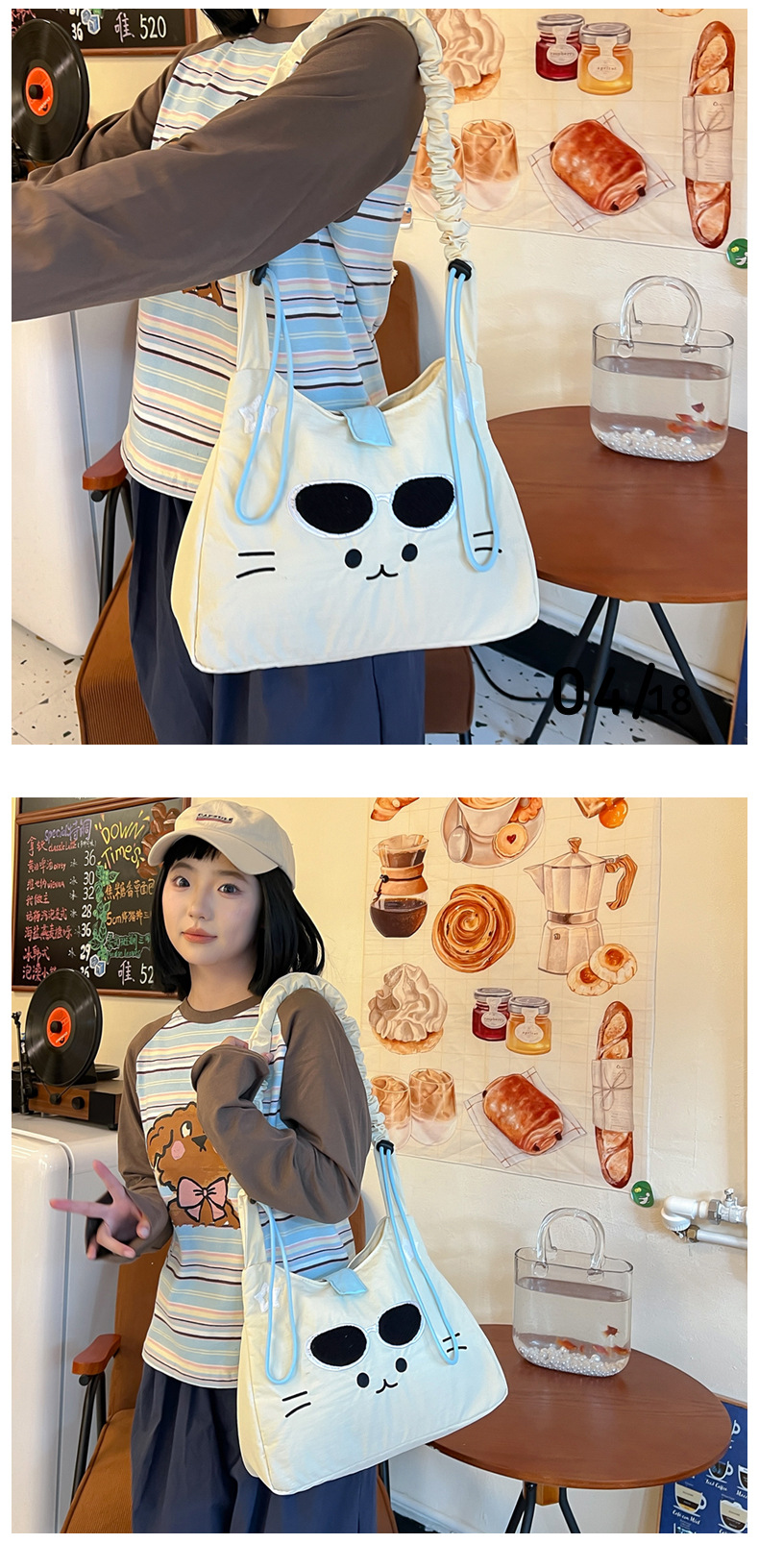 틈새 귀여운 고양이 자수 토트 백 2024 새로운 대용량 어깨 크로스 바디 백 패션 통근 캔버스 백
