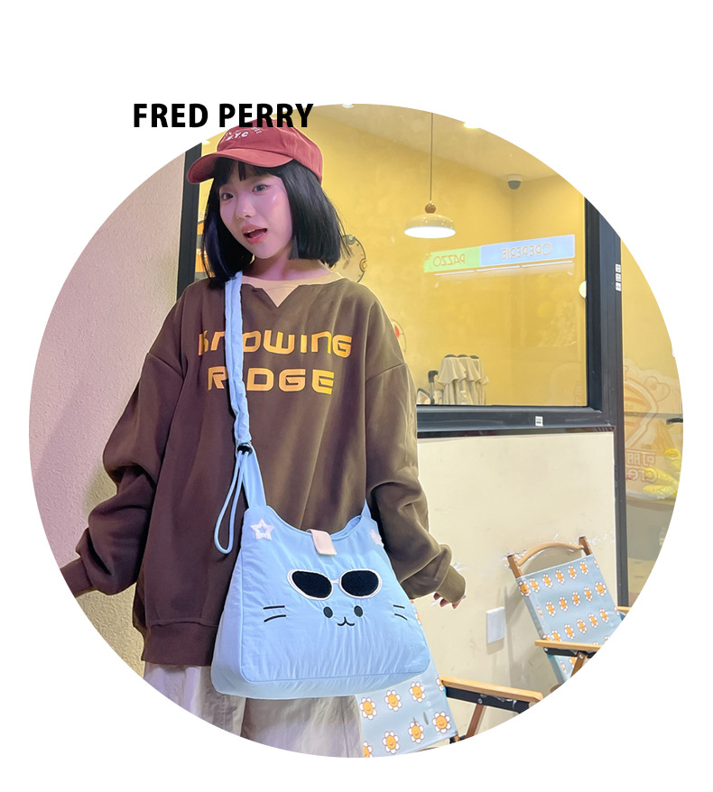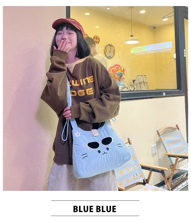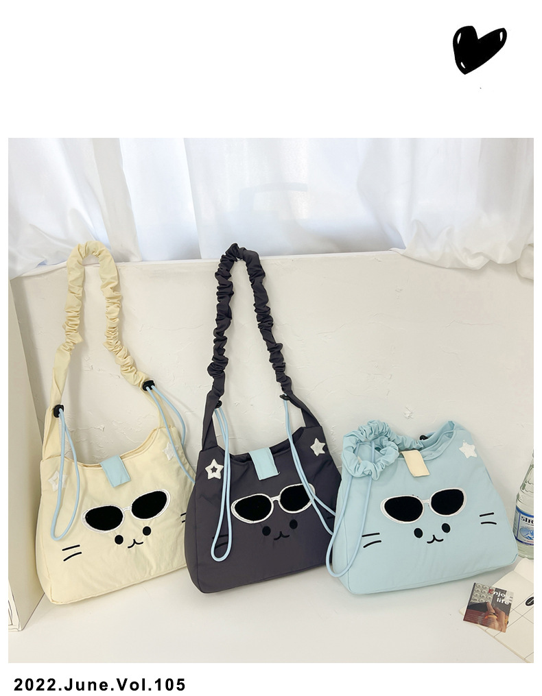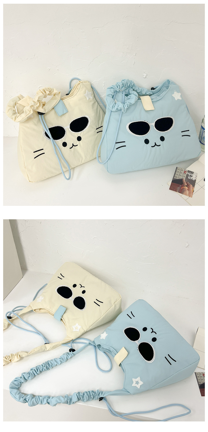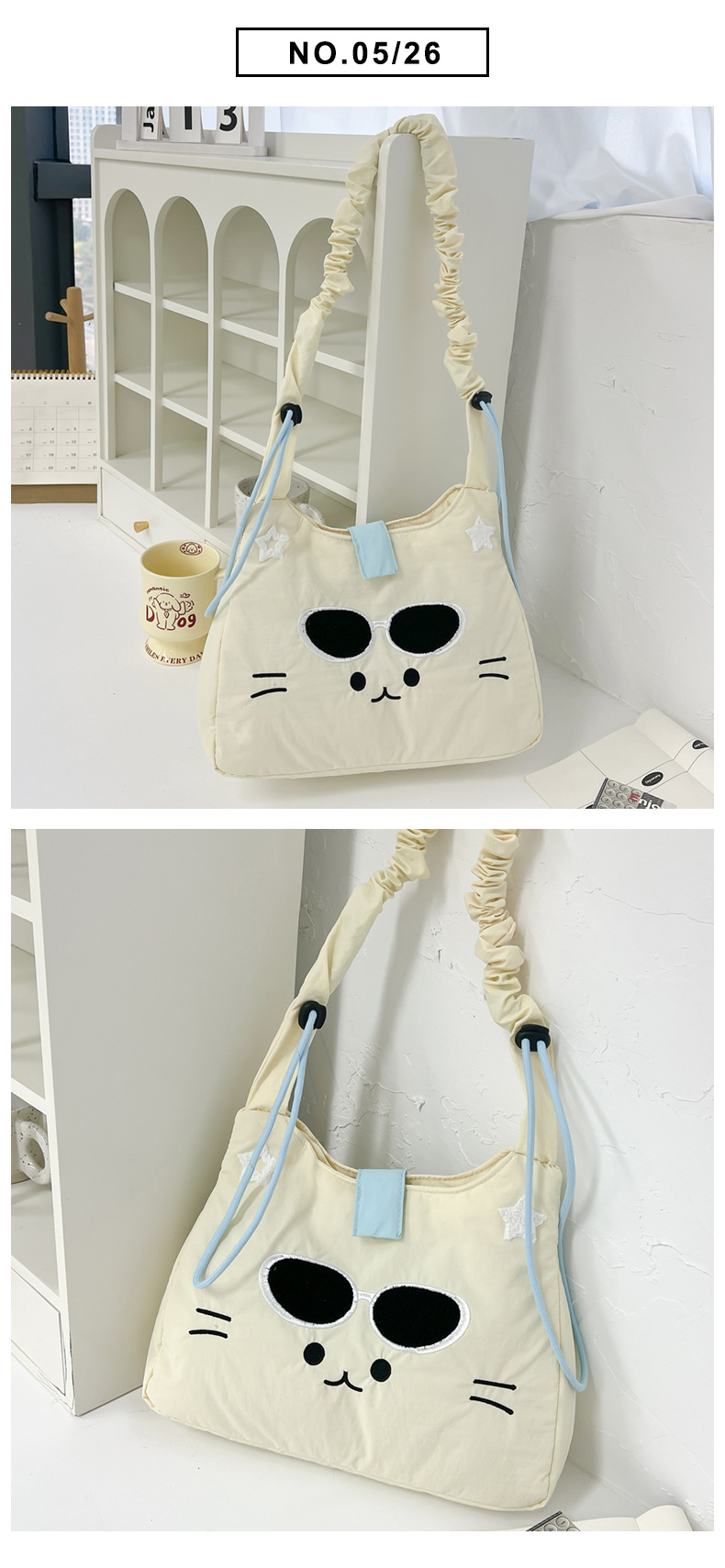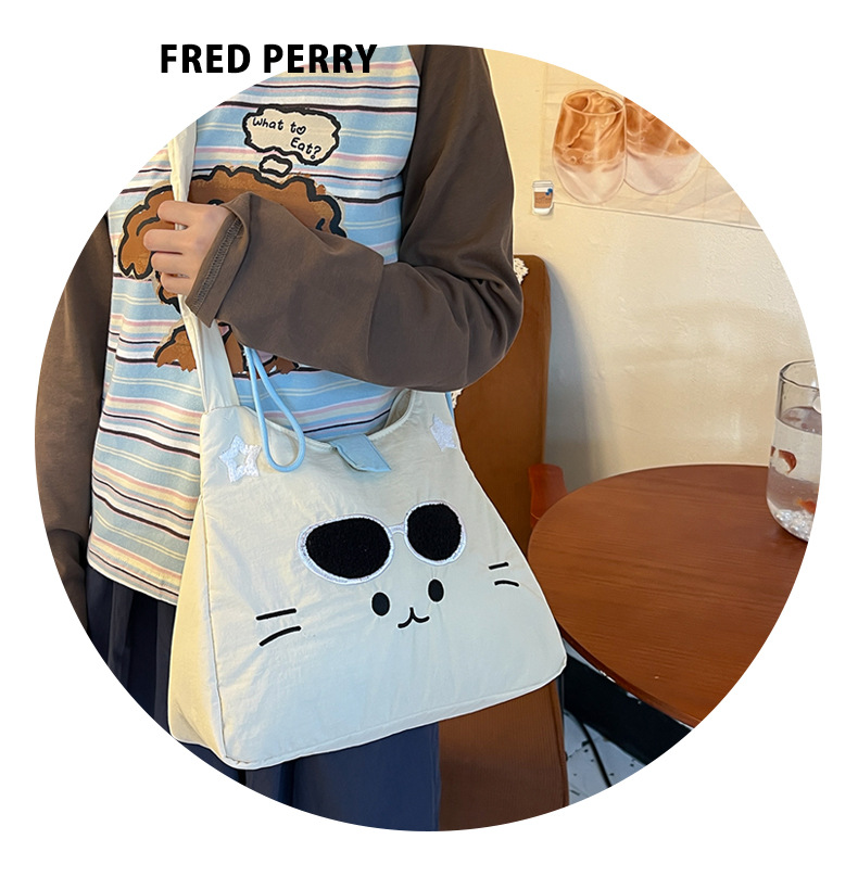 틈새 귀여운 고양이 자수 토트 백 2024 새로운 대용량 어깨 크로스 바디 백 패션 통근 캔버스 백
