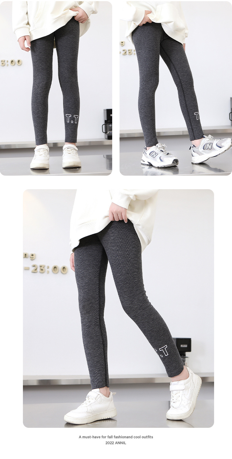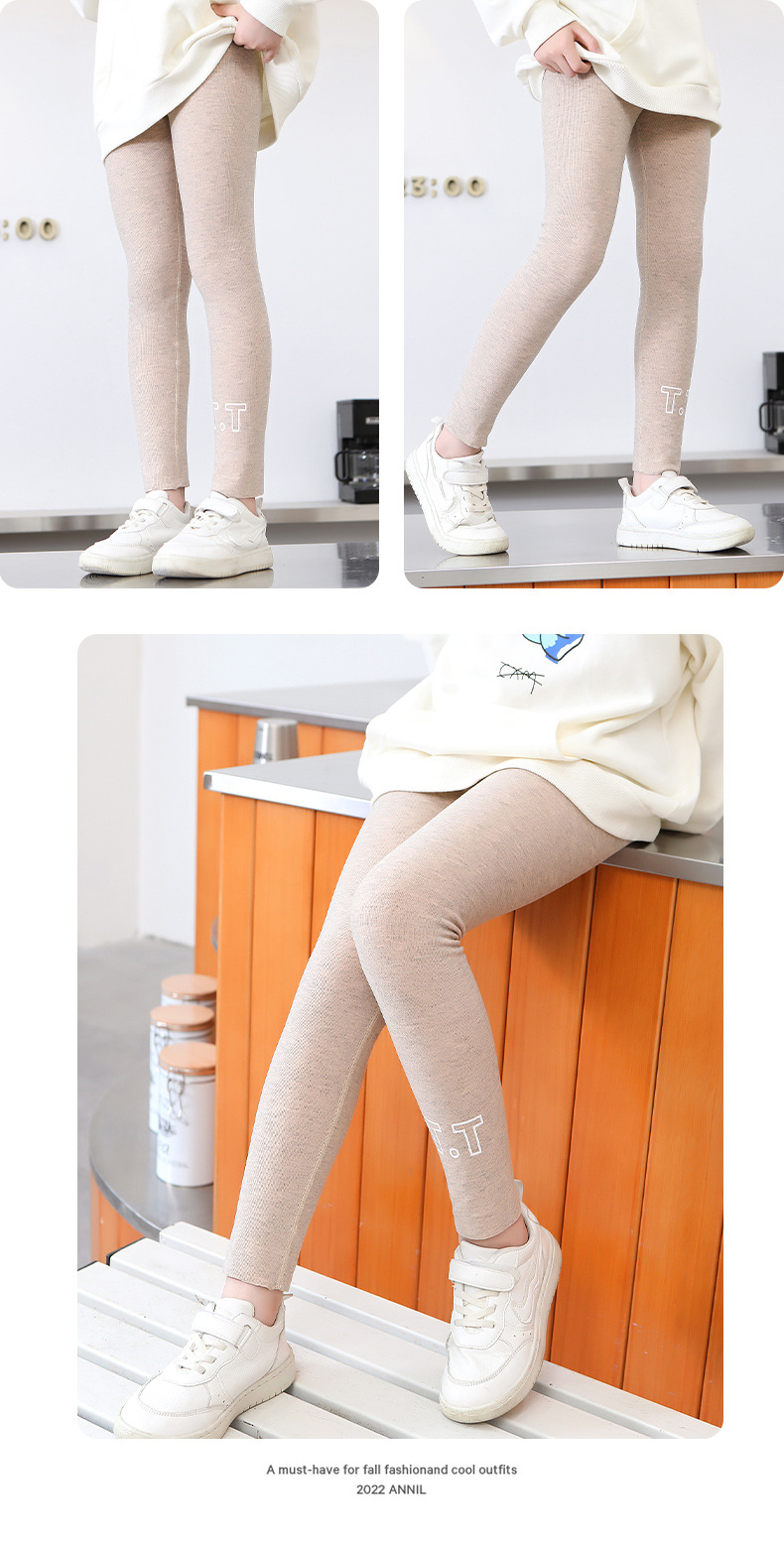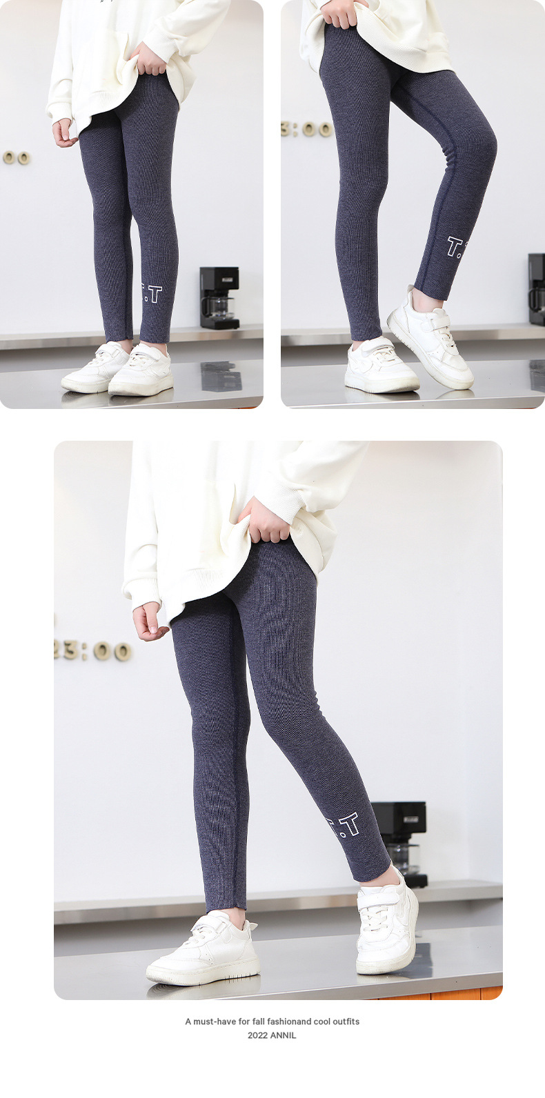 어린이 레깅스 2022 가을 겨울 소녀 단색 편지 스트레치 자른 바지 어린이 간단한 패션 긴 바지스토어 가기