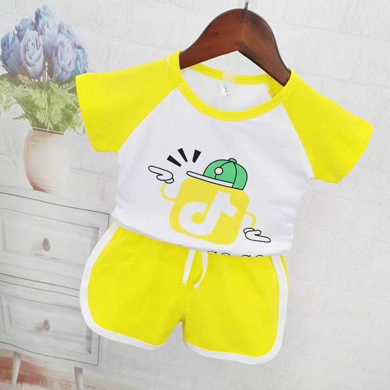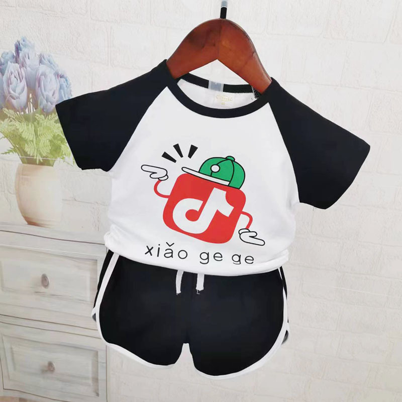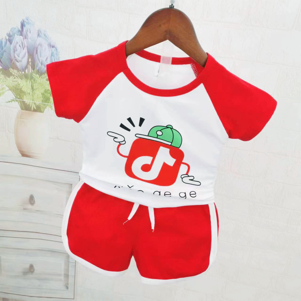 여름 어린이 반팔 세트 코튼 보이즈 티셔츠 여자 반팔 캐주얼 투피스 세트 베이비 부머스토어 가기